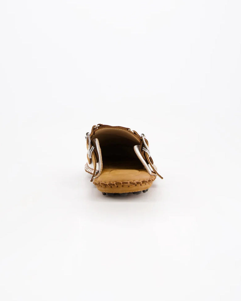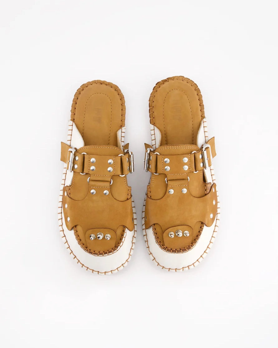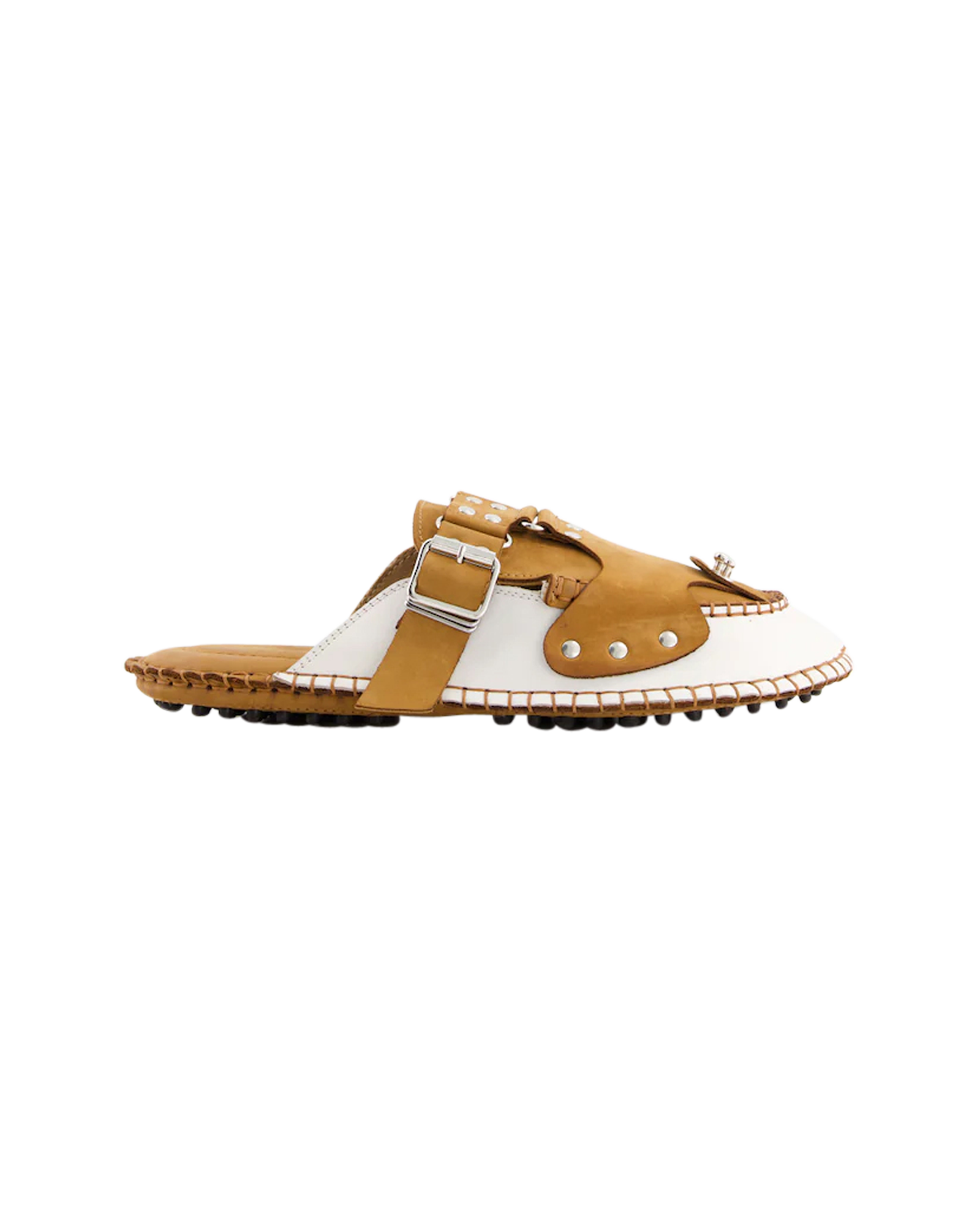 • The medusa mule features a padded leather insole, a leather outsole with rubber studs, and a wide sole to prevent the foot from touching the edges.