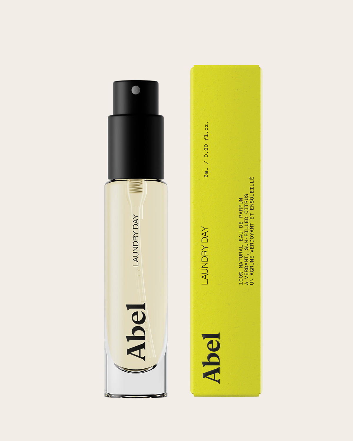 Laundry Day Eau de Parfum by Abel is a crisp, sun-filled citrus fragrance. An accord of freshly cut grass and aldehydes (clean-washing) opens into a juicy, tart heart of lime, bergamot and passionfruit, transitioning to a vetiver coolness that lasts all day.