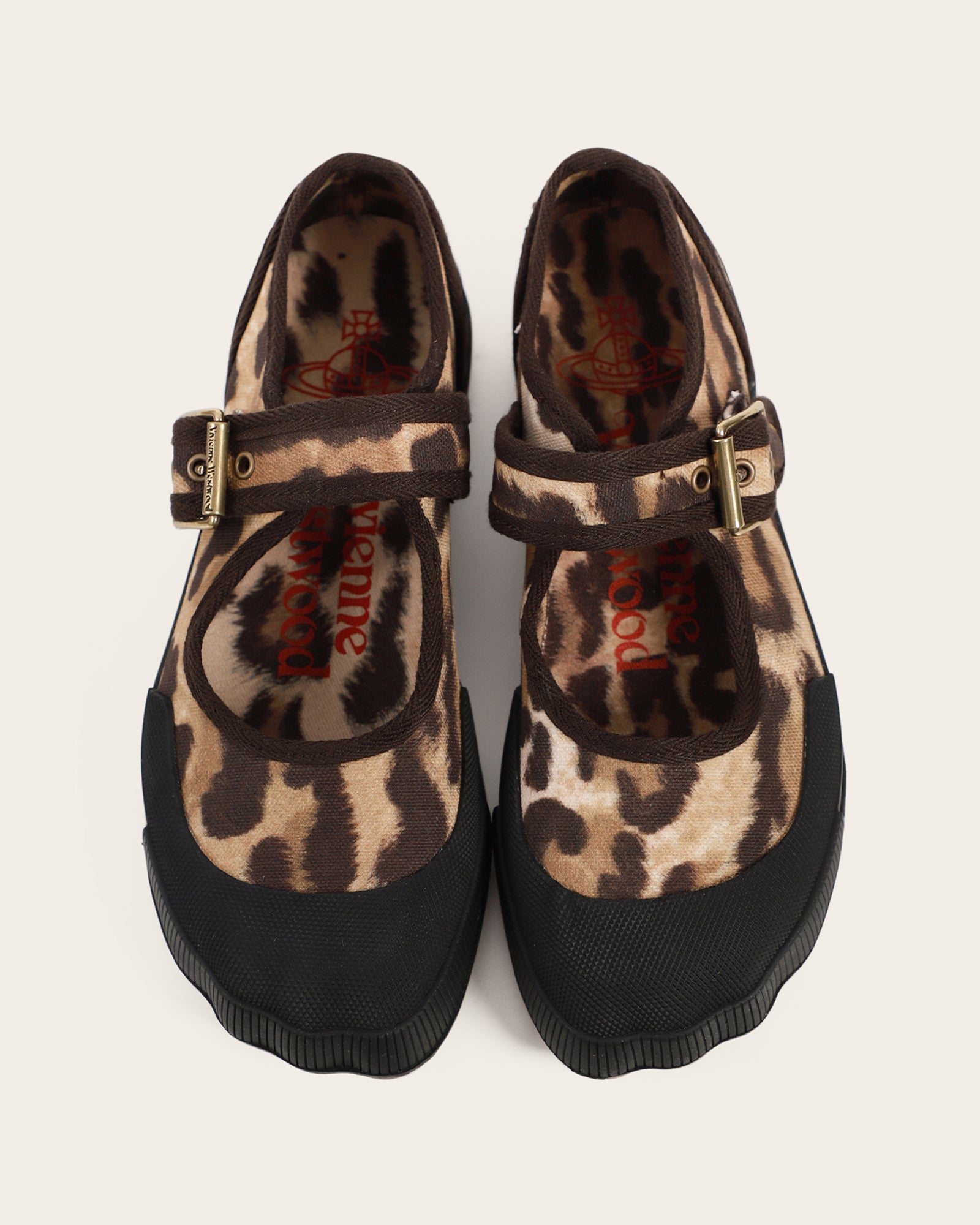 The Animal Gym Bar Shoes return this season in a bold all-over leopard print, a nod to Vivienne’s iconic Autumn–Winter 2001 ‘Wild Beauty’ collection. Showcasing the house’s archival Animal Toe silhouette — inspired by a lion’s paw or a mythical creature — each pair is finished with the signature Orb at the heel, embodying Vivienne’s enduring philosophy of carrying the past into the future.