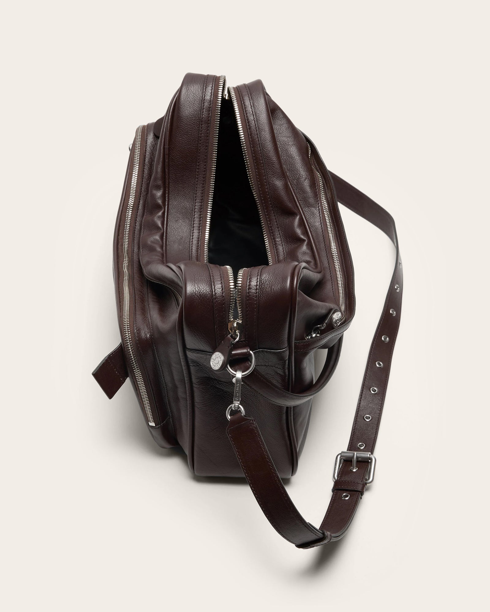 The Camero bag features a soft, rectangular shape with multiple zip compartments and a compact, structured silhouette. Finished with a branded key charm, denim style button logo, drop handle, and adjustable crossbody strap. Made in Italy.