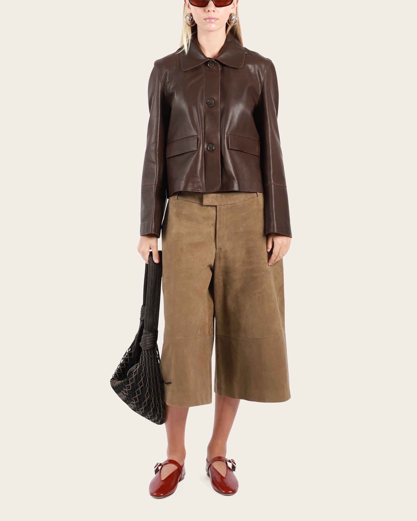 The FEM Vintage Leather Jacket is cut in a refined, tailored silhouette and finished with a three-button closure and front pockets. Defined by clean lines and a classic collar, it delivers an elegant, timeless appeal. Crafted from supple 100% lamb leather.