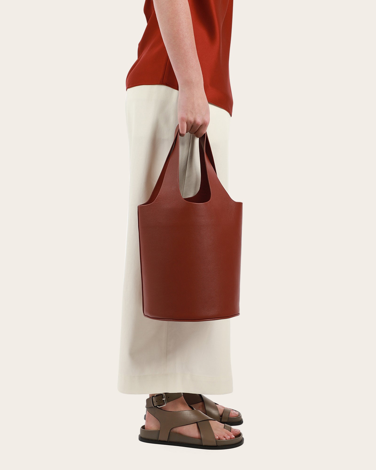 The Wren Bag is a petite bucket bag crafted from premium leather, combining timeless craftsmanship with modern simplicity. Its distinctive circular base with piped edging adds structure and style, while dual handles make it effortlessly versatile for daily use. As the scaled-down version of our Timms Bag, the Wren offers the perfect balance of elegance and ease — a refined companion for every day.
