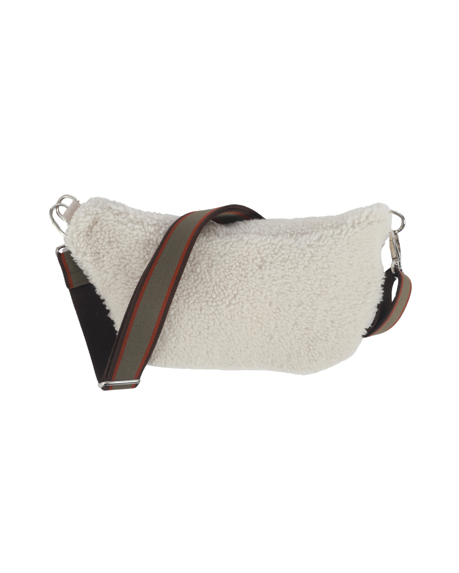 The Cosy Shearling Belt Bag is crafted from Italian shearling in Denmark. It is paired with an adjustable multi-coloured strap that can be worn across the body or around your waist.