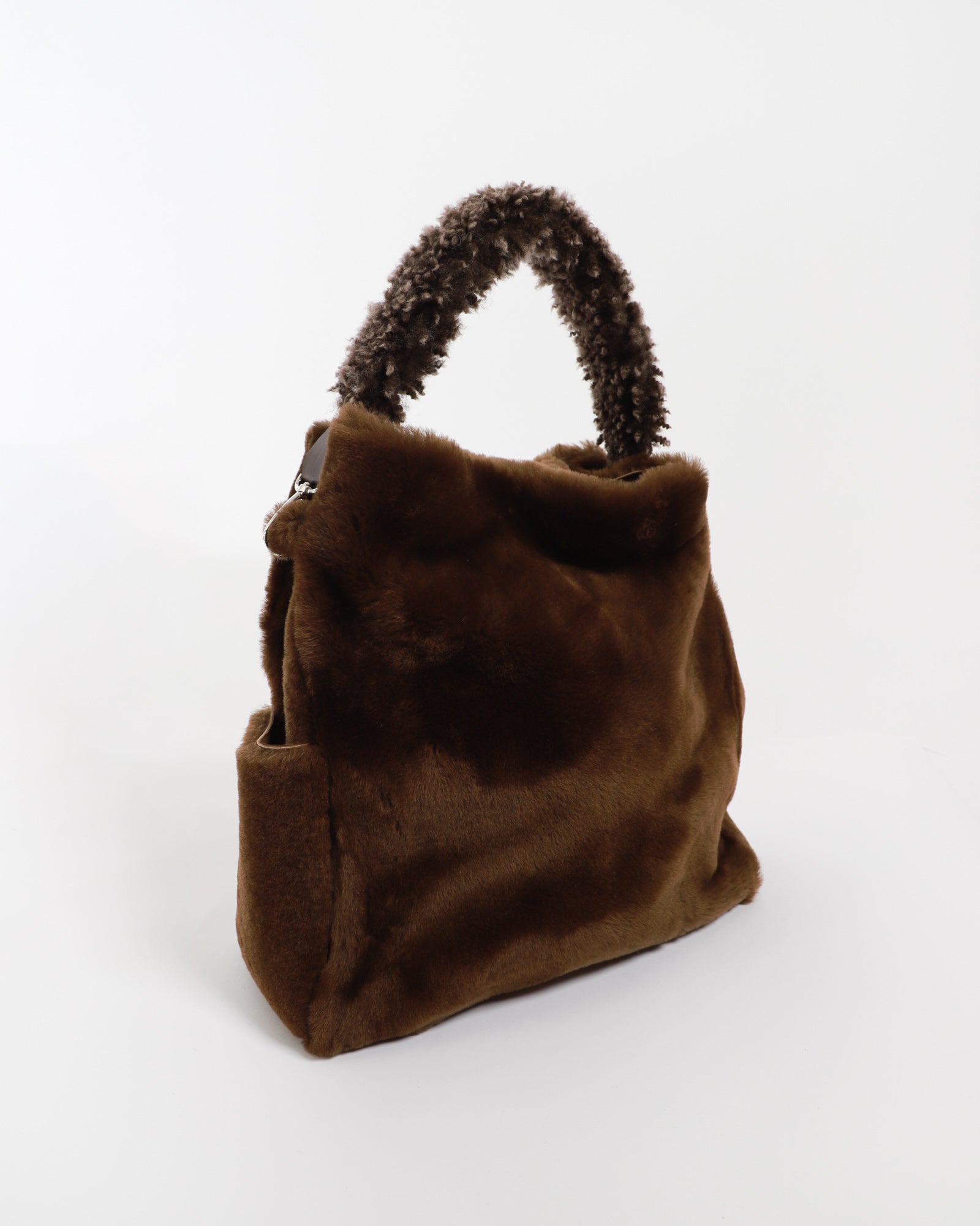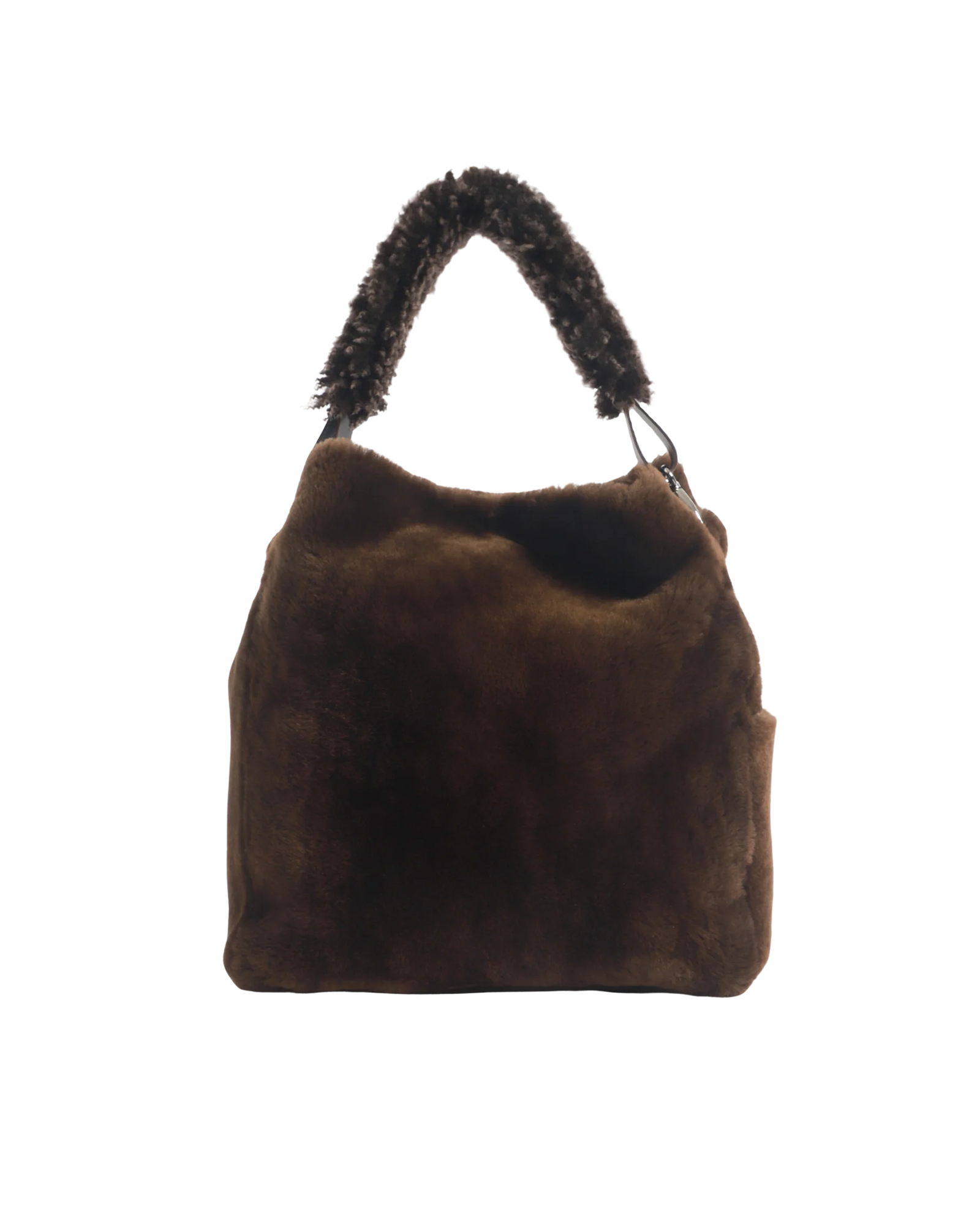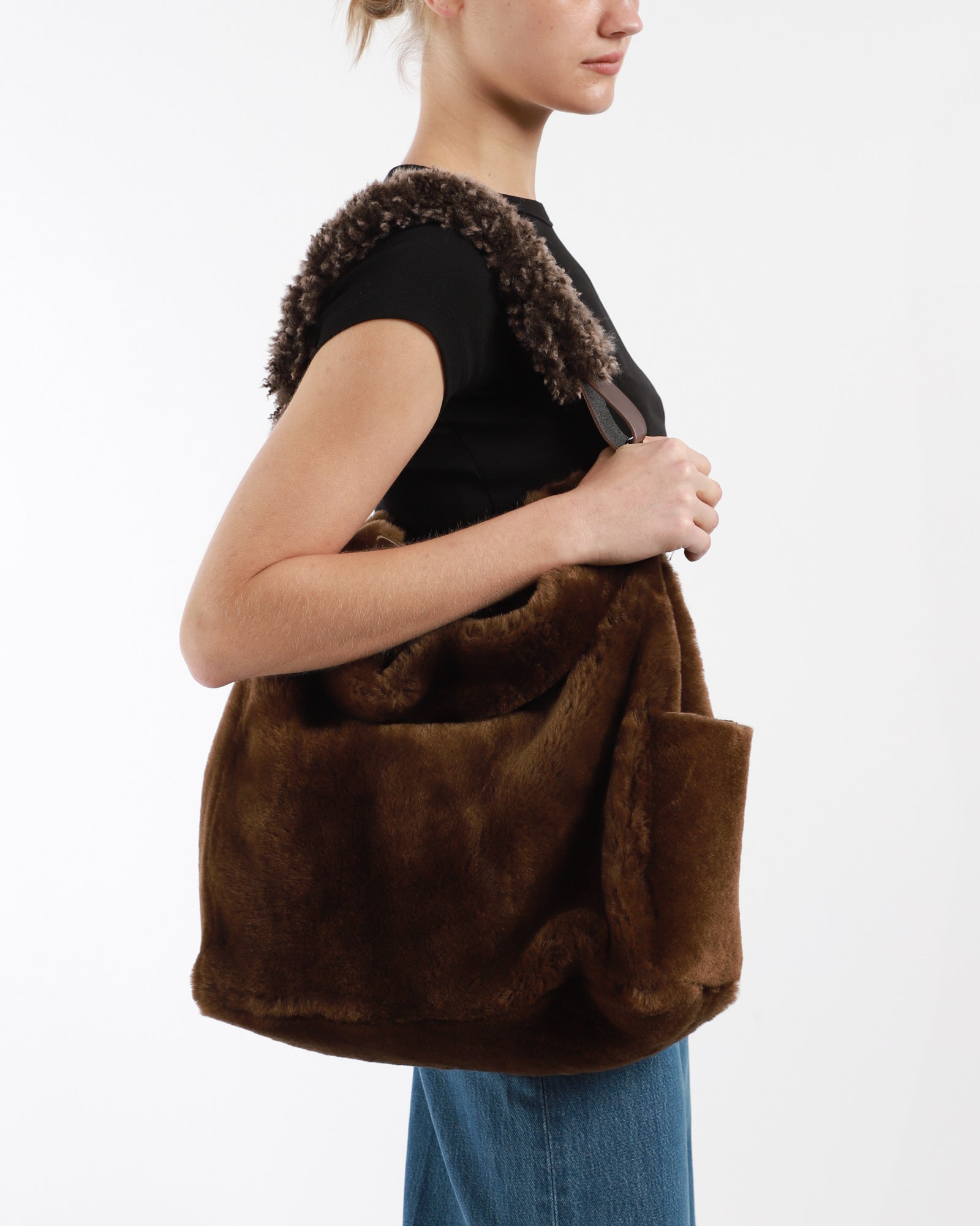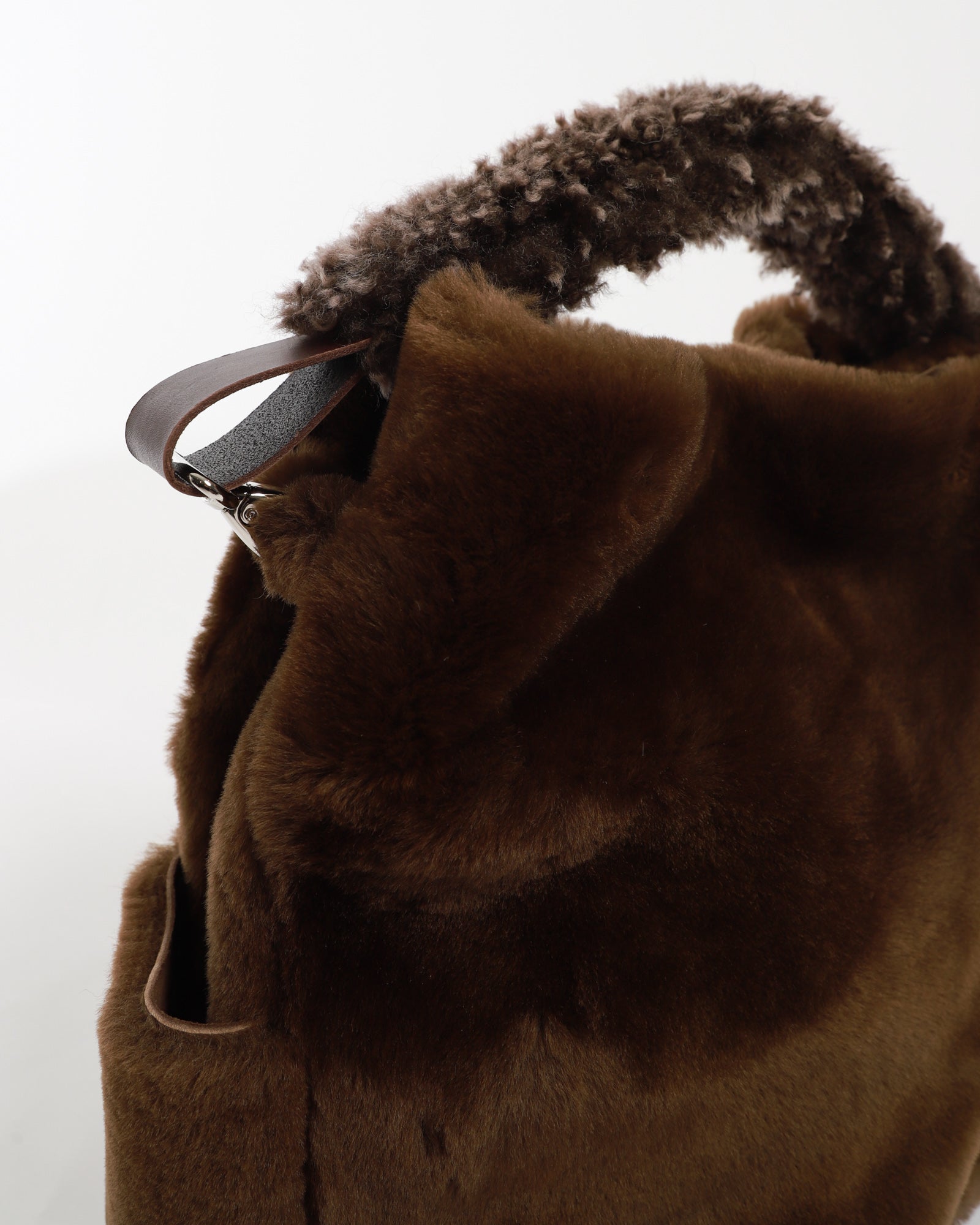 The Hug Me Shopper by Gabriele Frantzen is crafted from Italian shearling in Denmark. It is paired with a lightweight soft strap, with a large pocket on the outer, and a main compartment on the inner.