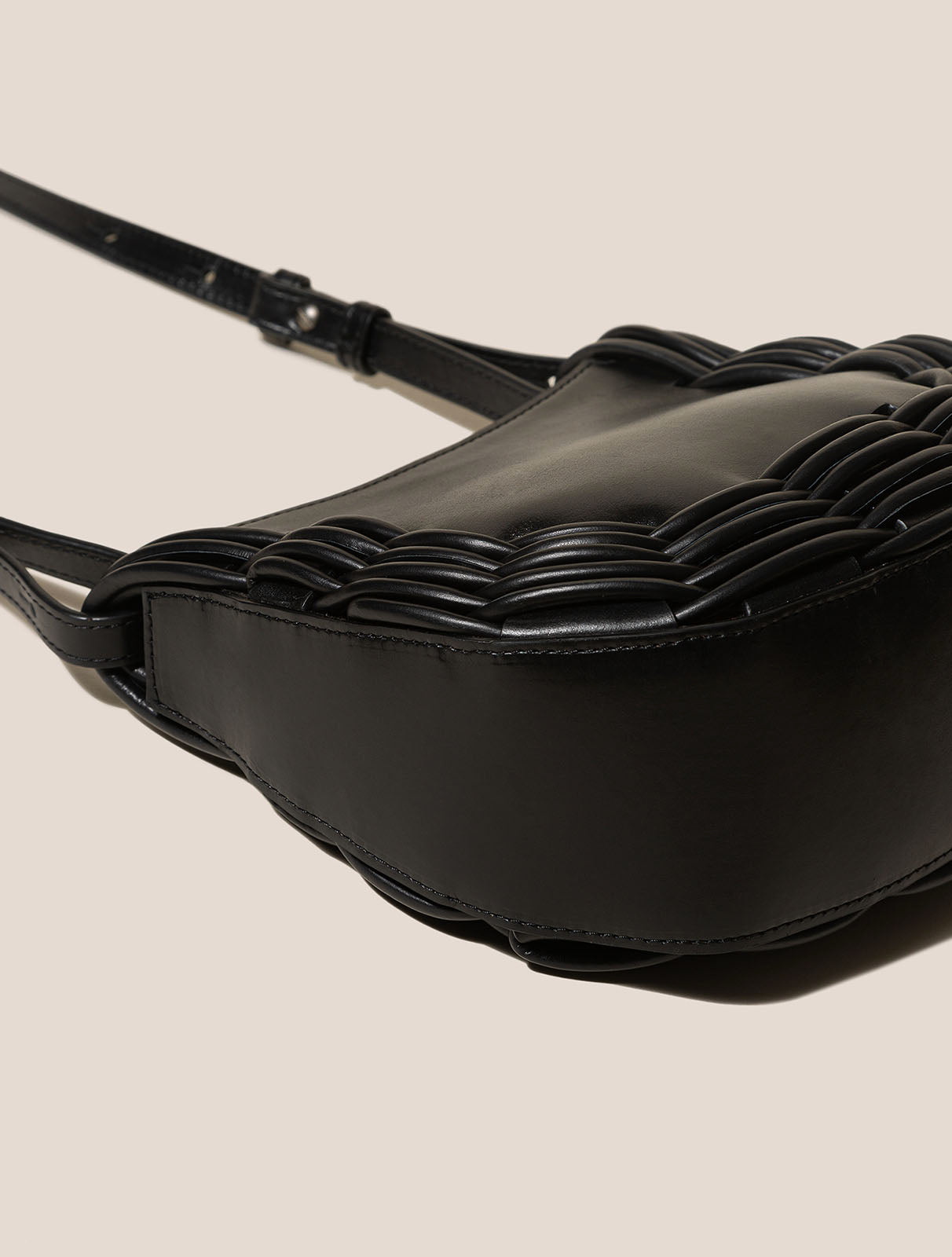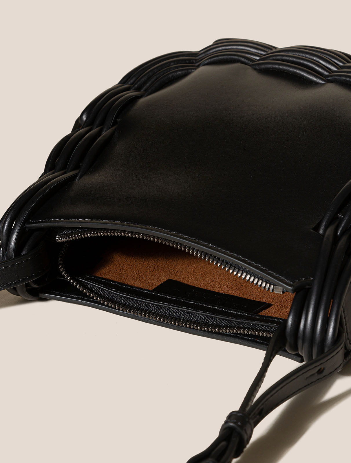 Hereu Pinar Braided Detail Crossbody Bag, featuring adjustable crossbody strap, zip fastening, braided detail, polished calf leather, interior in suede leather. Perfect size for all your essentials.