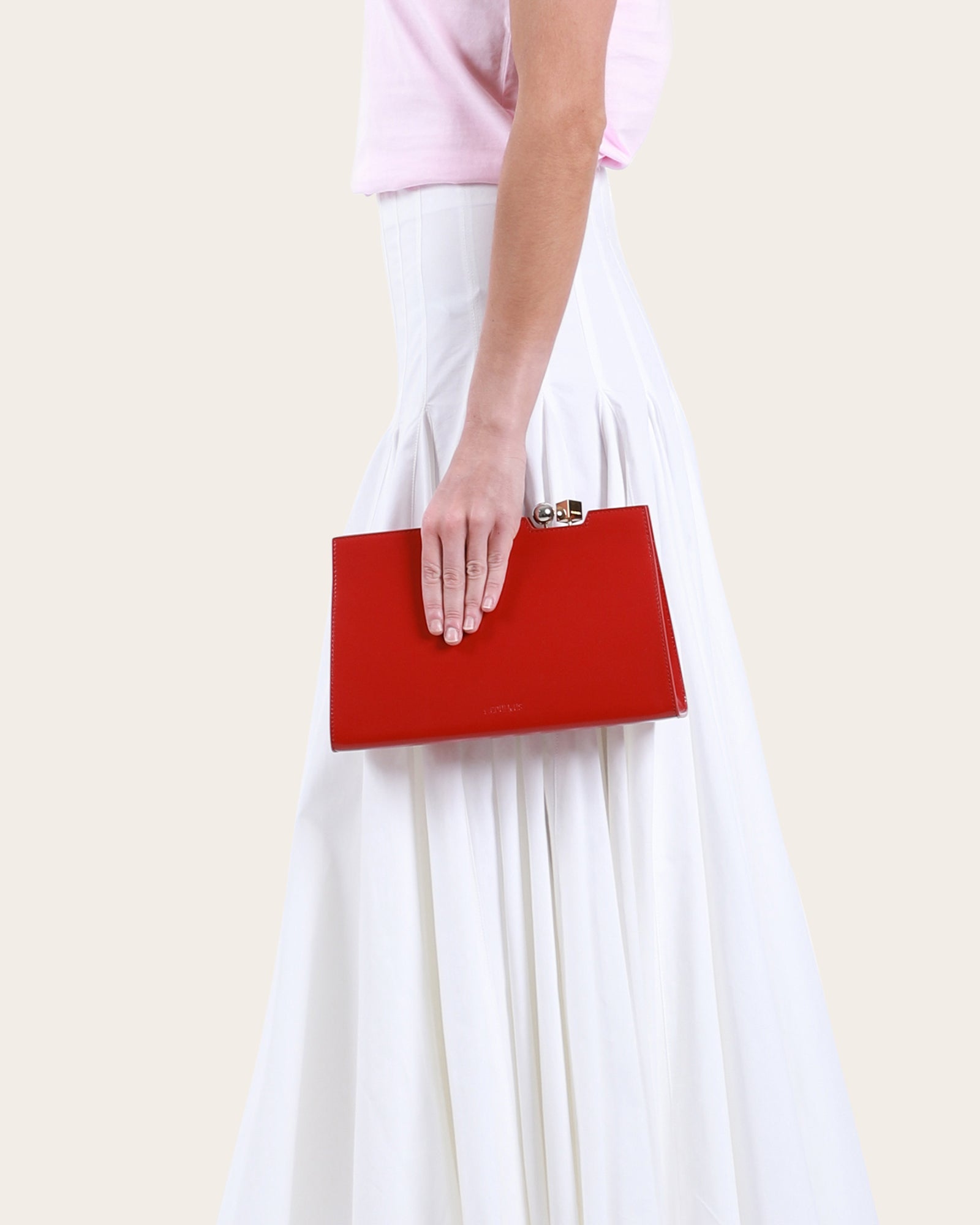 The Charm shoulder bag is crafted from shiny spazzolato leather in a structured silhouette. It features an adjustable, removable strap and a magnetic Rond-Carré charm closure in gold and silver, with an embossed logo. Fully lined in cotton, it includes an interior leather patch pocket for essentials.