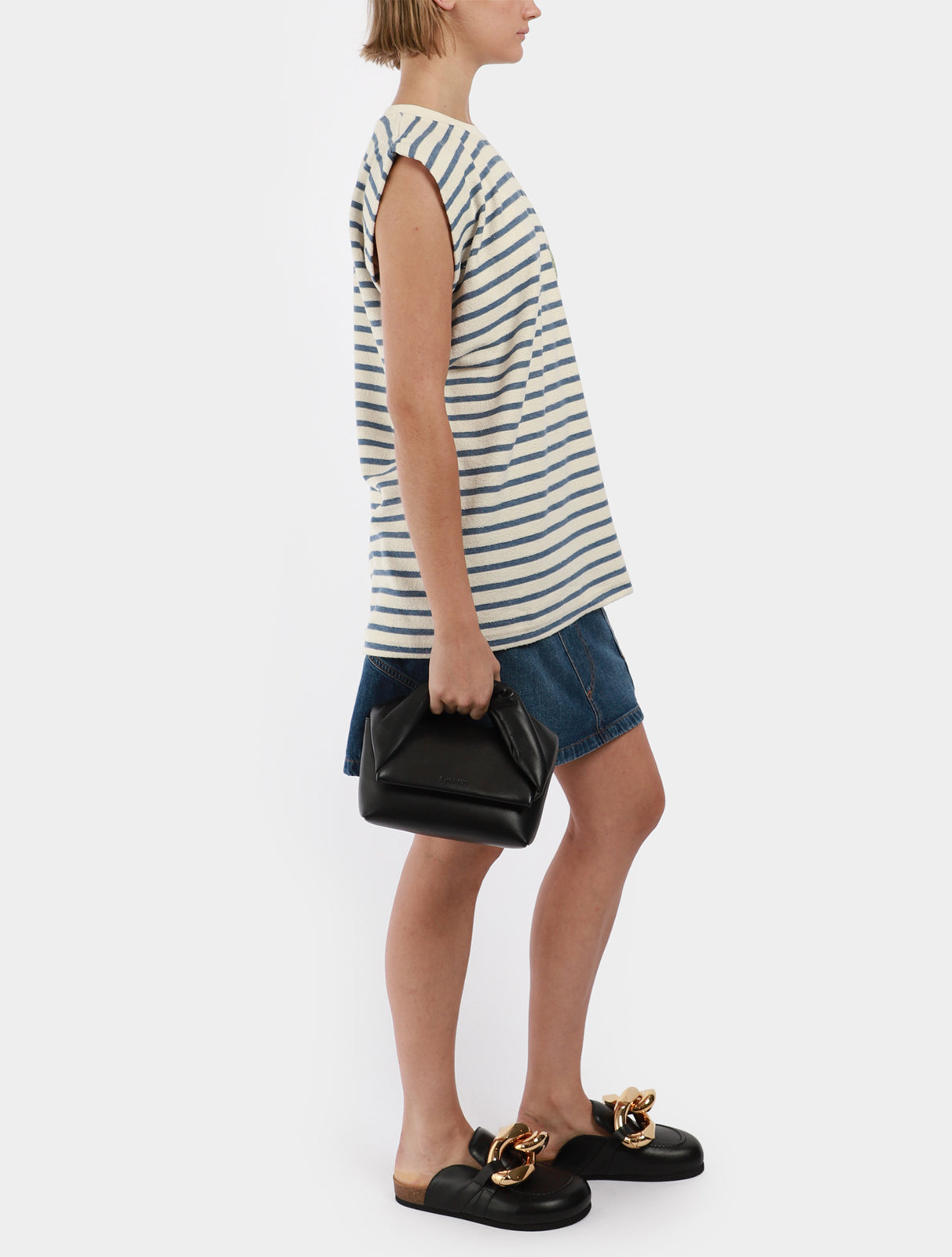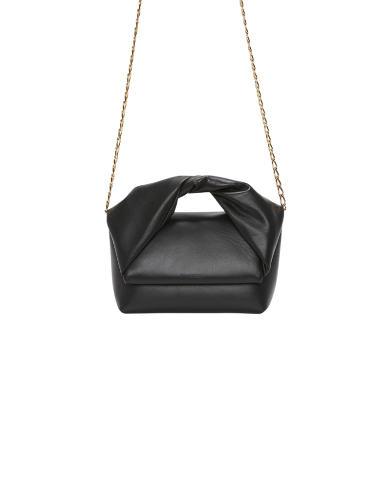 A luxurious midi twister handbag made of lamb leather with a central branded logo detail at the front, a twisted handle and front flap closure. Finished with a gold-coloured crossbody strap for versatile carrying.