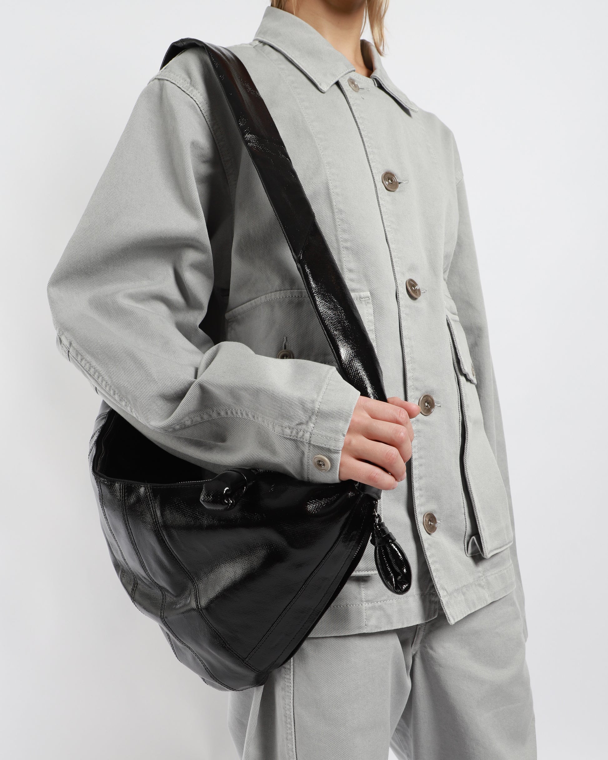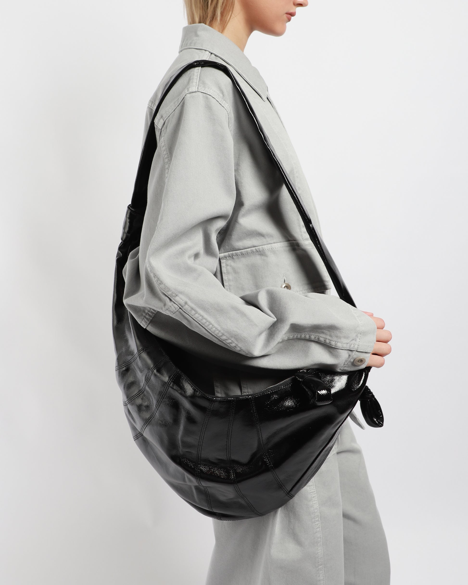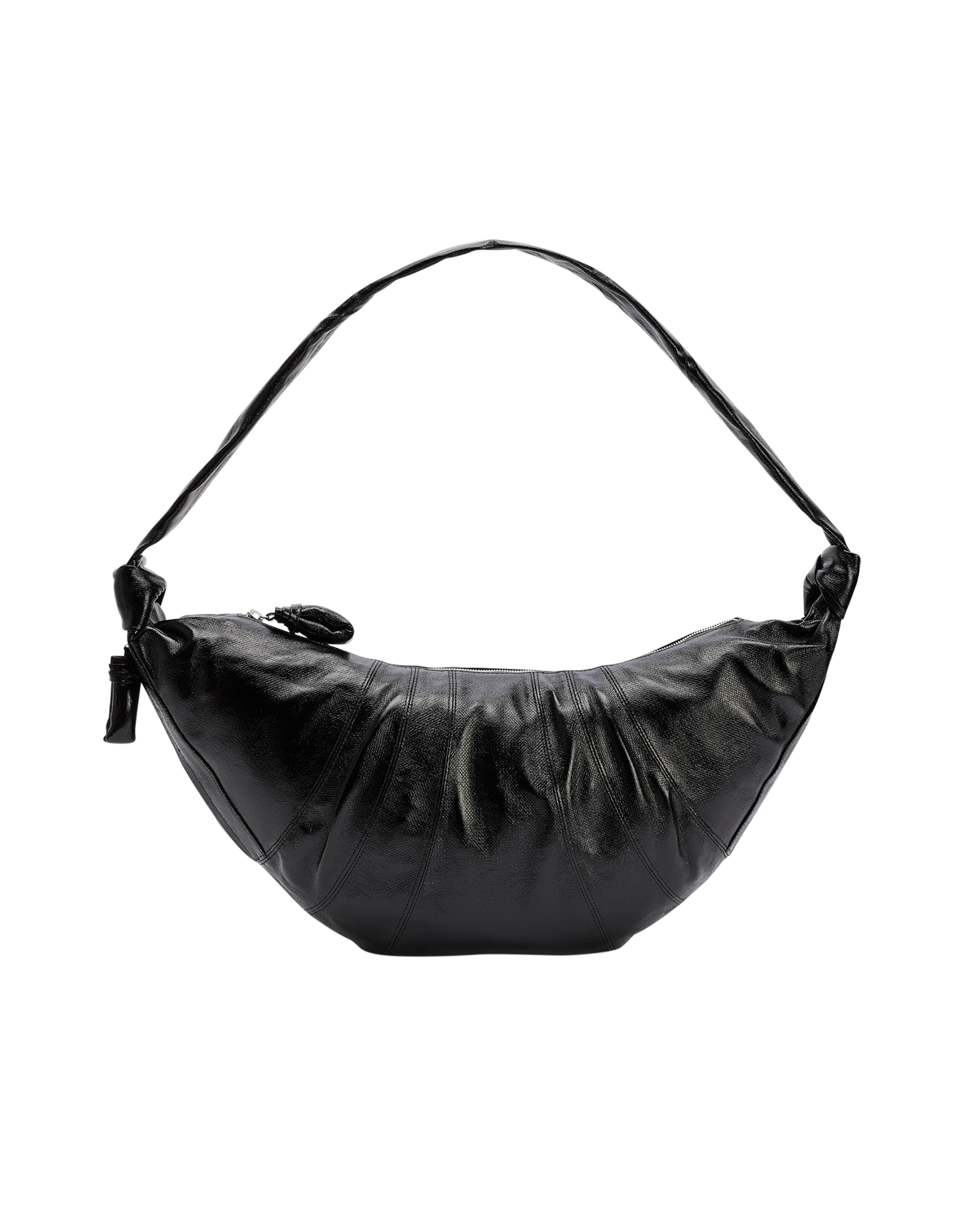This classic LEMAIRE bag is the largest in the iconic Croissant family and is made from coated cotton with a crisp texture and a shiny finish. Its distinctive surface adds a tactile element and enhances the durability of the bag’s curve. The top-stitched cut-outs blend style and functionality, featuring a matching looped zip puller, side knot finishings, a side zipped pocket, and a removable A5 pouch.