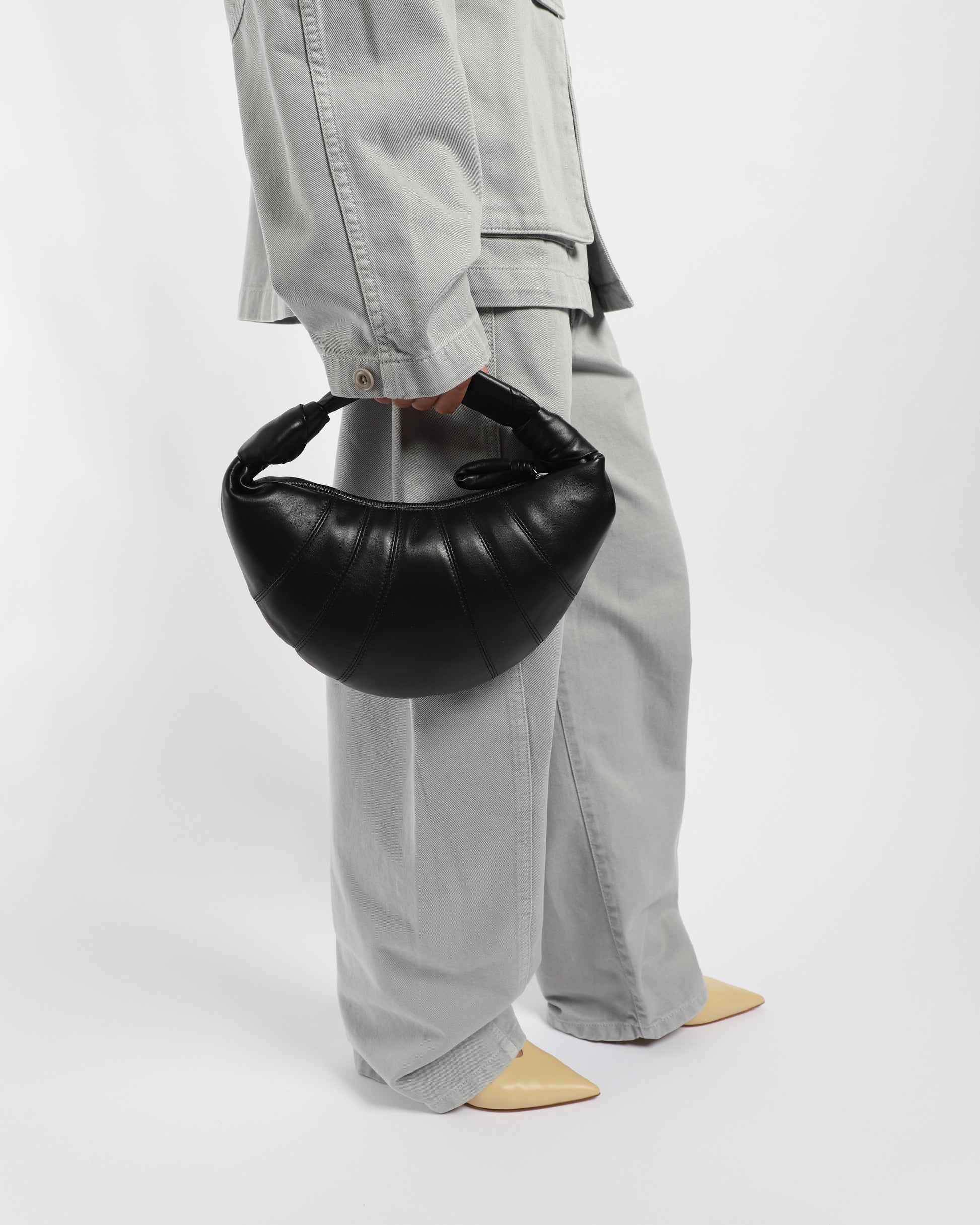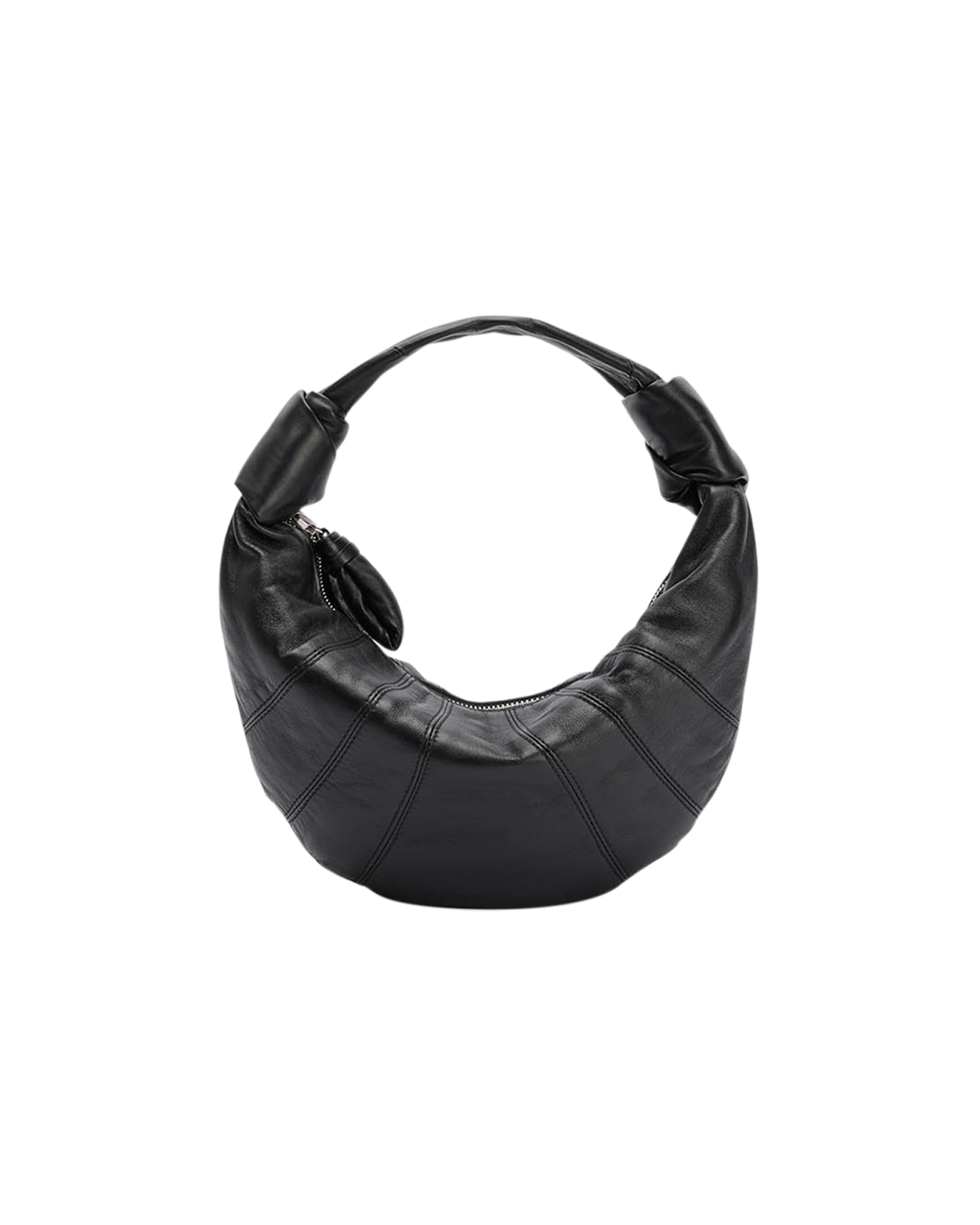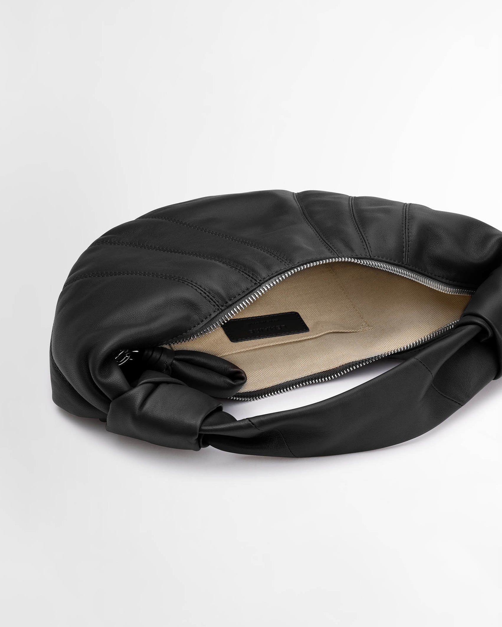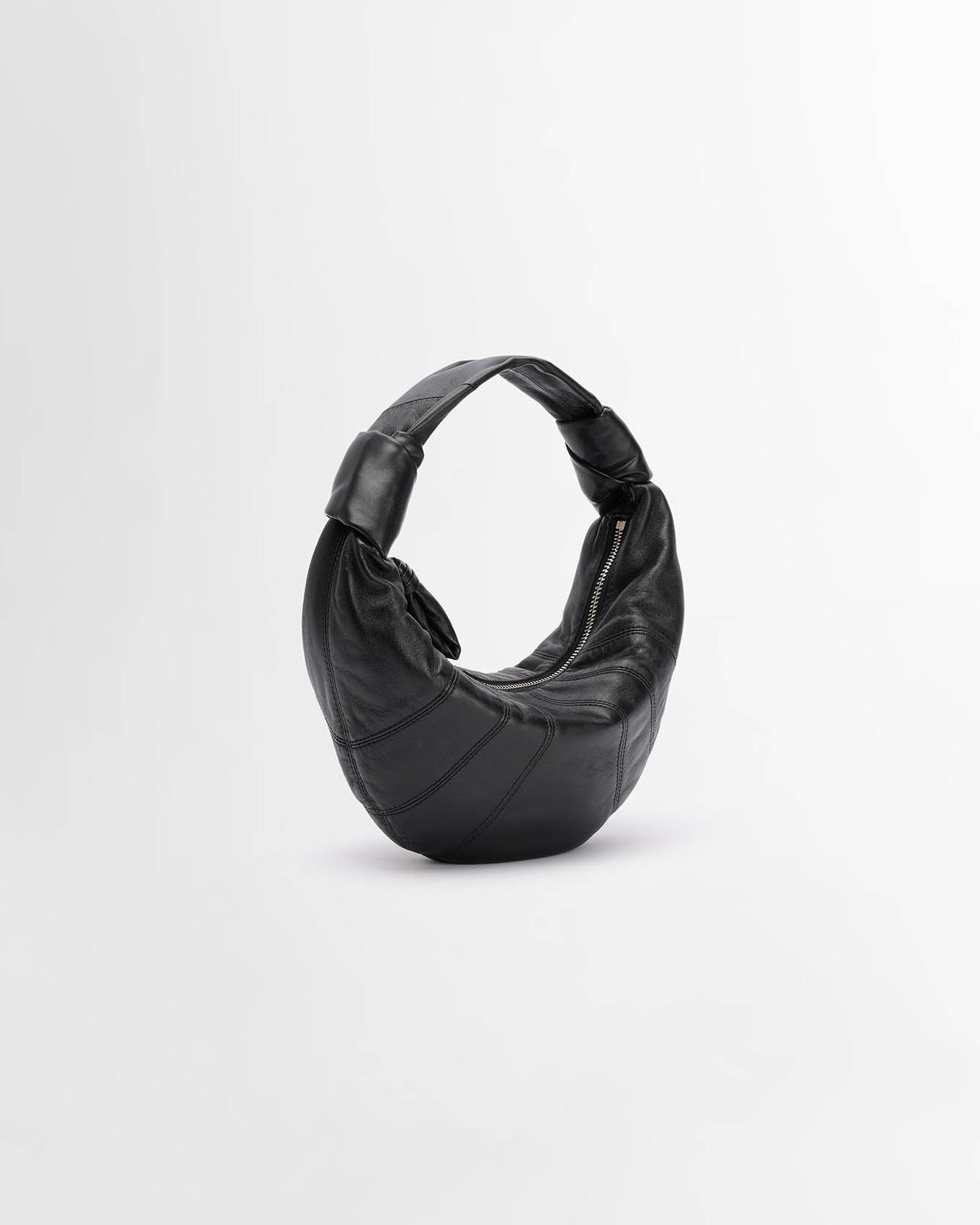 This bag is a new size added to the Fortune Croissant family. It is made in soft nappa leather that is both supple and resistant, giving the bag a delicately smooth hand. It has a shorter strap which allows it to be carried by hand, and is an ideal capacity for common essentials. Its folded crescent design is achieved through an assembly of topstitched cut-outs. Made in Spain.