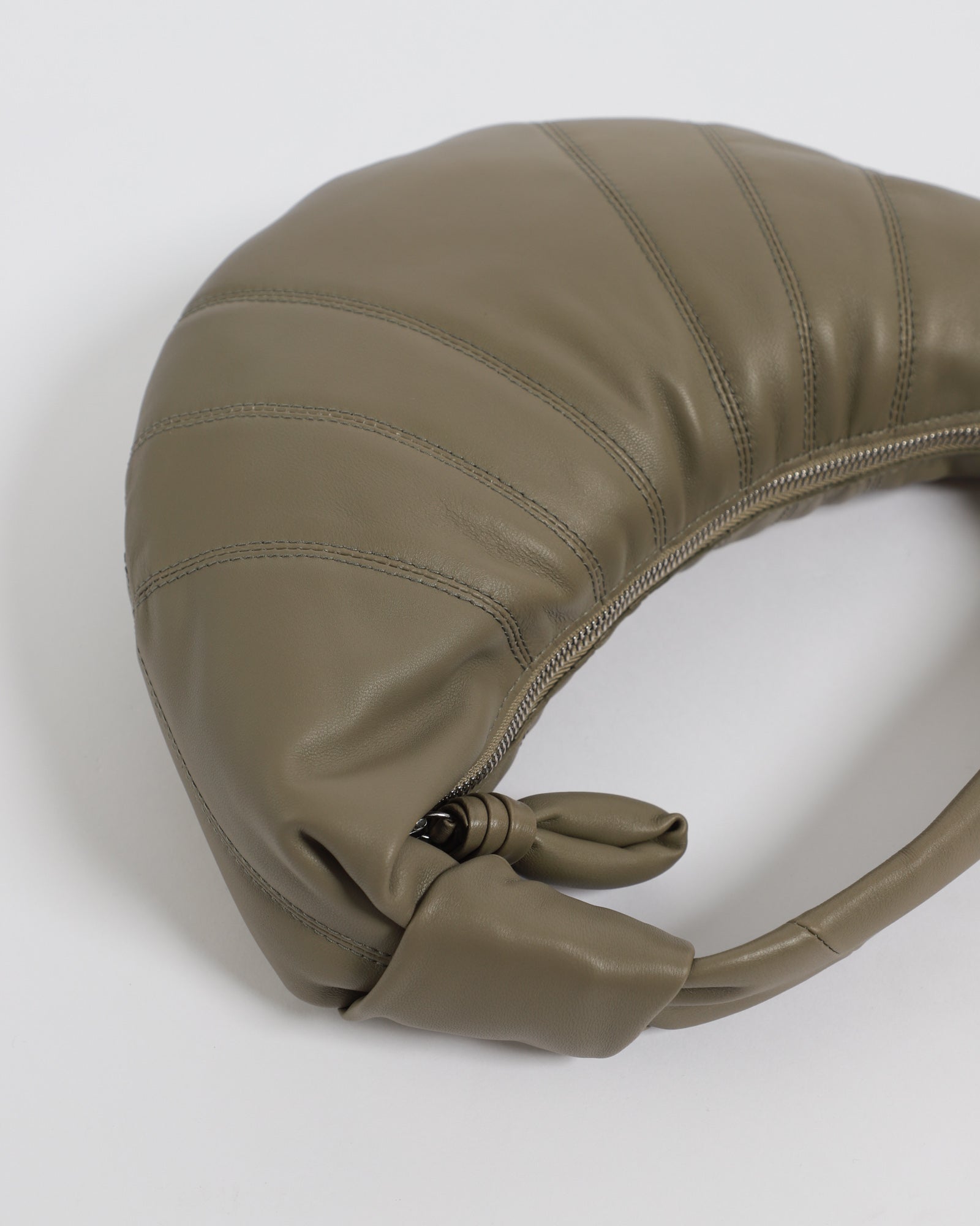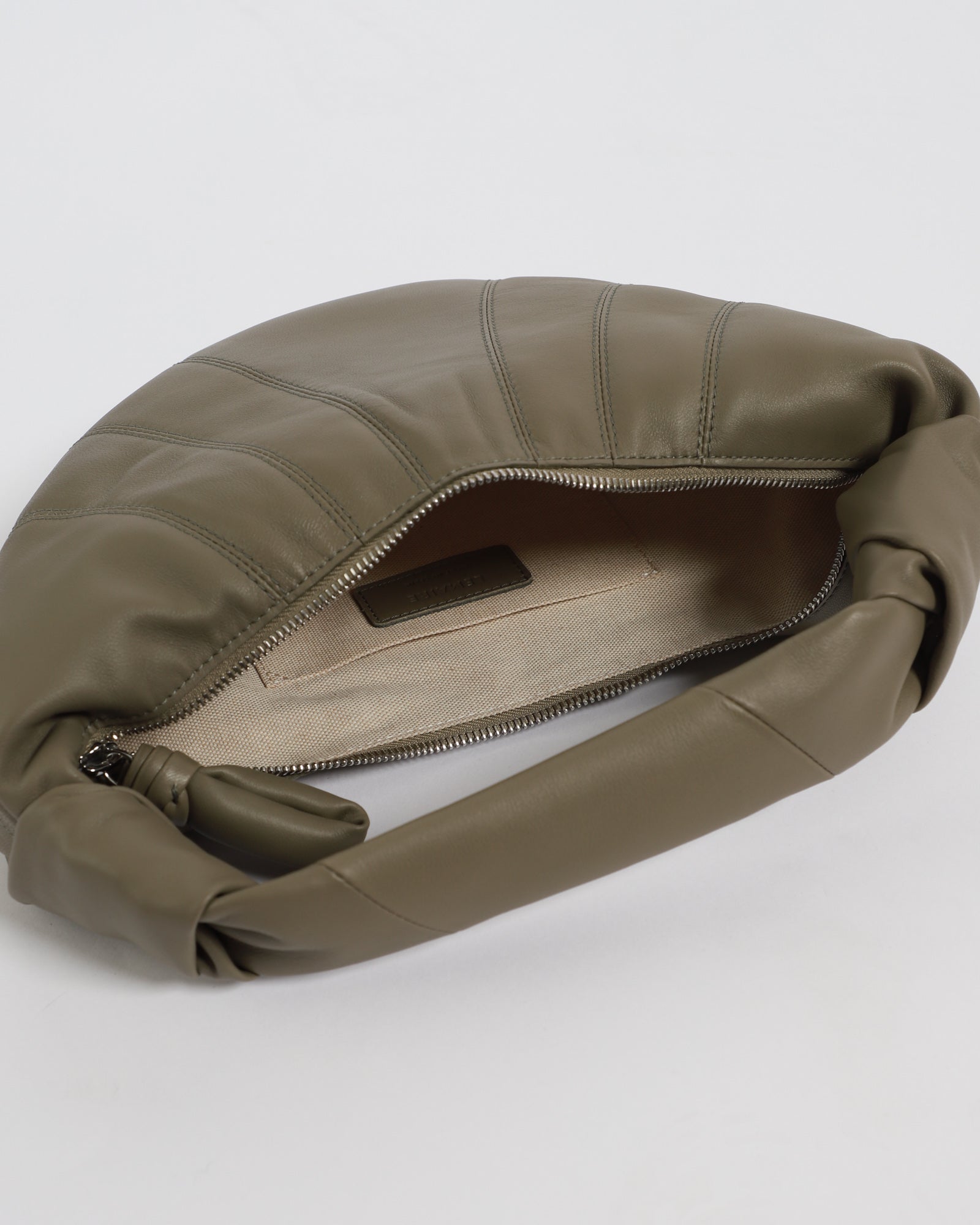 This bag is made of soft nappa leather that is both supple and resistant, giving the bag a delicately smoothed surface. It has a short handle with an internal patch pocket, and is an ideal size for common essentials, encouraging a seamless day-to-night transition.