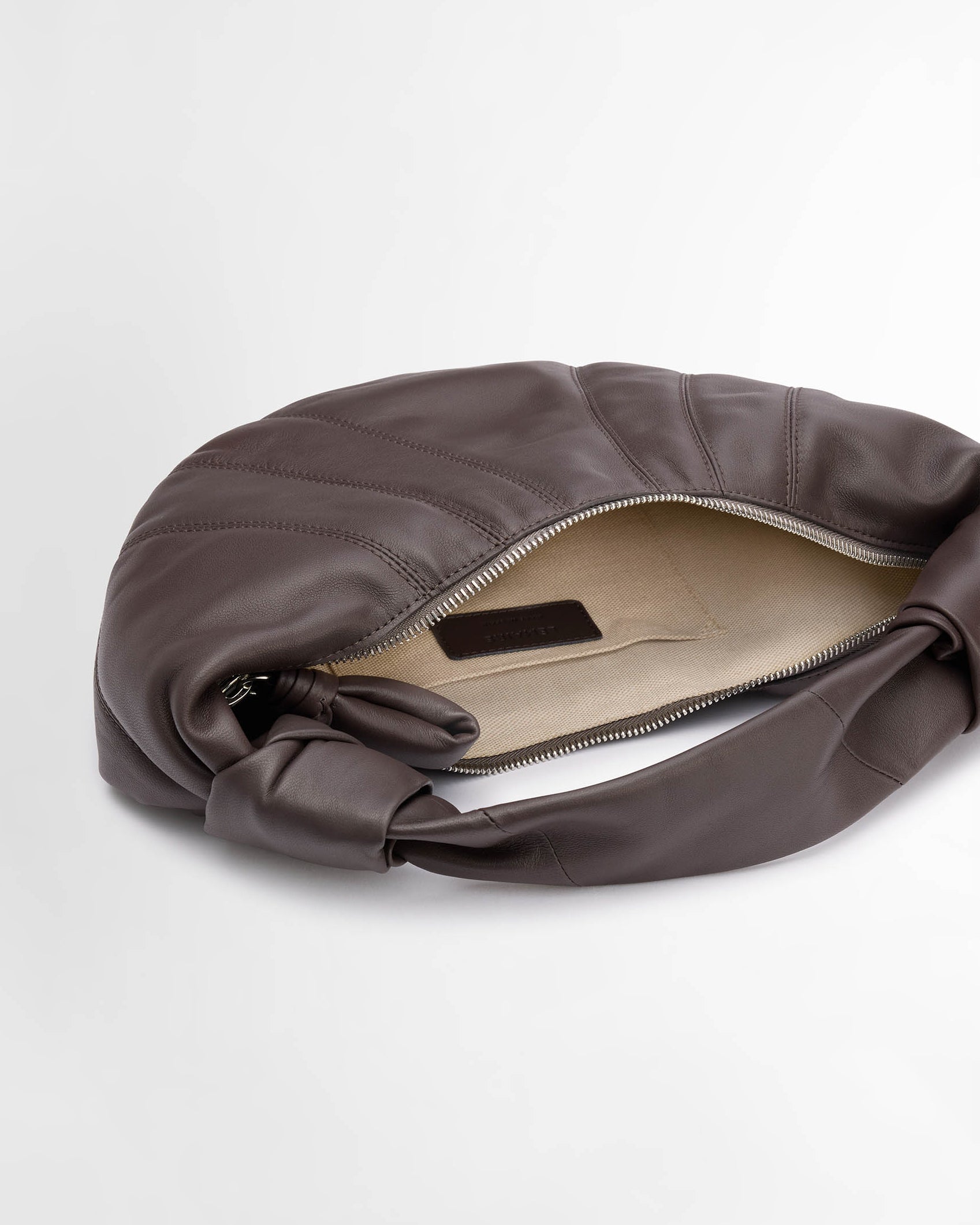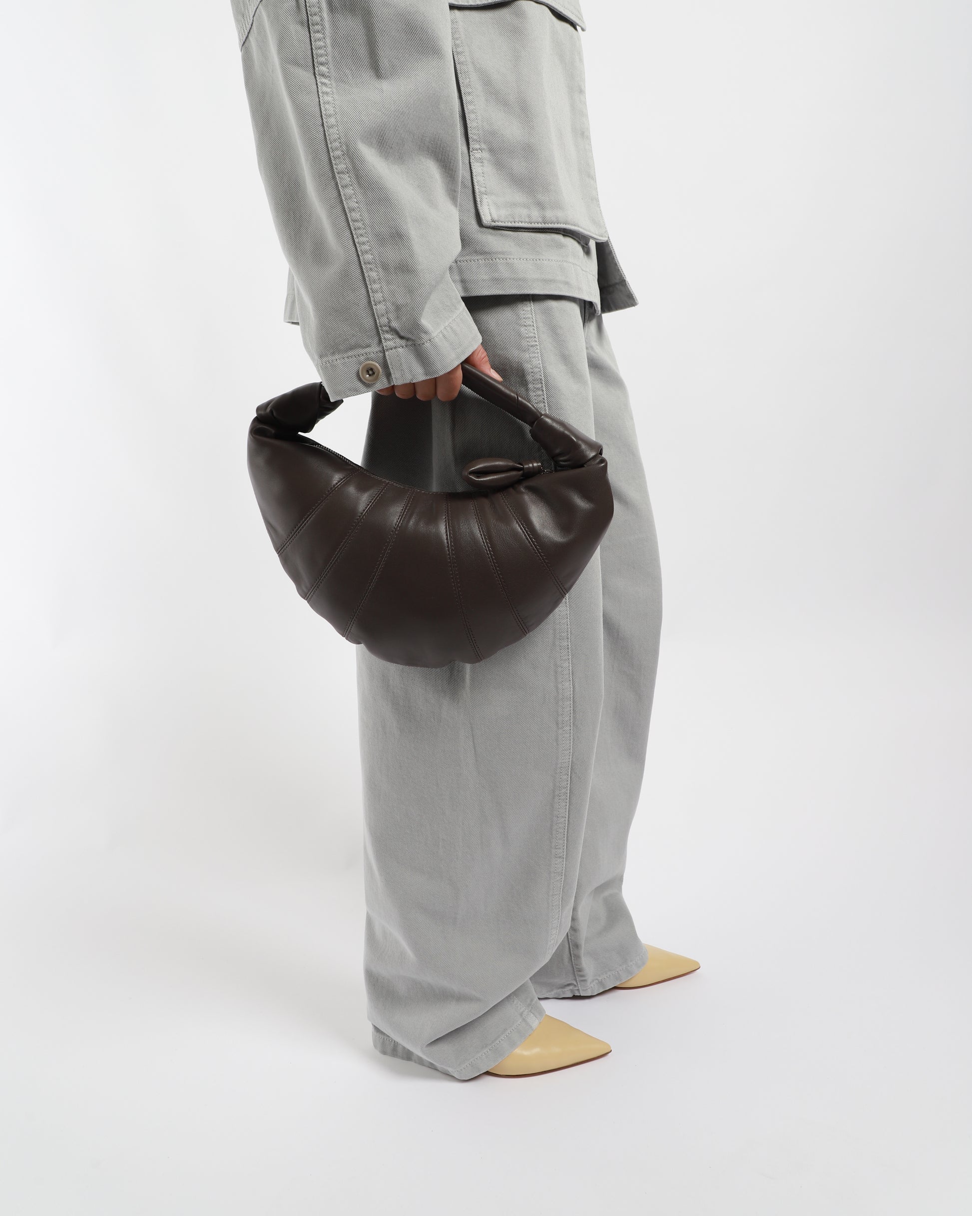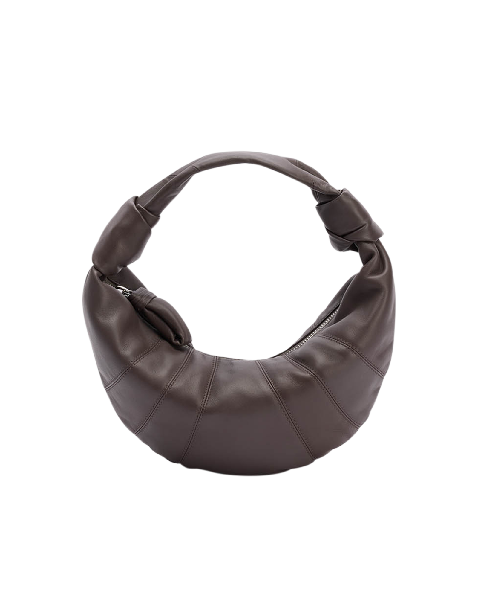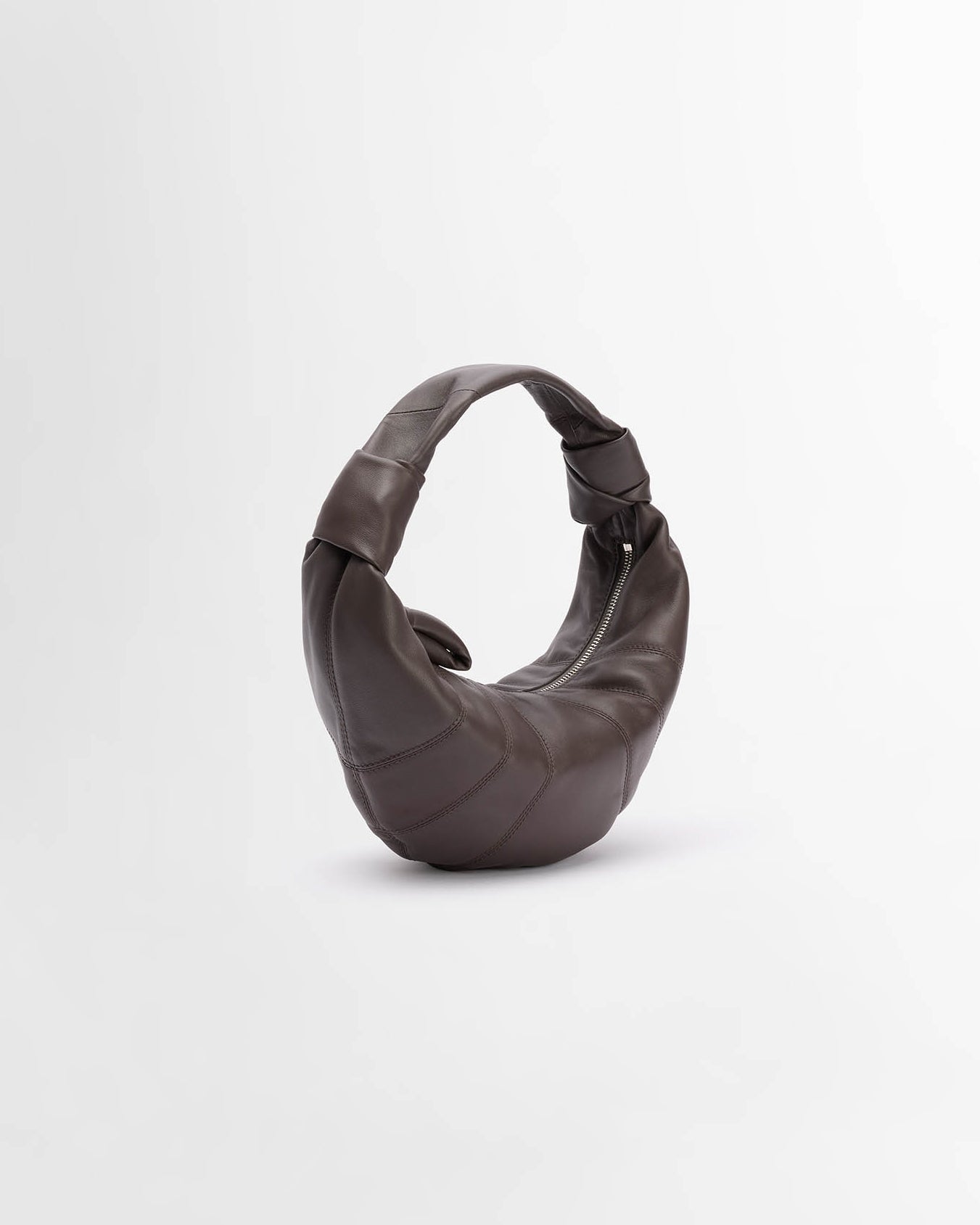 This bag is a new size added to the Fortune Croissant family. It is made in soft nappa leather that is both supple and resistant, giving the bag a delicately smooth hand. It has a shorter strap which allows it to be carried by hand, and is an ideal capacity for common essentials. Its folded crescent design is achieved through an assembly of topstitched cut-outs. Made in Spain.