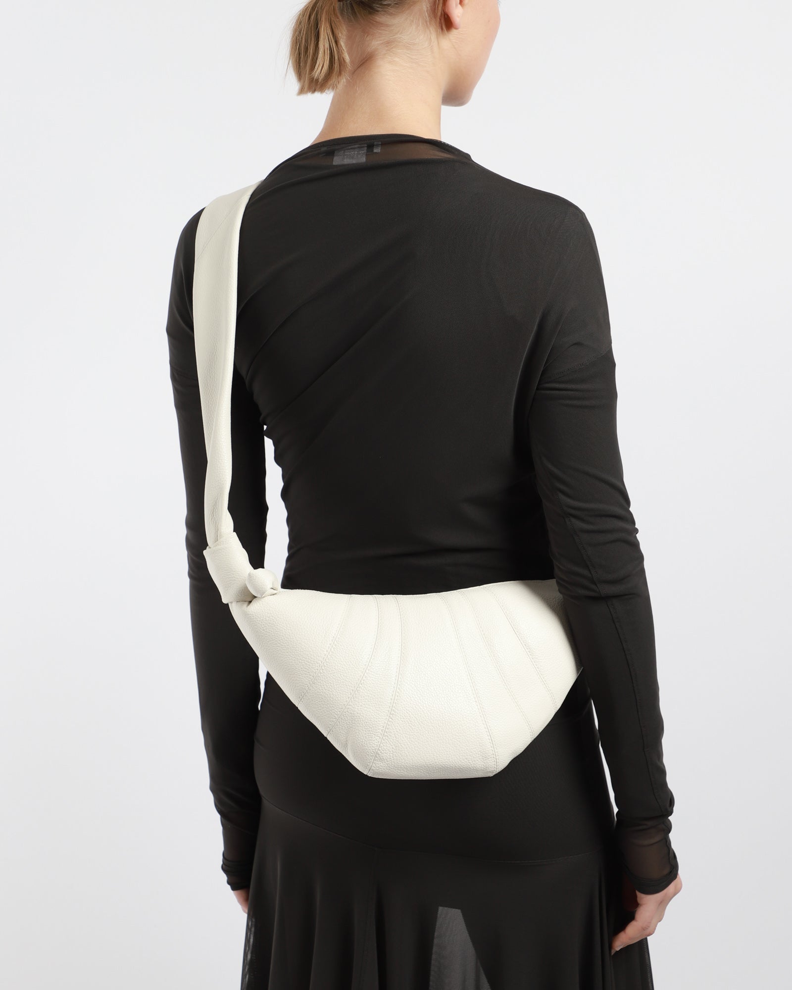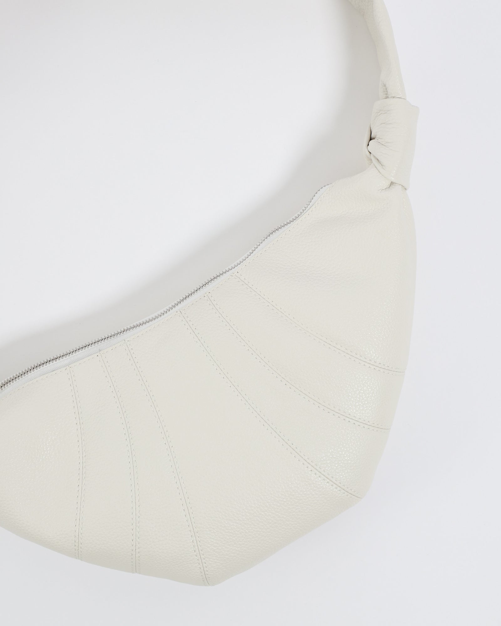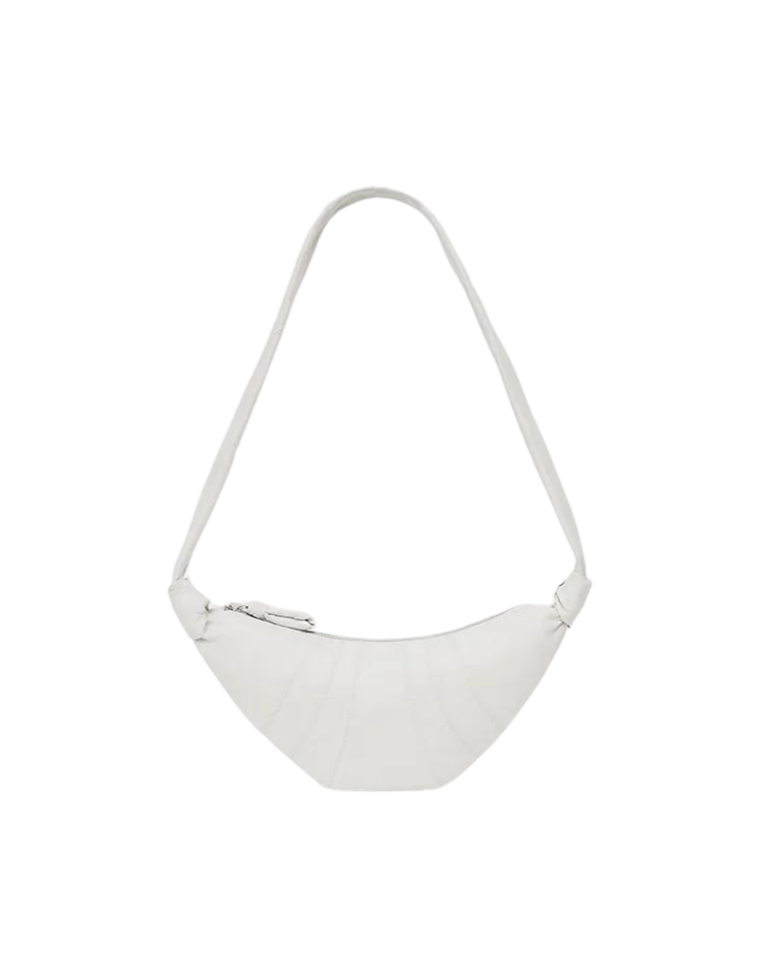 Lemaire's Small Soft Grain Croissant Bag is made of soft grained leather that is supple yet resistant. Inspired by the shape of the croissant pastry, its design is achieved through an assembly of top-stitched cutouts, blending style and functionality. It also features a matching looped zip puller and side knot finishings. The Small Croissant has the capacity for small accessories such as a smartphone, a card holder and a wallet.