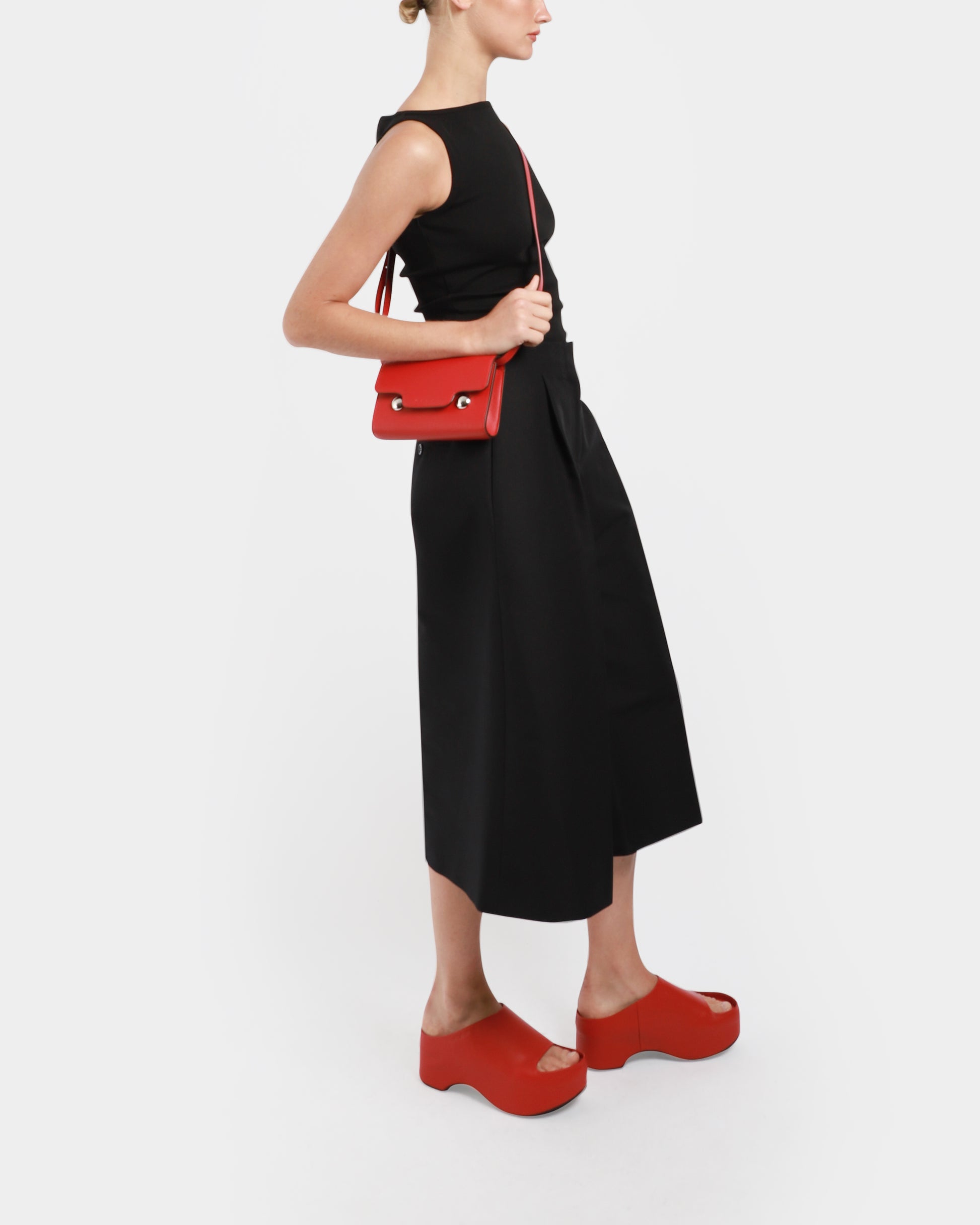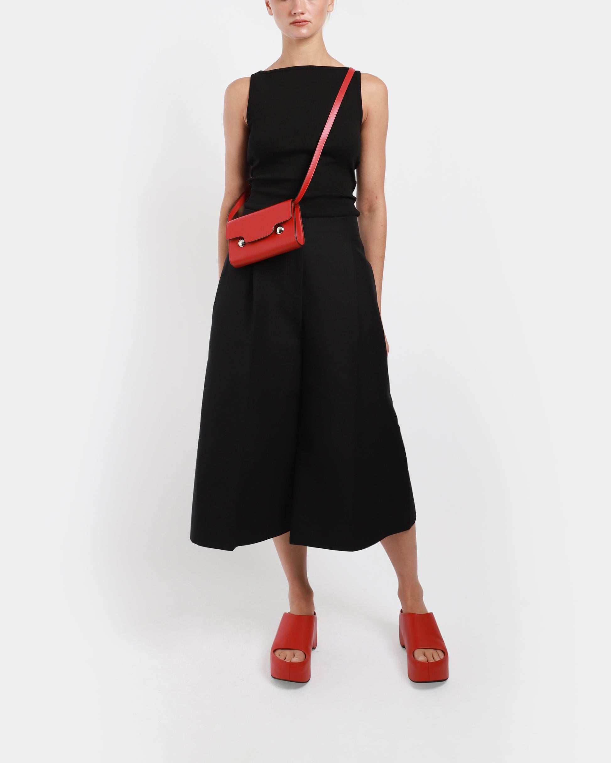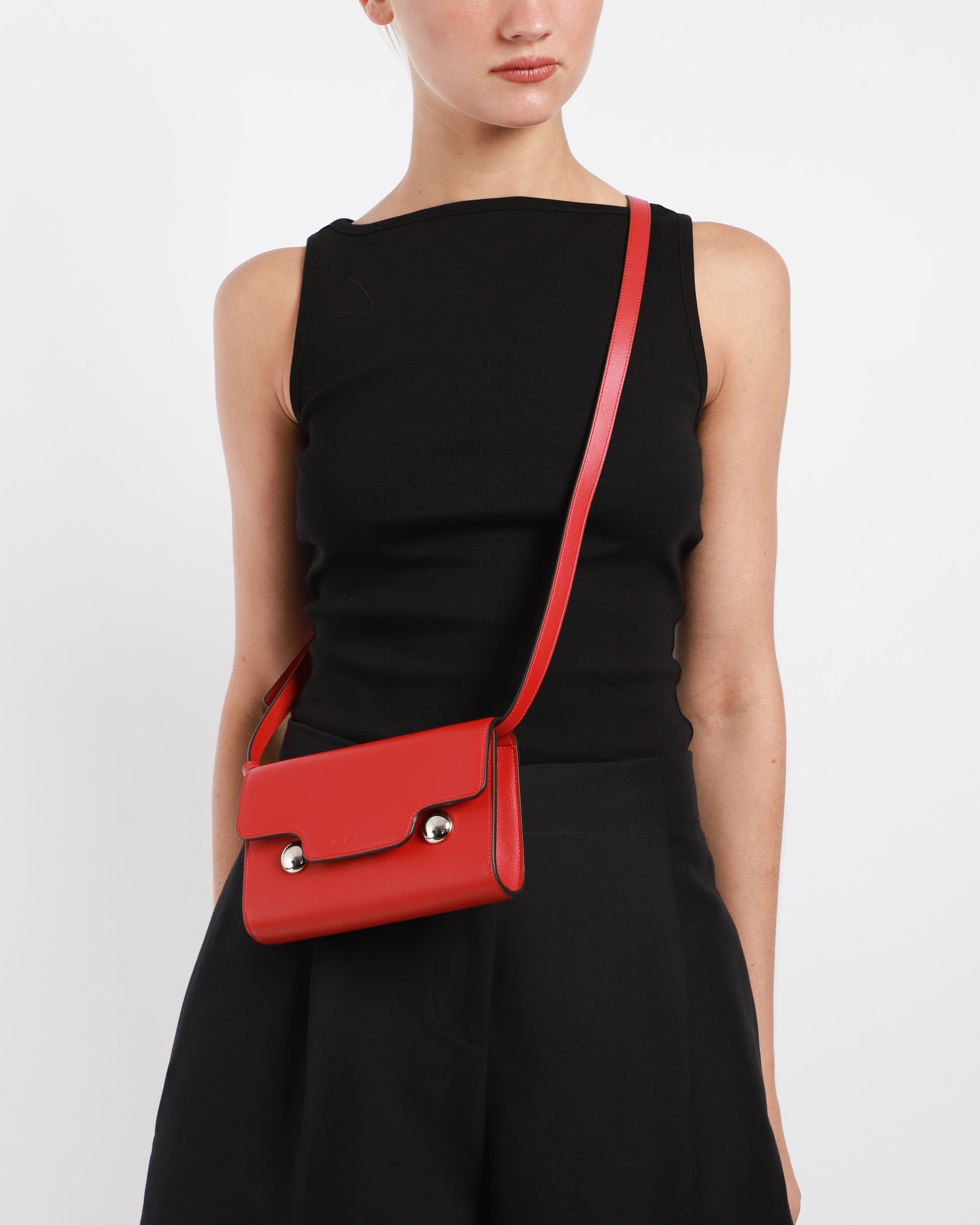 Crafted in Italy, this bag features a front flap with a magnetic closure. It comes with a removable and adjustable shoulder strap, and a single compartment with an inside pocket.
