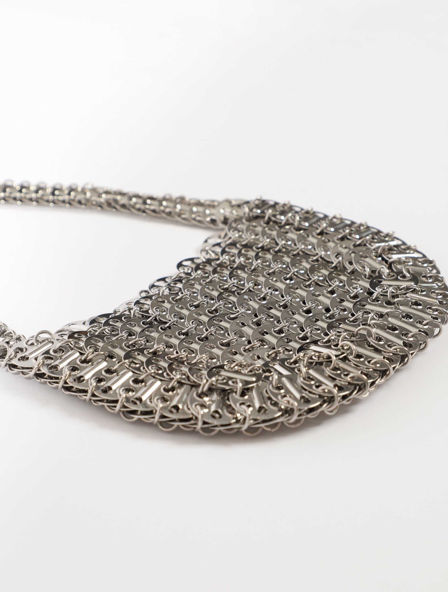 Paco Rabanne classic shoulder bag, featuring the brand's signature brass chainmail body and strap in a sealess half-moon shape.