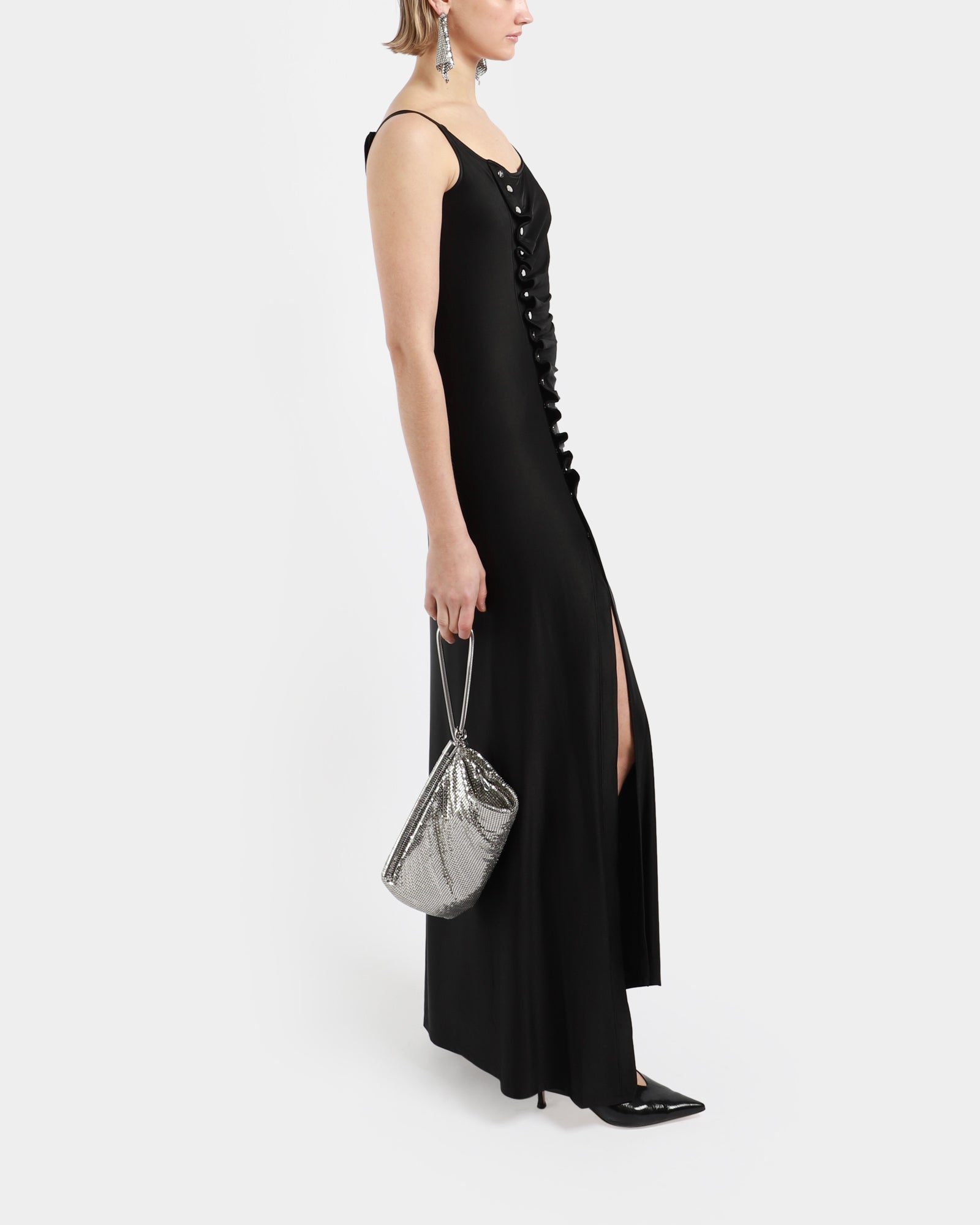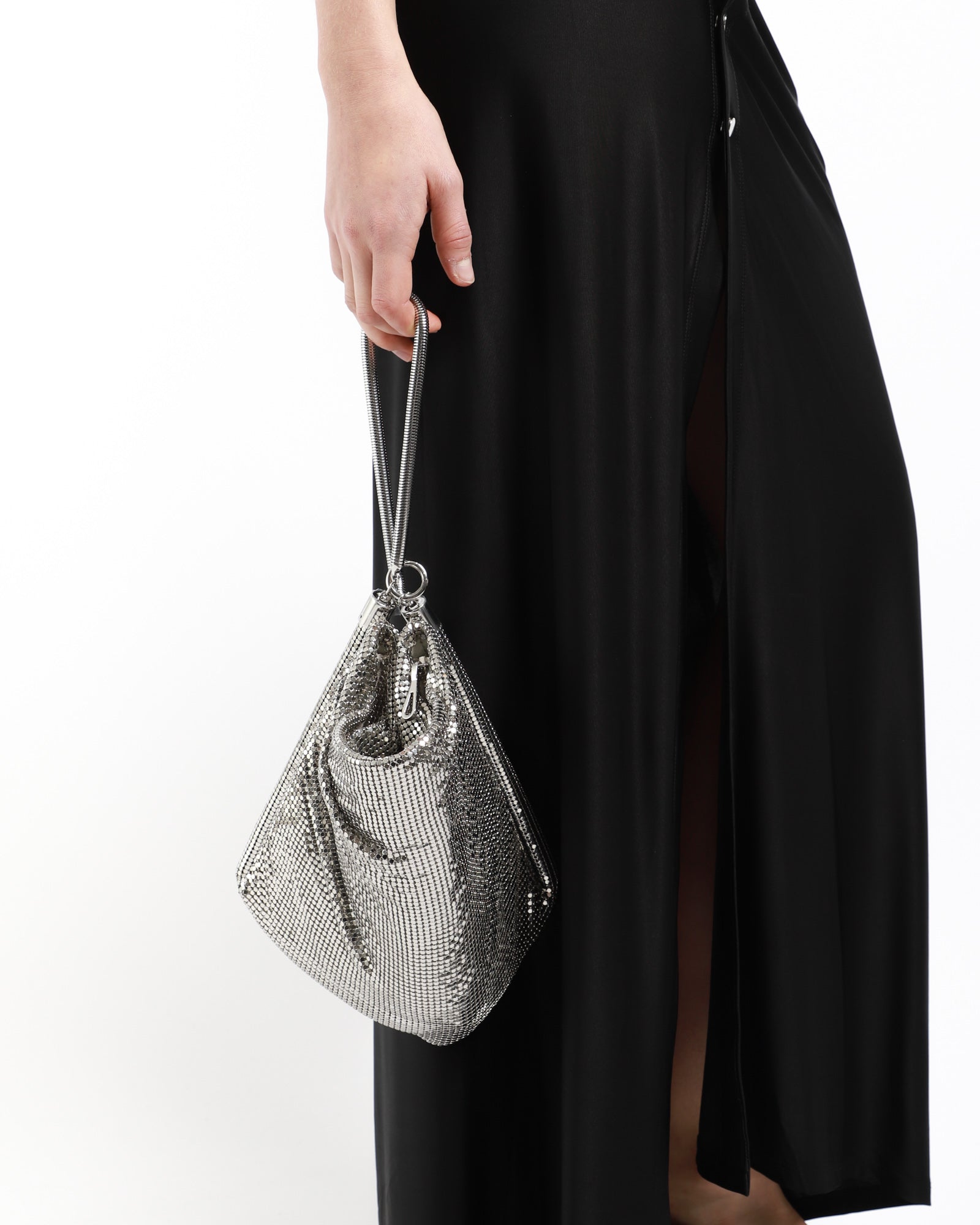 Rabanne continues its tradition of using unconventional materials with this aluminium bag. Featuring a space-age aesthetic, the Pixel Tube’s slouchy silhouette is highlighted by a shimmering silver-tone chainmail detail and can be worn two-ways.