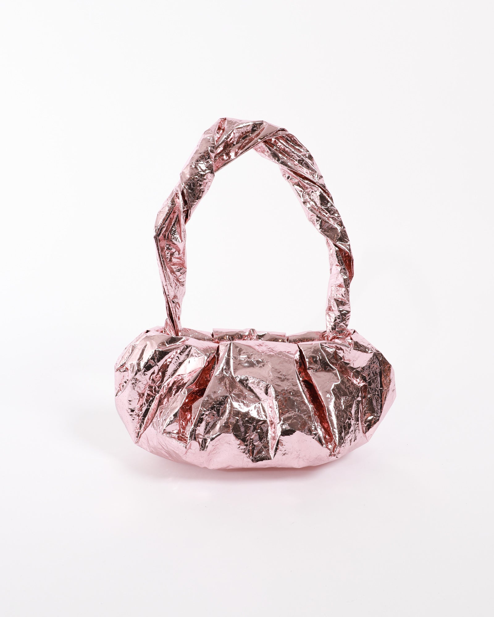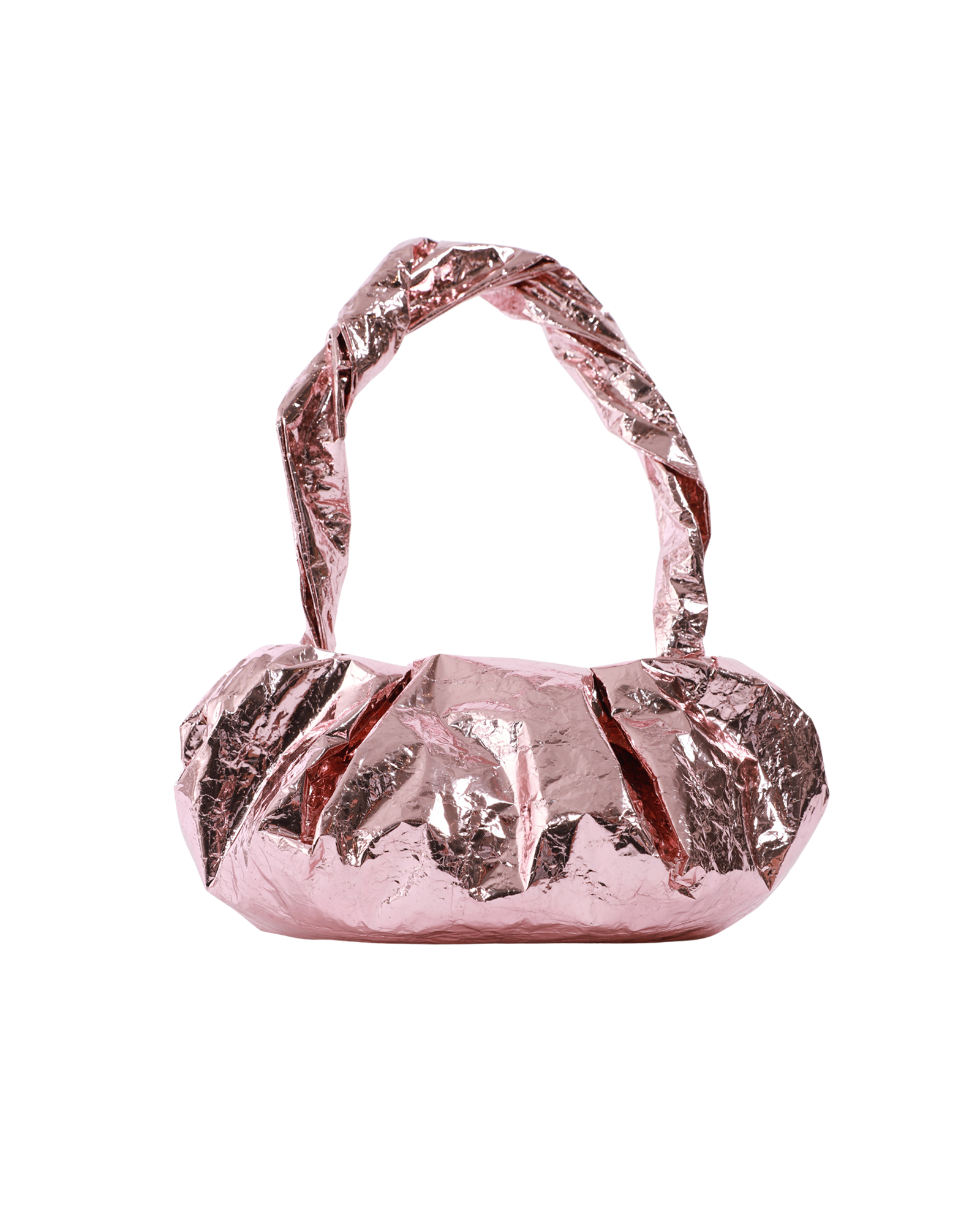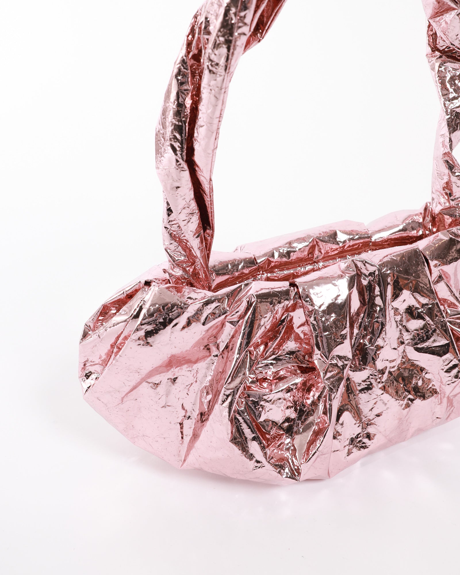 The Rory William Docherty Metallic Crush Bag is a bold shoulder bag crafted from metallic foil with a reflective finish. Featuring a secure zip closure, this bag offers functionality.
