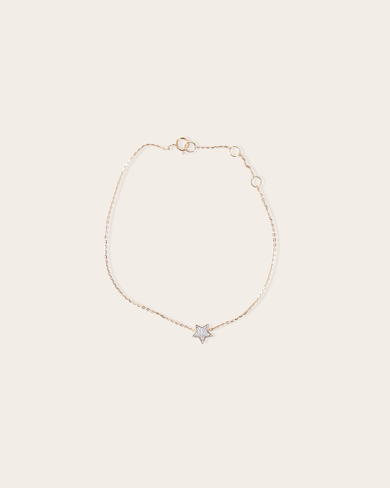 The Hadrian Bracelet by Constellate features a single star on a delicate chain, adorned with diamonds and crafted from 18ct yellow gold. Lovingly made in Australia.