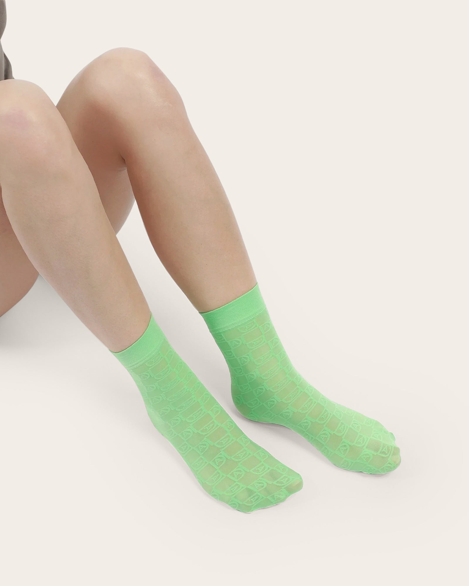 The Summer Socks by Dal 1992 are a sheer stock with a reinforced band sitting as a 'tall' sock. They are knitted in Italy, and hand-dyed in Australia.