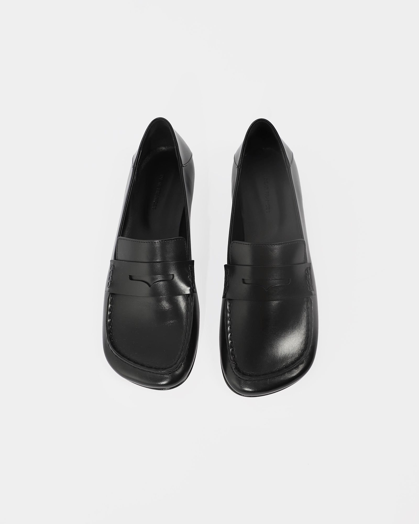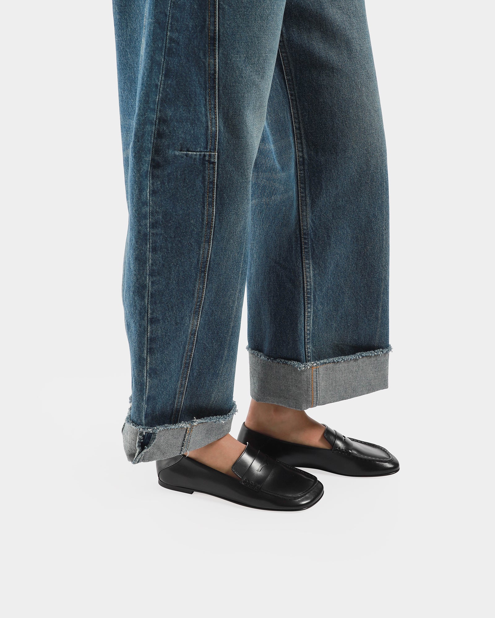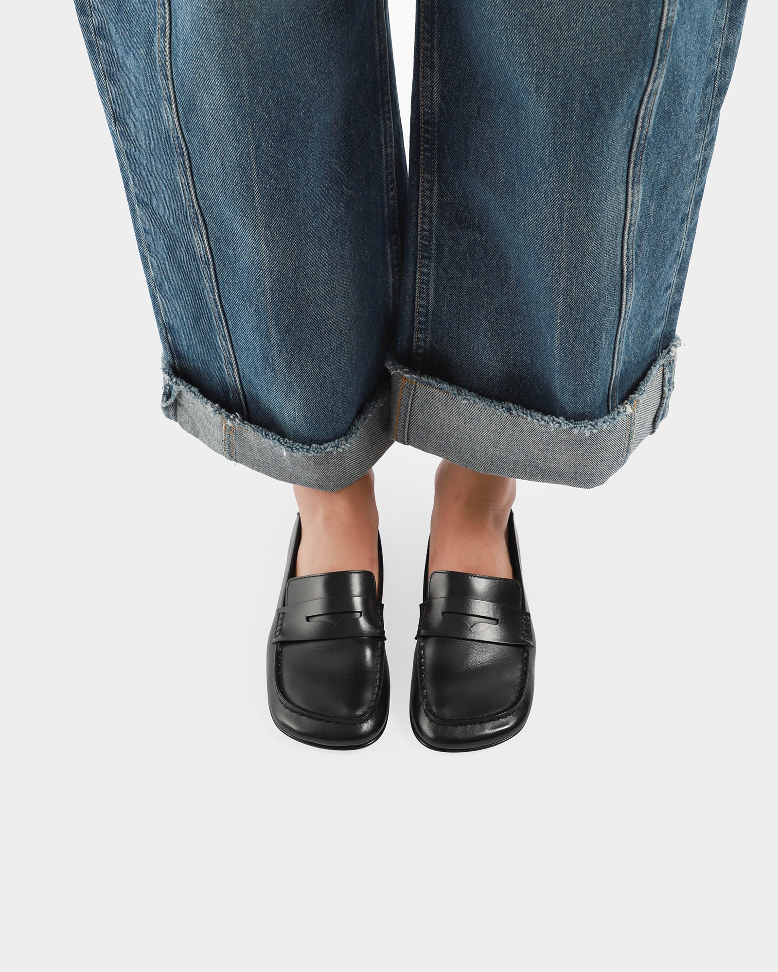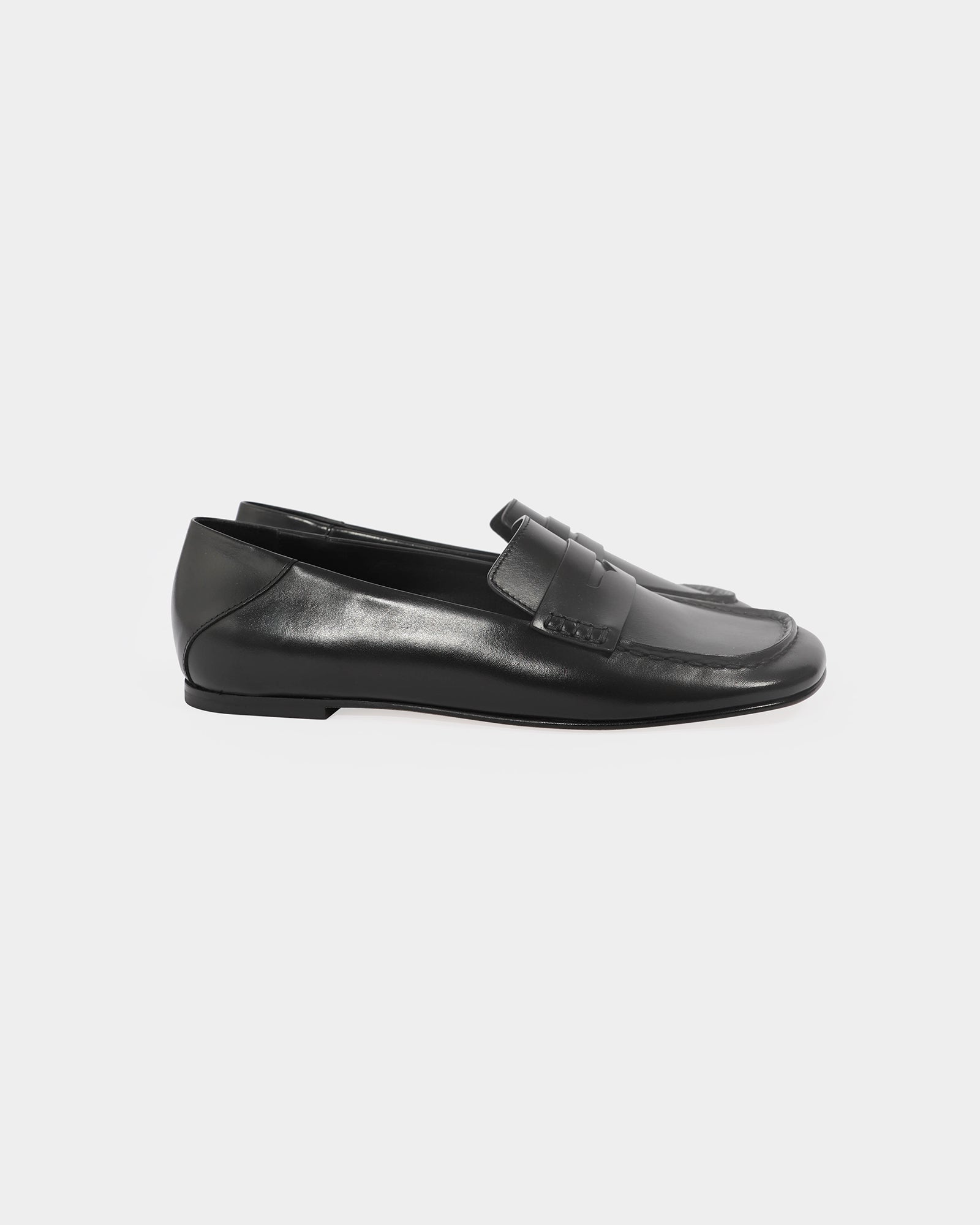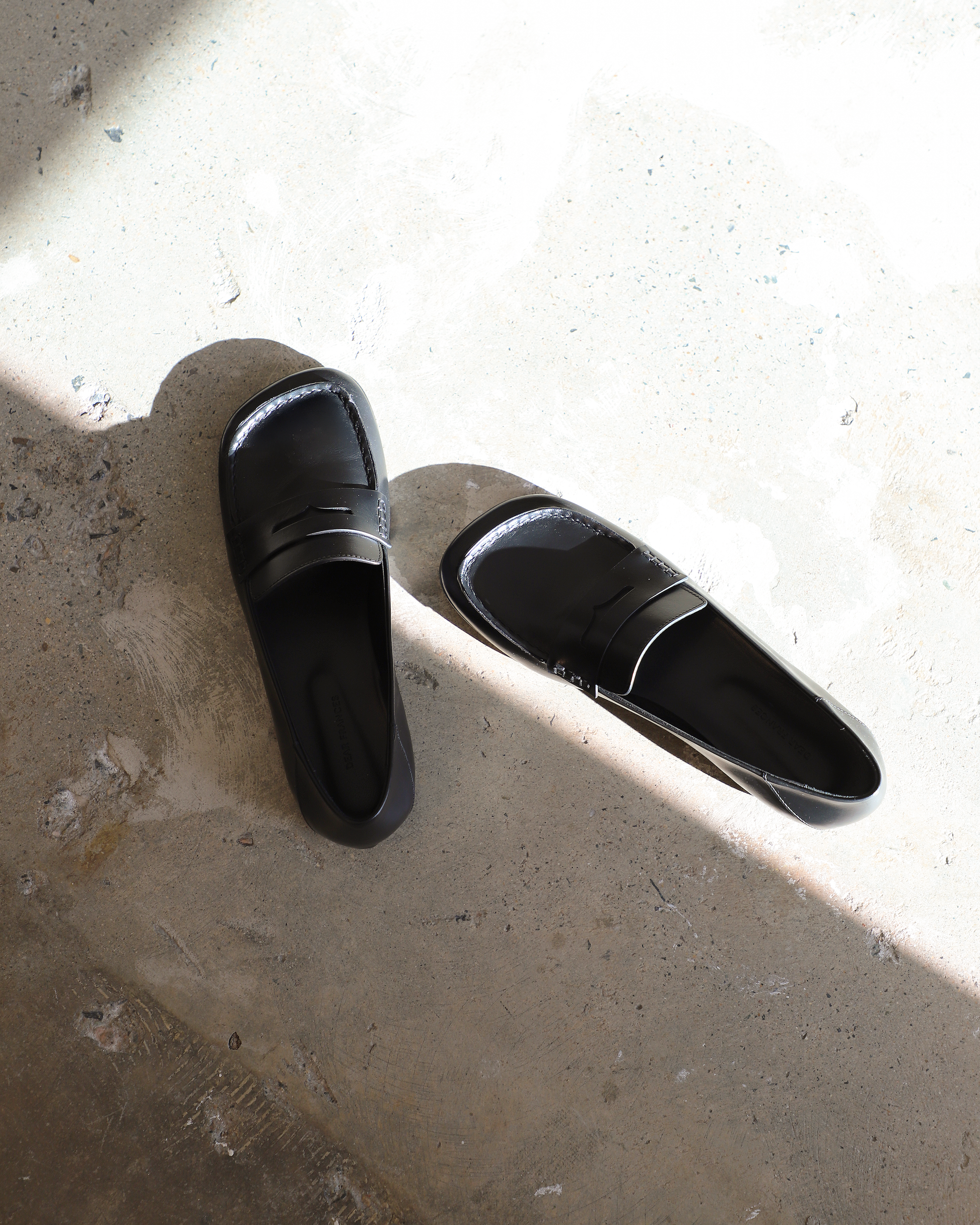 These modern loafers, handmade in Italy, detailed with a refined pennystrap, feature a square toe and crafted in smooth calf leather. They have leather padded insole, buffed leather outsole and low stacked cuoio heel.