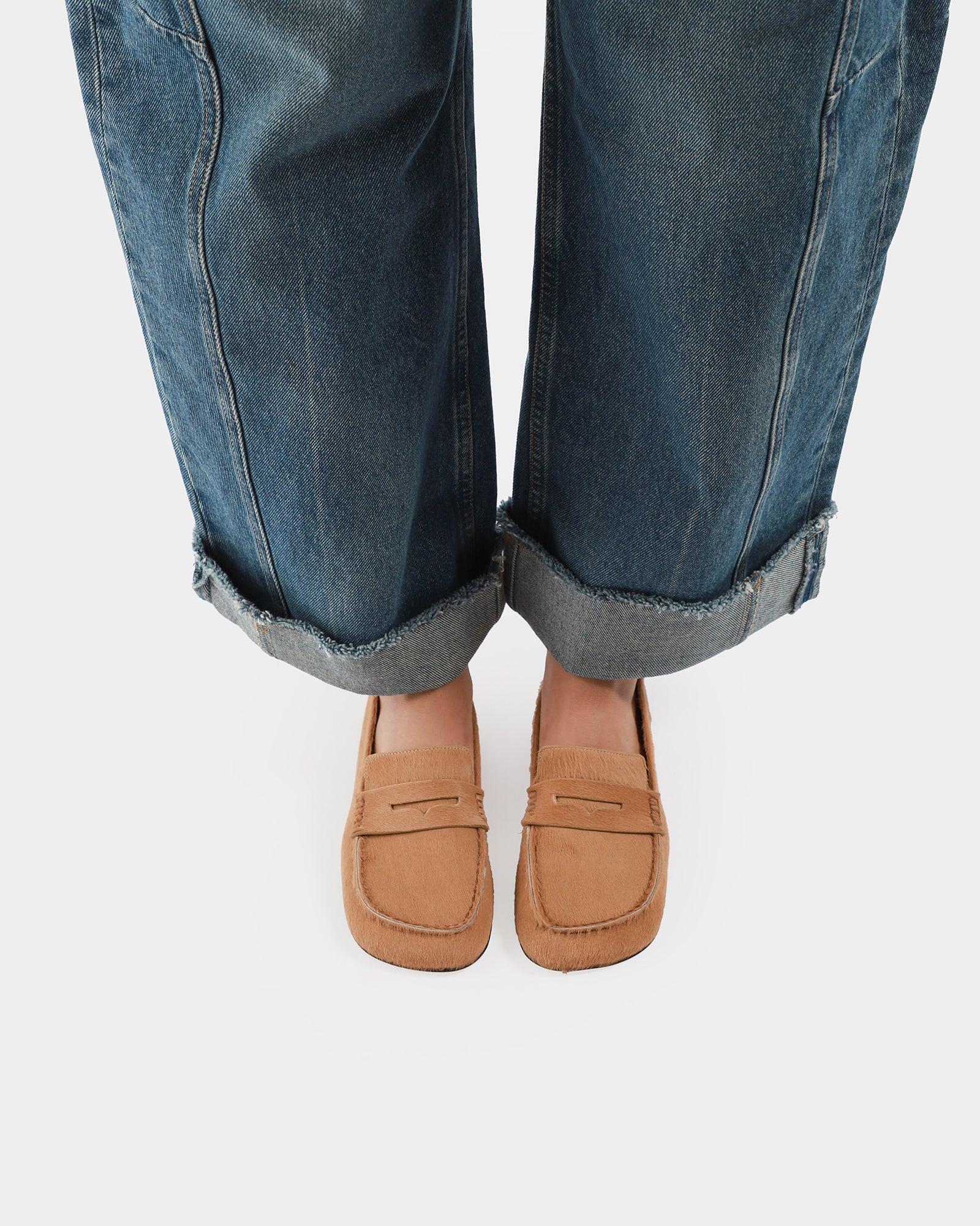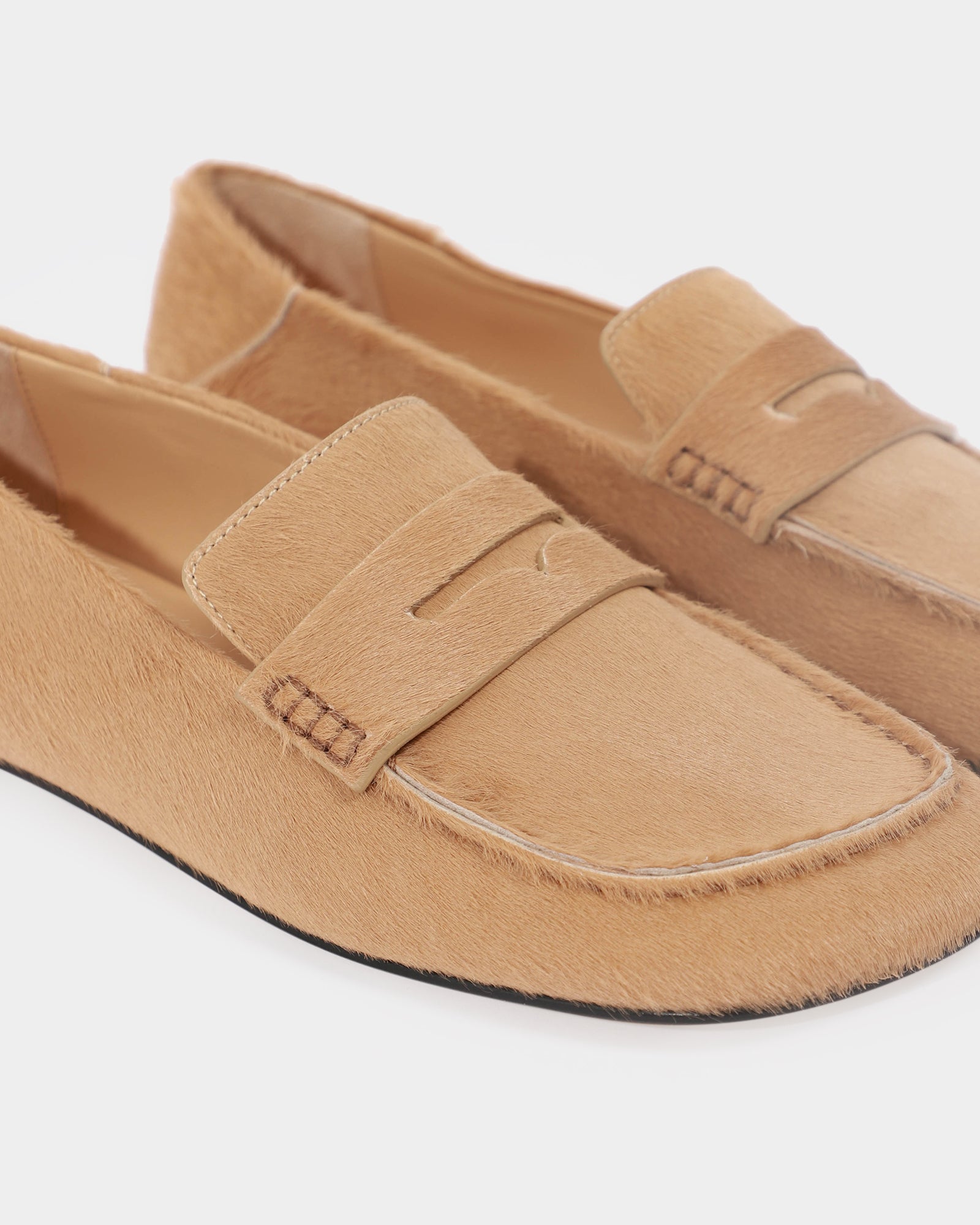 These modern loafers, handmade in Italy, detailed with a refined pennystrap, feature a square toe and crafted in leather. They have leather padded insole, buffed leather outsole and low stacked cuoio heel.