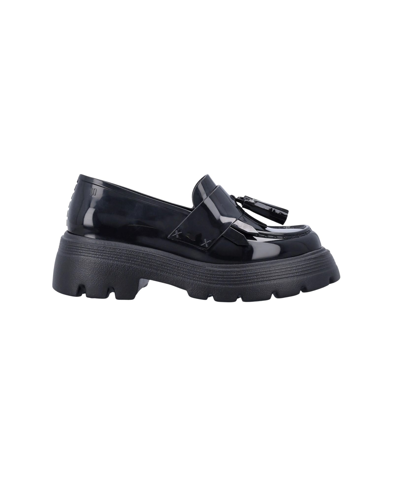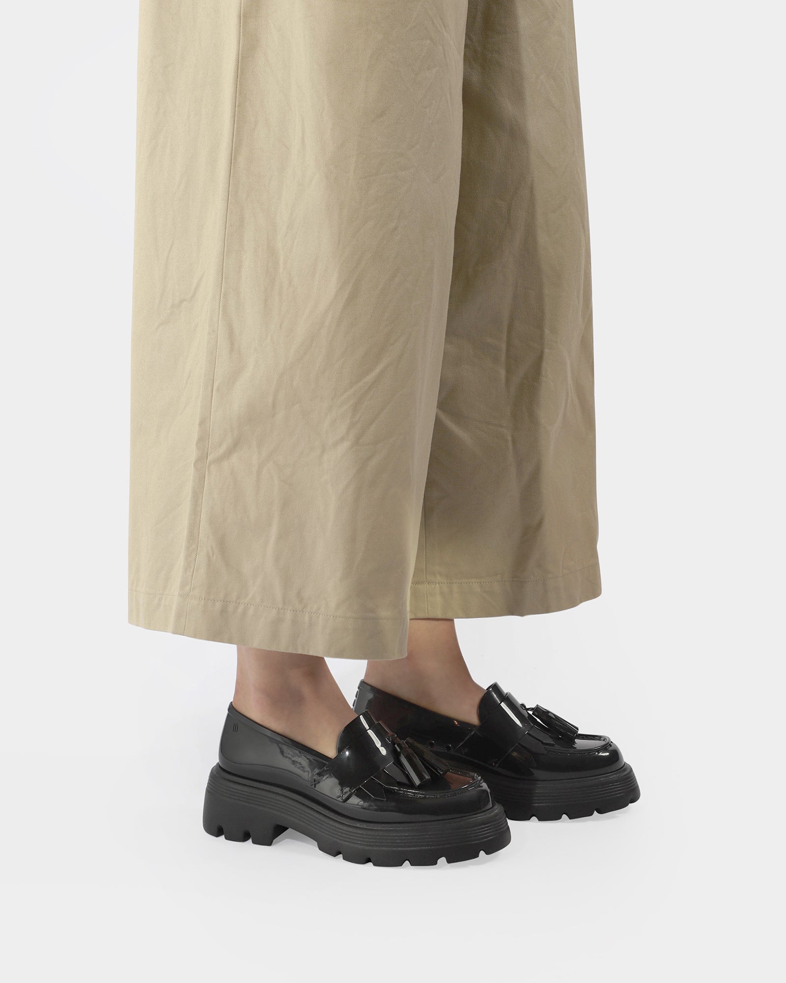 Platform loafers featuring fringe and tassels detail, branded insole with a slip-on style.