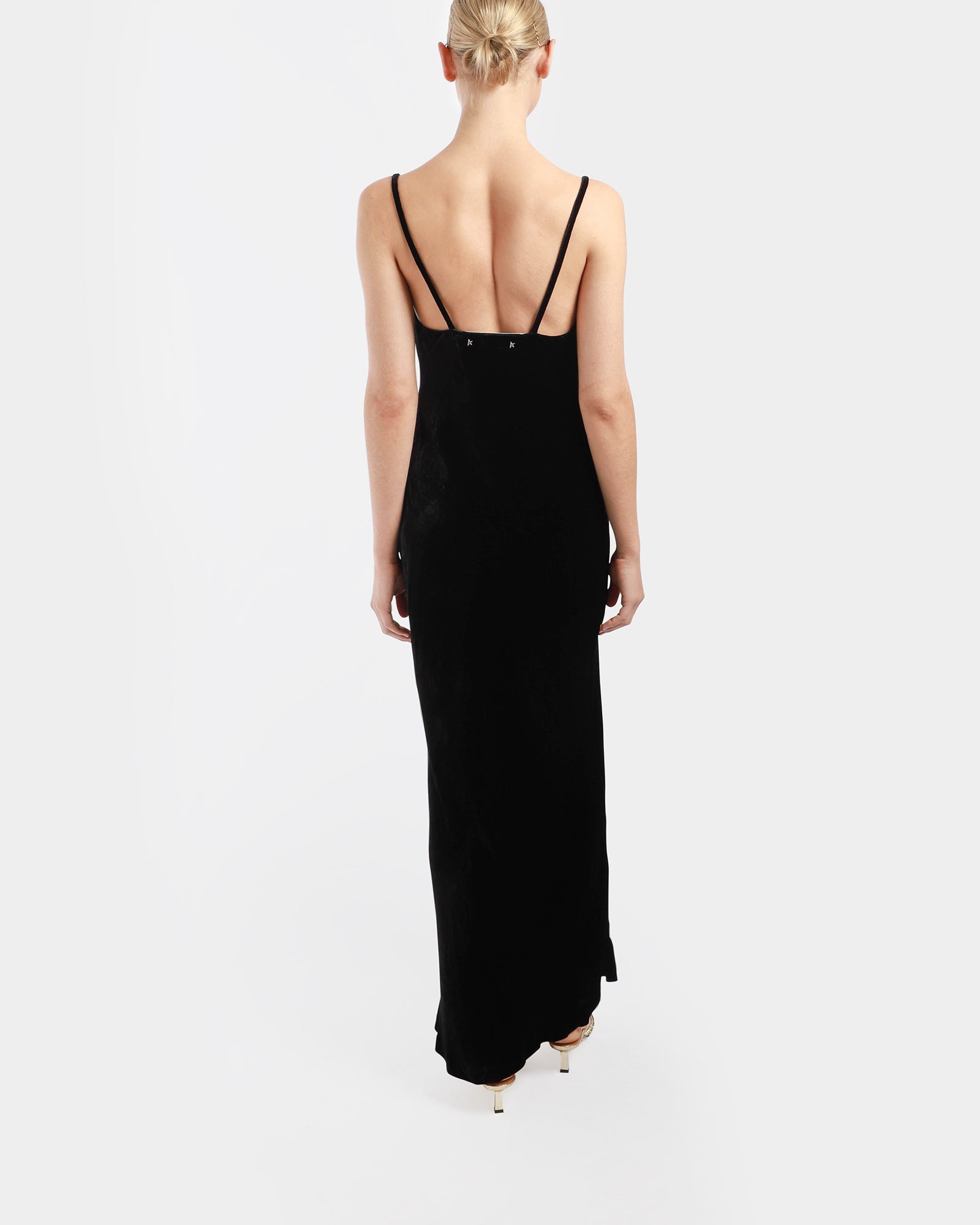 Nineties inspired, this sleeveless sleep dress brings vibrant energy. It features a cowl neckline, velvet effect and a relaxed silhouette. It offers a final touch with the double star on the back. Made in Italy.