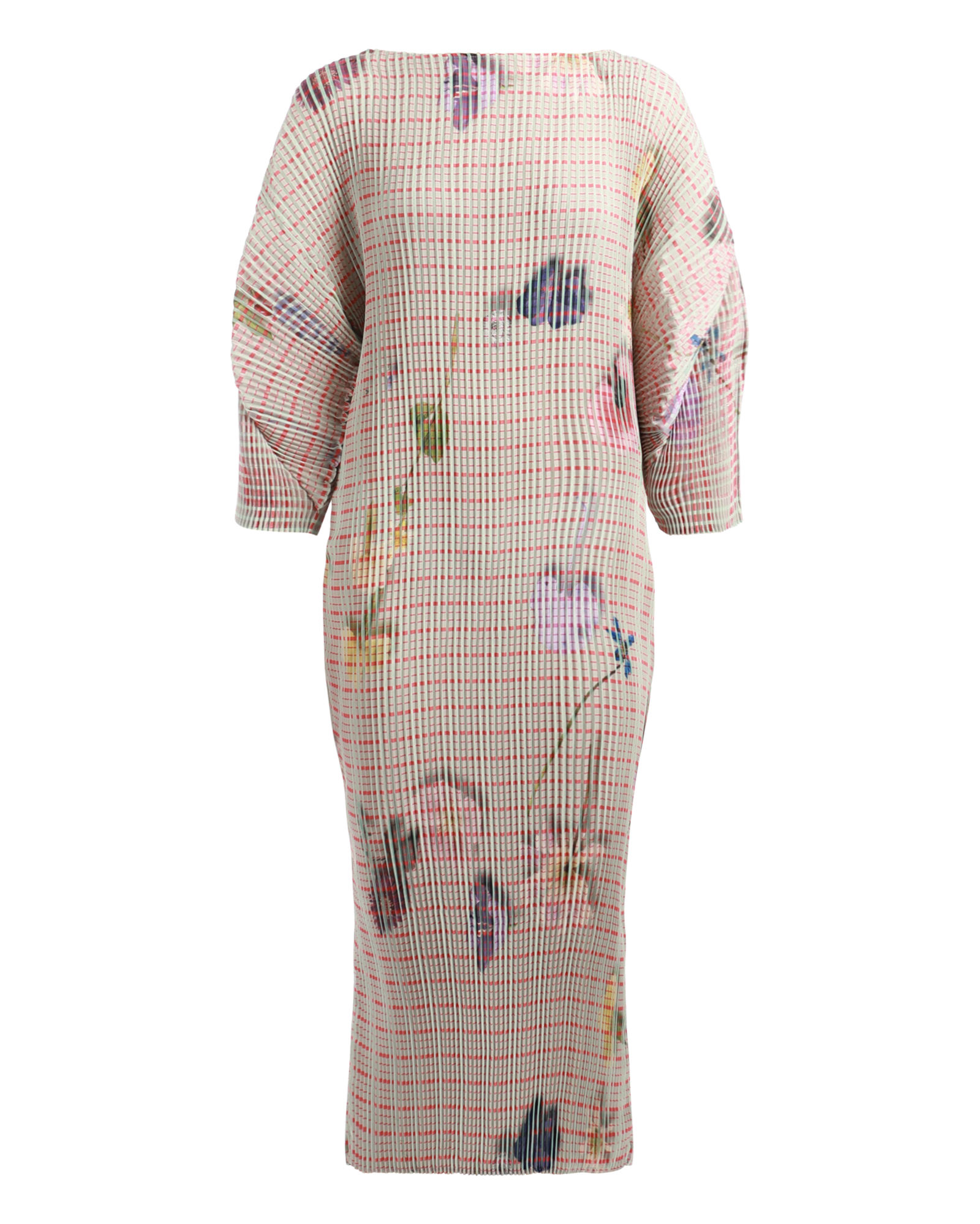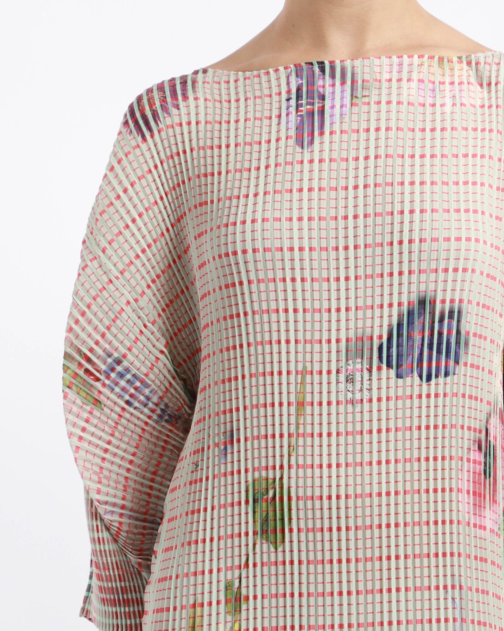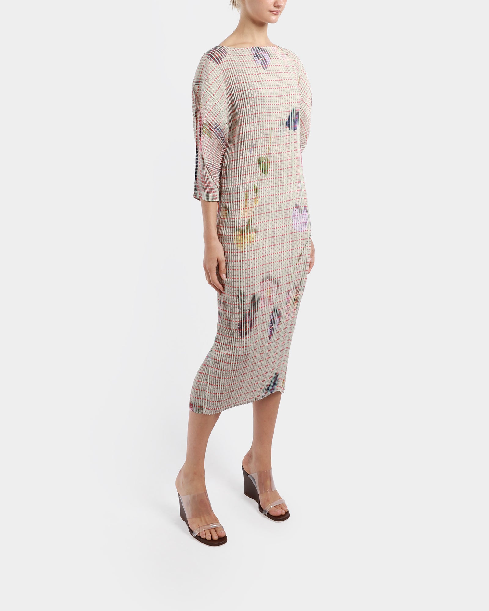 The Leila dress has a straight fit silhouette featuring chevron-pleated elbow-length sleeves and boat neckline. This beautiful piece feature distinctive shading variations and colour patterns, individually crafted. Designed in Paris and made in France.