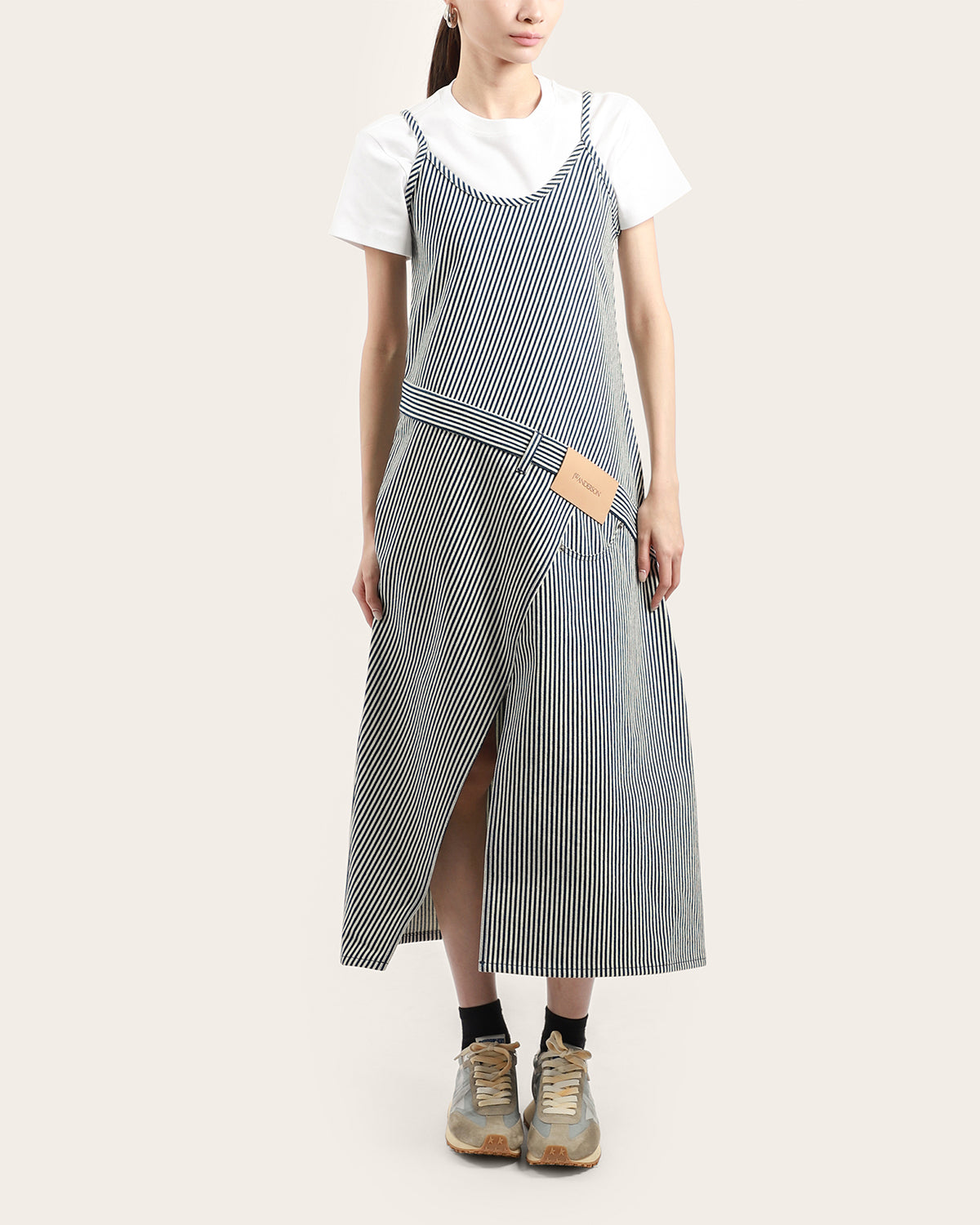 A directional take on utility dressing, the JW Anderson Twisted Workwear Dress transforms classic denim into a sculptural statement. The dress features the brand’s signature twisted construction, creating an asymmetric, body-contouring silhouette.