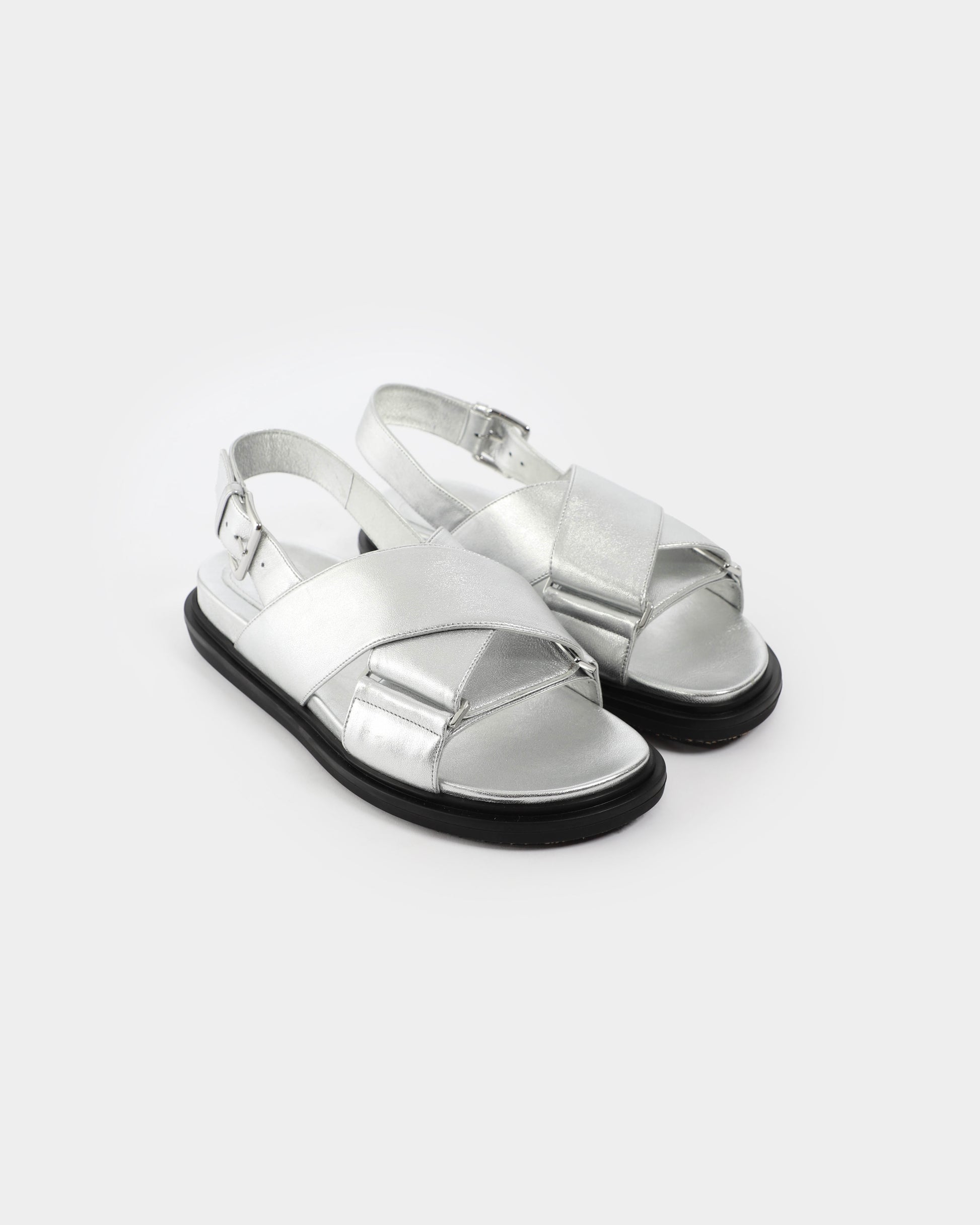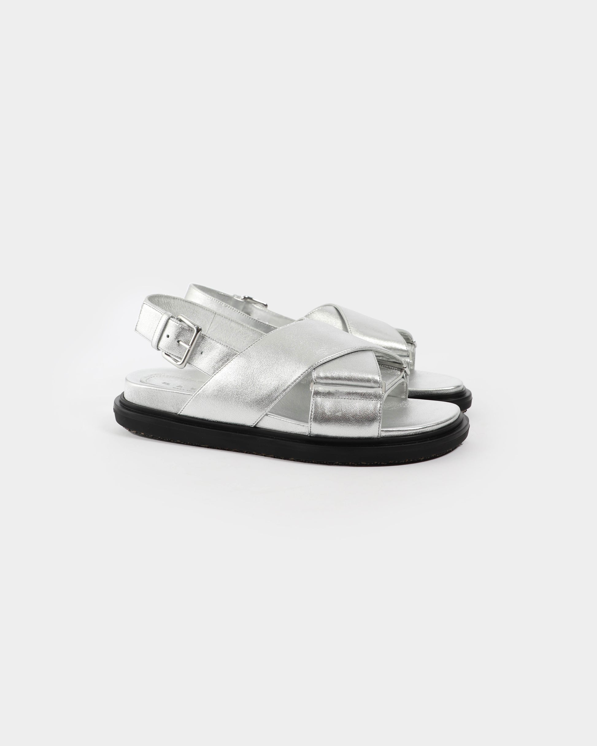 The Fussbett Sandal by Marni is an iconic style, with thick supportive straps and a signature cross-over design. They also feature a smooth calf-skin leather, including the footbed sole. Made in Italy.