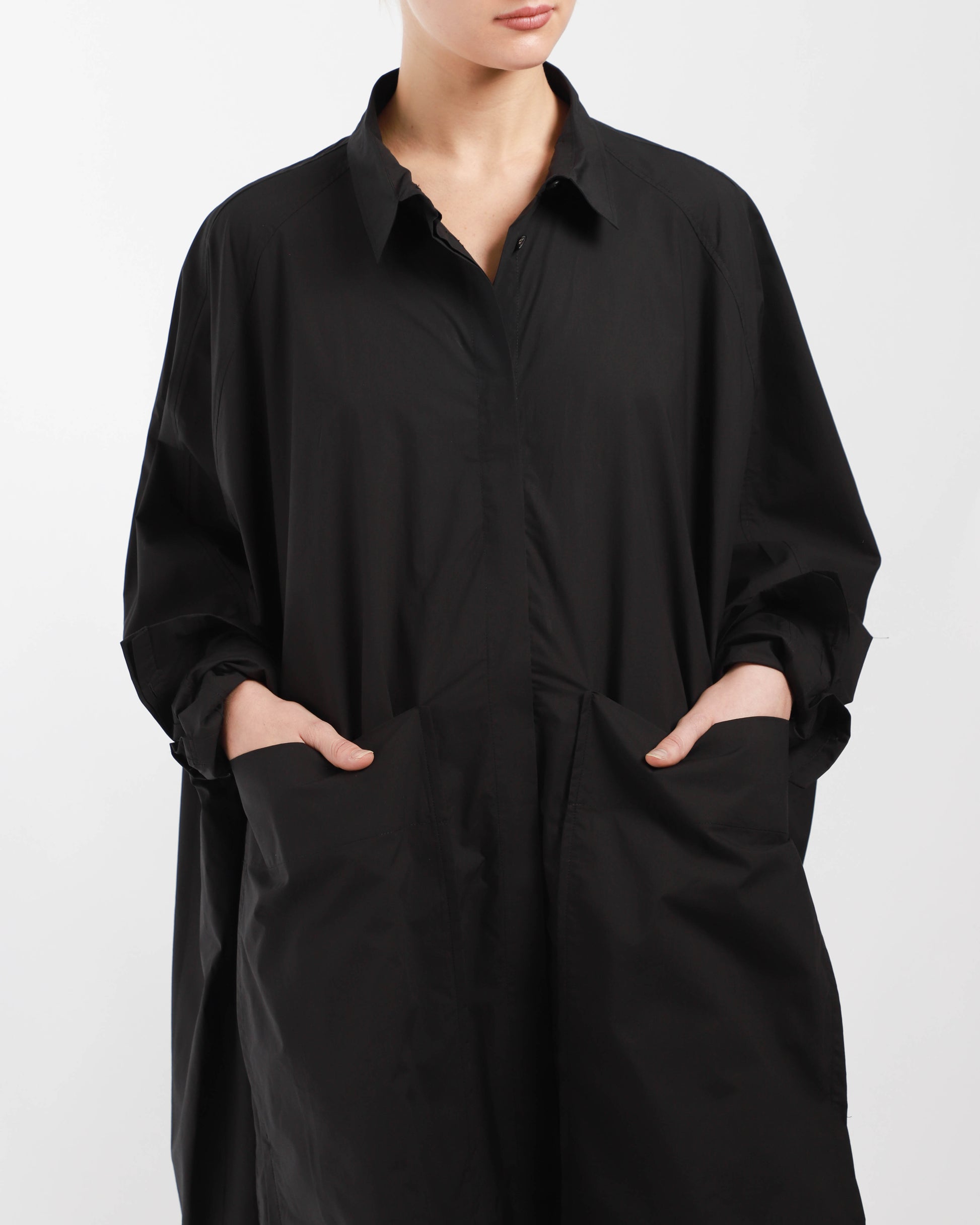 This shirt dress, feature a classic collar with hidden buttons at front to close, two large front pocket and an oversized look.