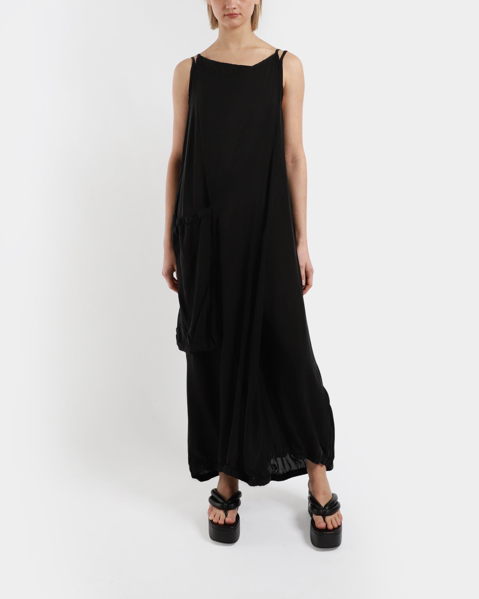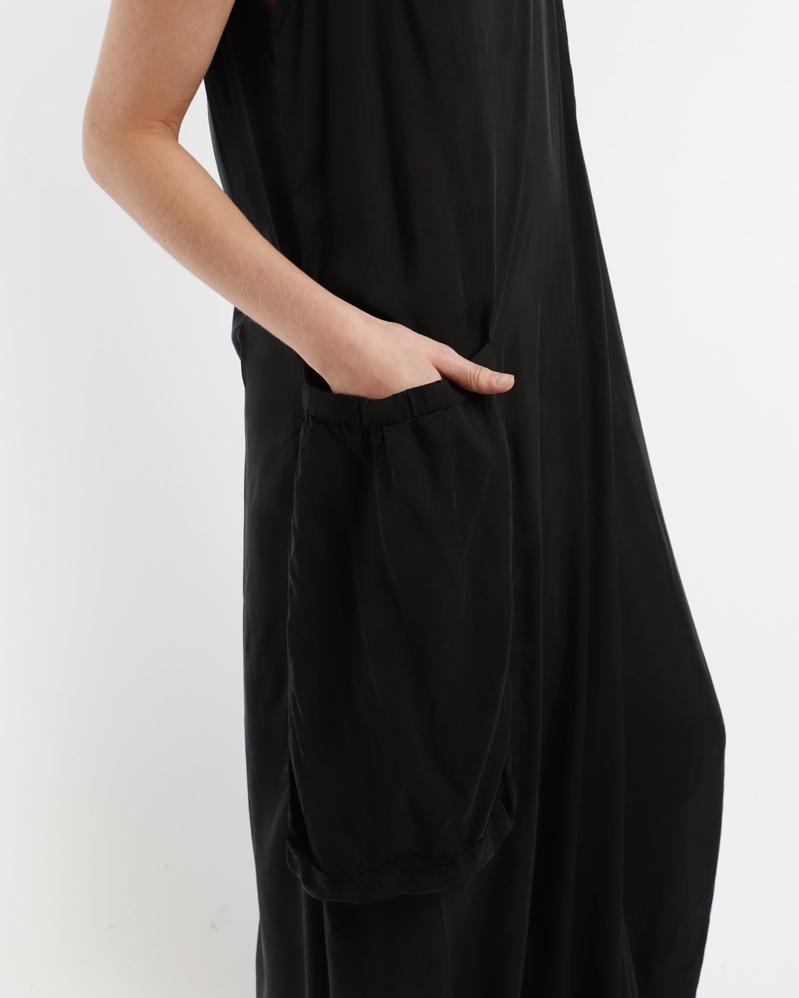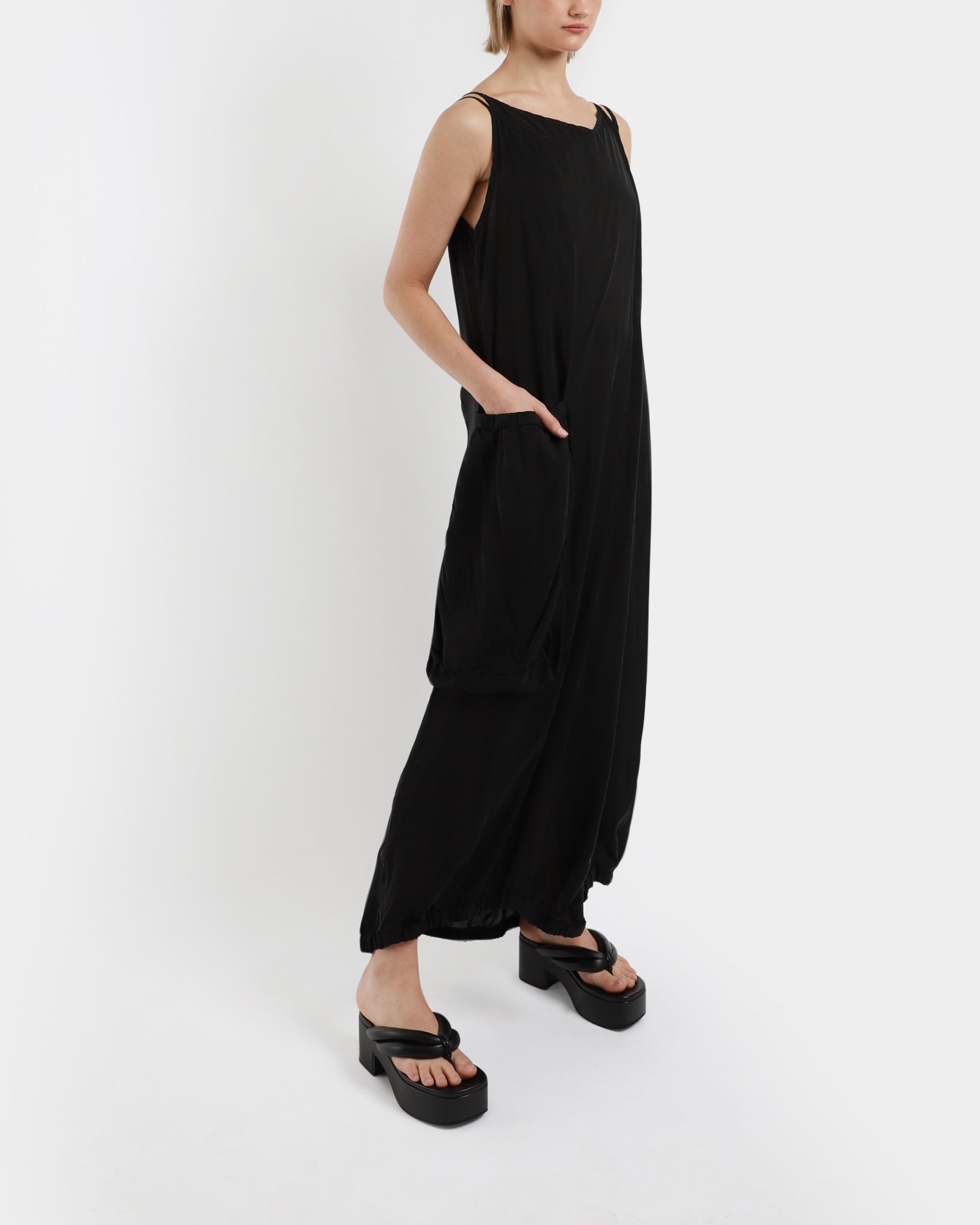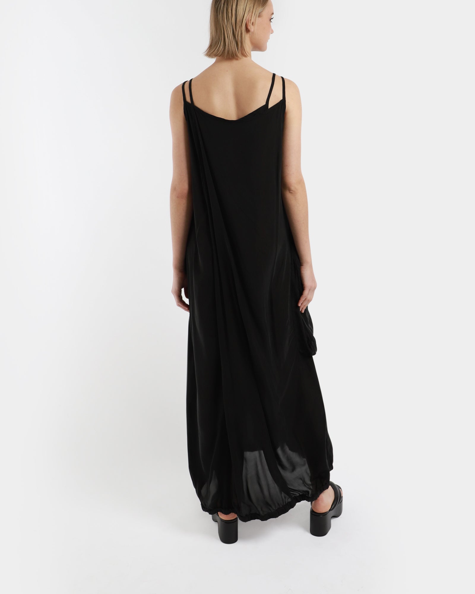 The Pockets Silk Layer Dress is a full-length dress with a layered design, it has an elasticised hemline and features a large pocket on the right side. Made from breathable, soft and silky cupro.