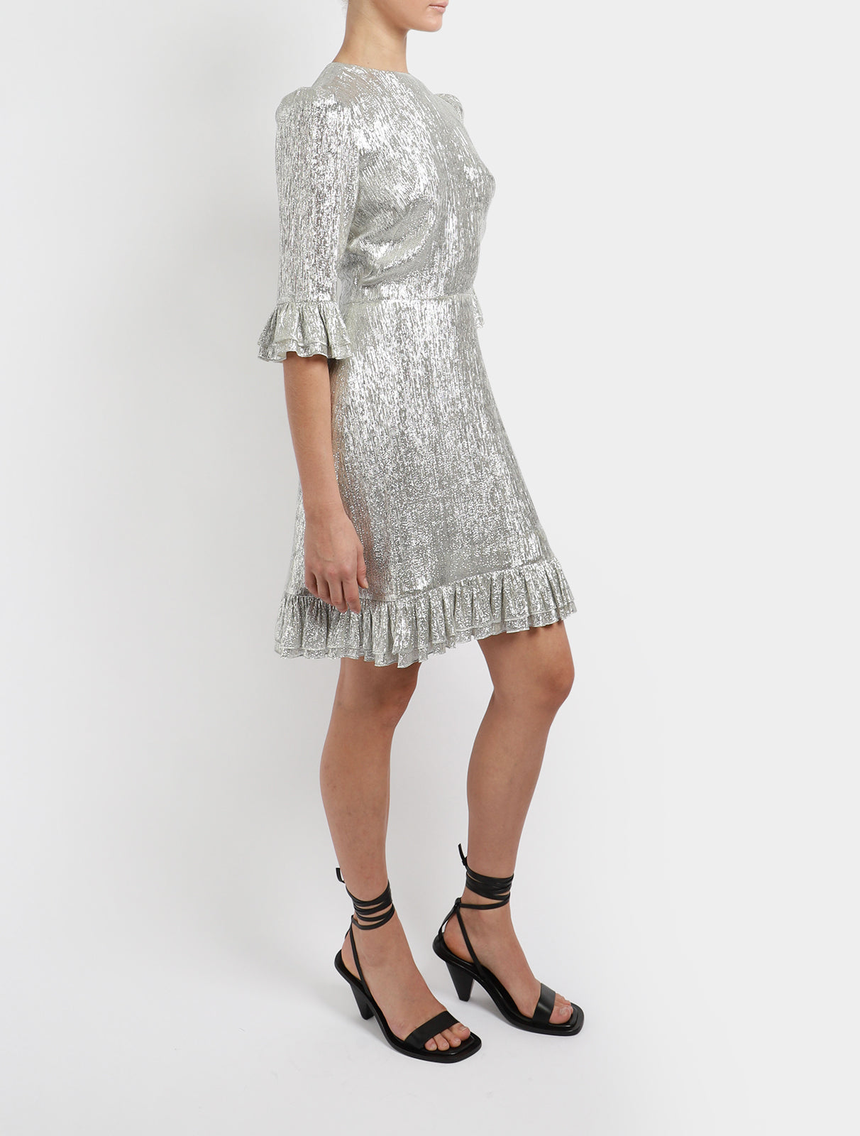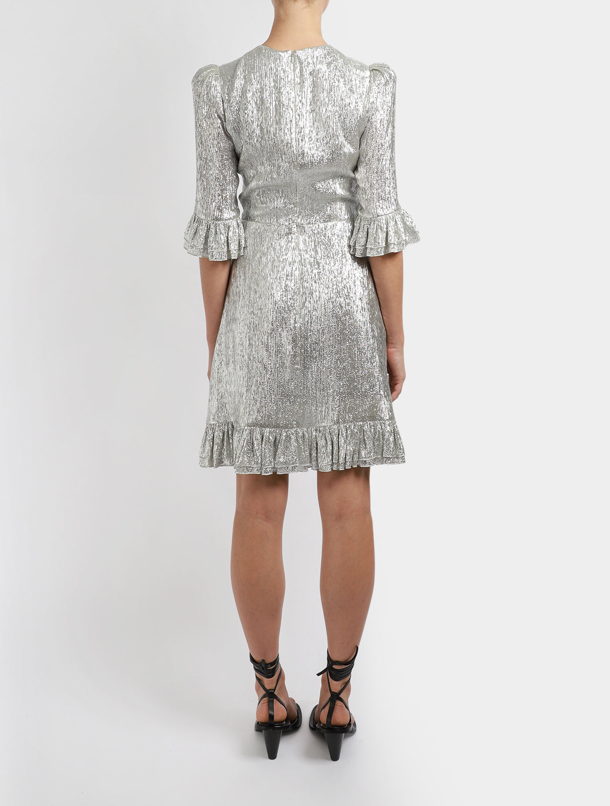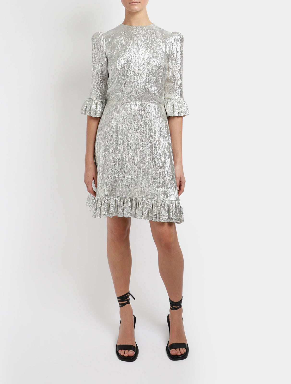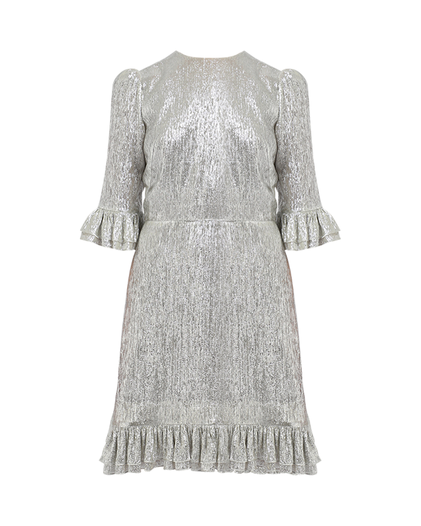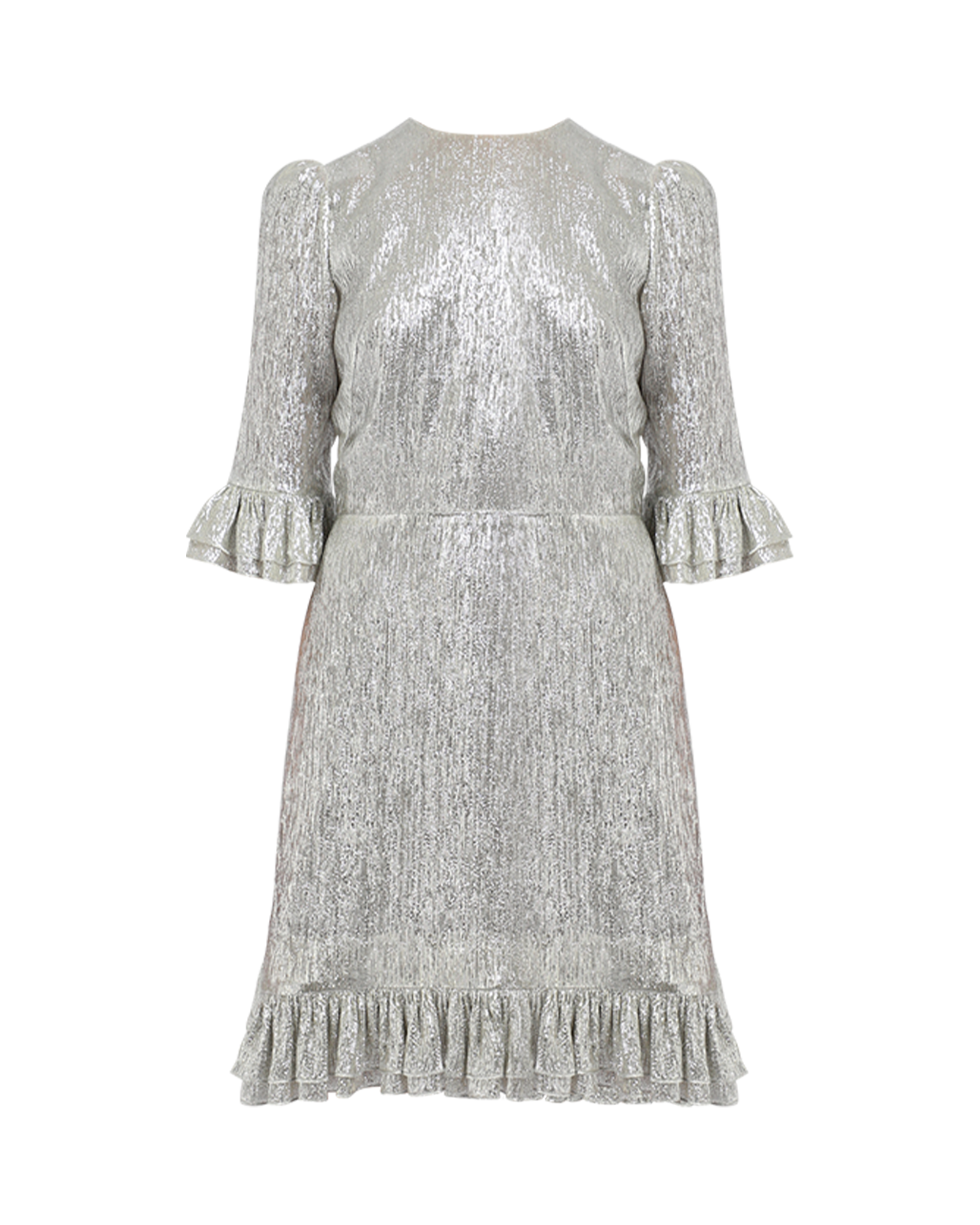 Please note, it is a very fine quality silk lamé, therefore fragile and should be worn with care. The delicate silk threads add beautiful depth of colour and texture but result in the silk lamé being easily snagged. We recommend that after each wear any loose threads should be carefully trimmed.