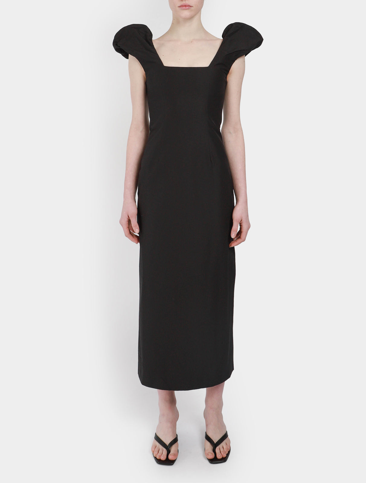Wynn Hamlyn victoria maxi dress, featuring an invisible zip closure, puff sleeves, centre front and back darts creating shape, blind hem finish and full lining.