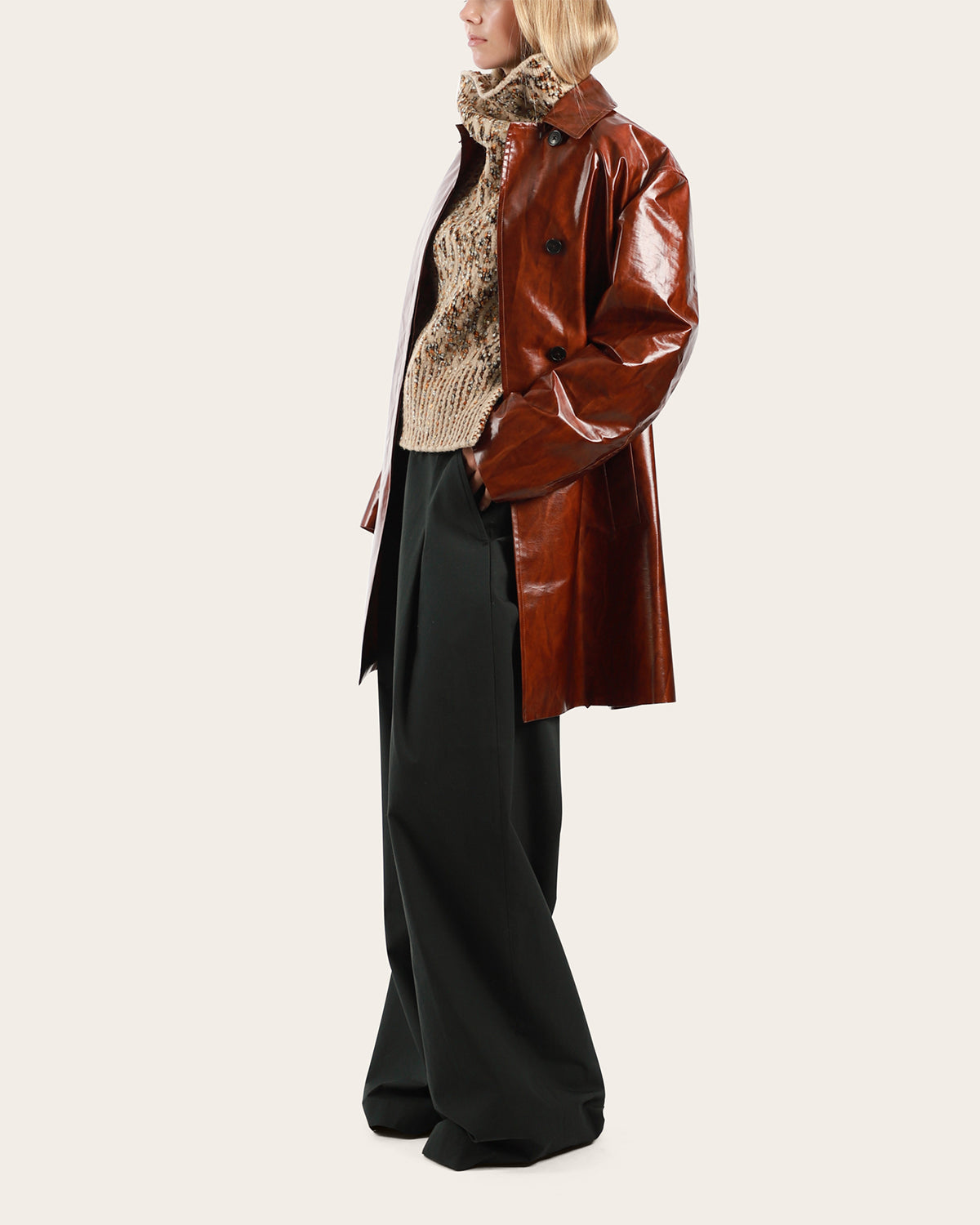 - Inverted pleats at front