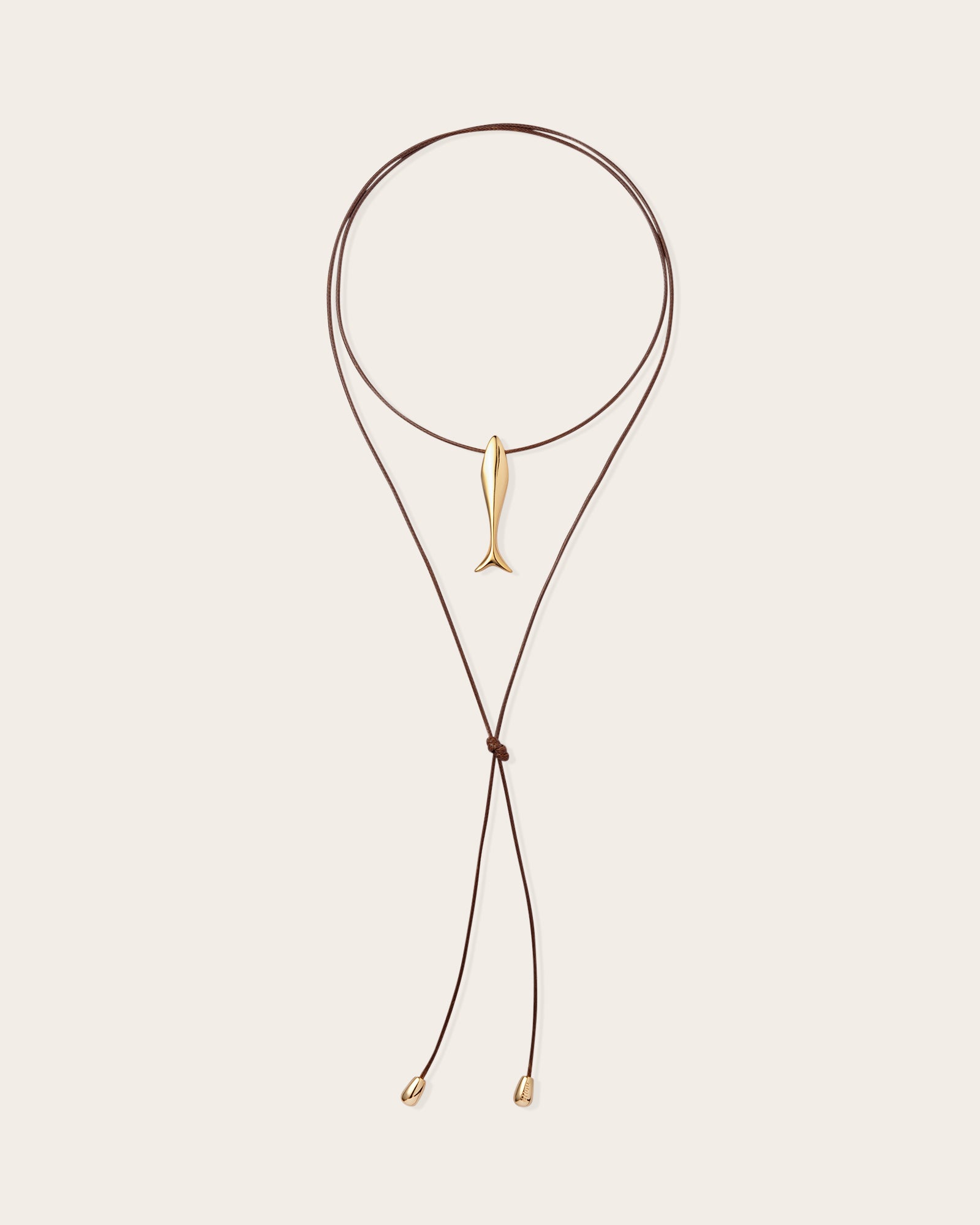 We imagined this piece as something discovered rather than made—a small keepsake you might slip into your pocket after a day by the water. The sculptural fish pendant is heavily gold-plated for a rich, enduring finish, suspended from a simple cord designed to be tied however feels right in the moment. Easy and expressive, it’s a piece that grows more personal the longer you wear it.