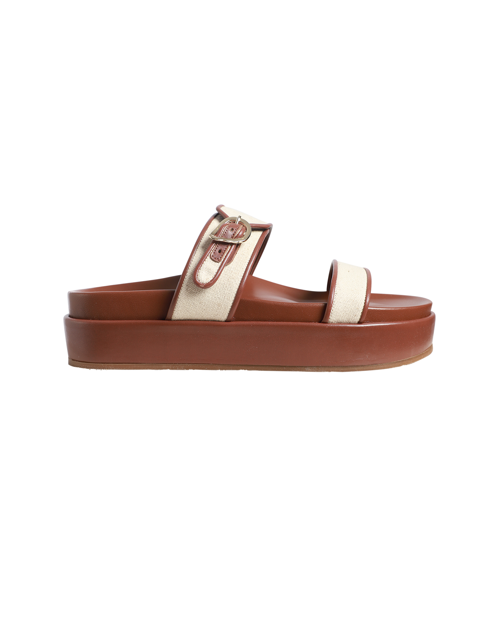 Tria features two simple straps with an adjustable buckle, in canvas with leather trim and a matching leather insole. Choose a bold or neutral shade. Set on our comfy Flatform sole for subtle lift.