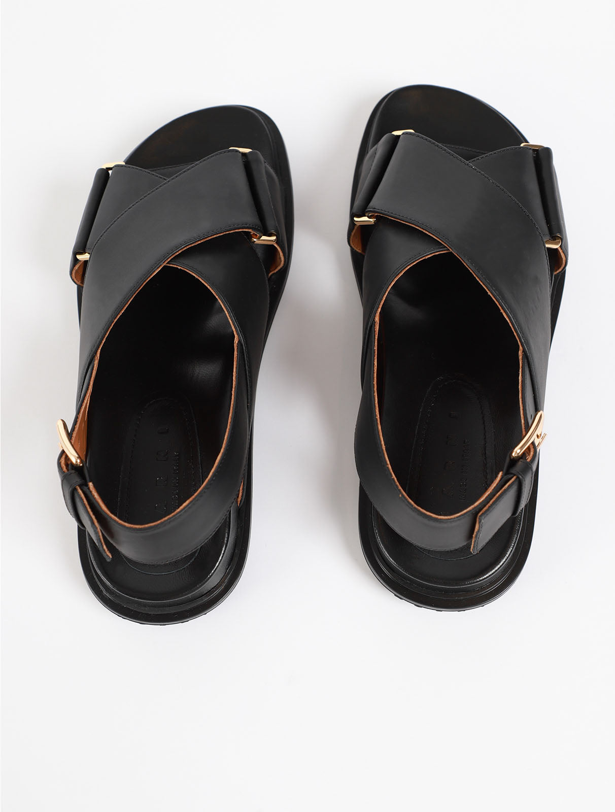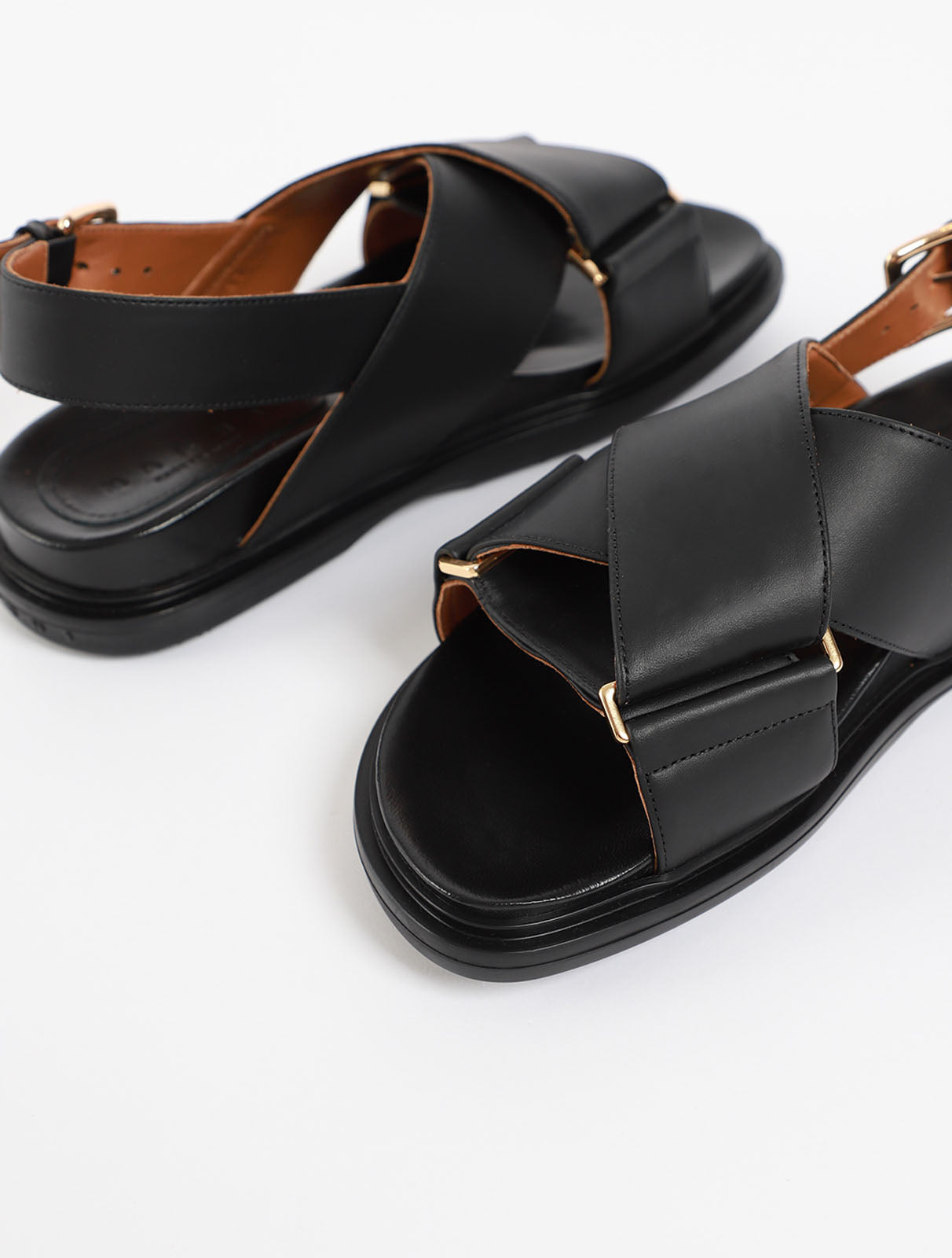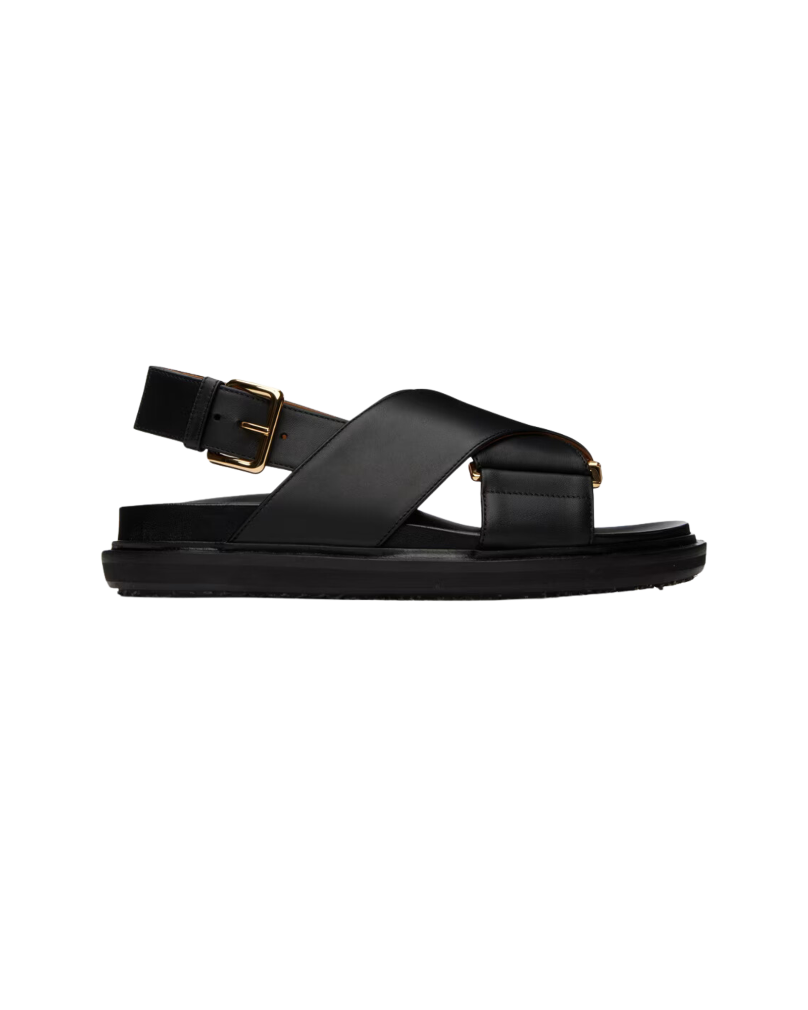 The Fussbett Sandal by Marni is an iconic style, with thick supportive straps and a signature cross-over design. They also feature a smooth calf-skin leather, including the footbed sole. Made in Italy.