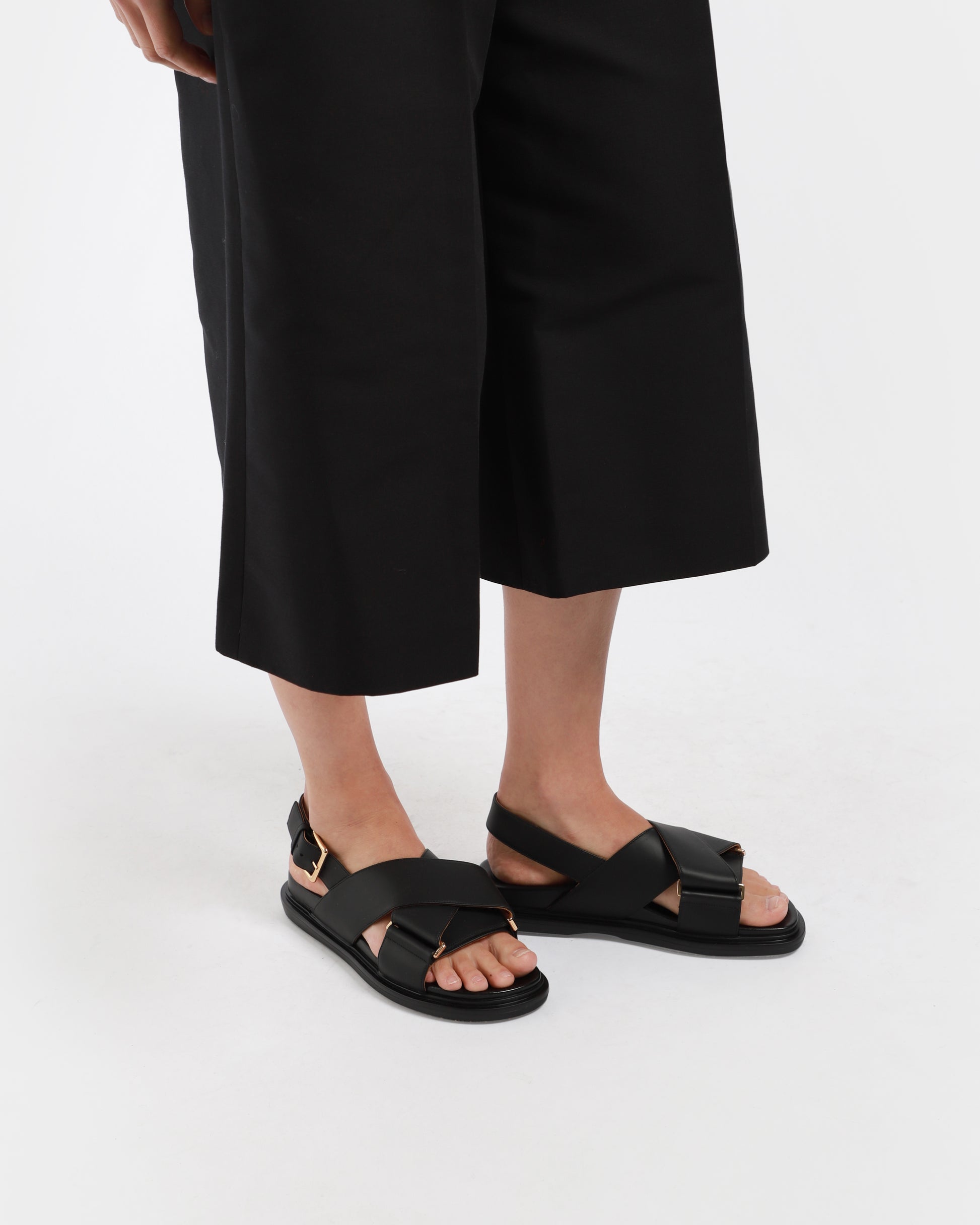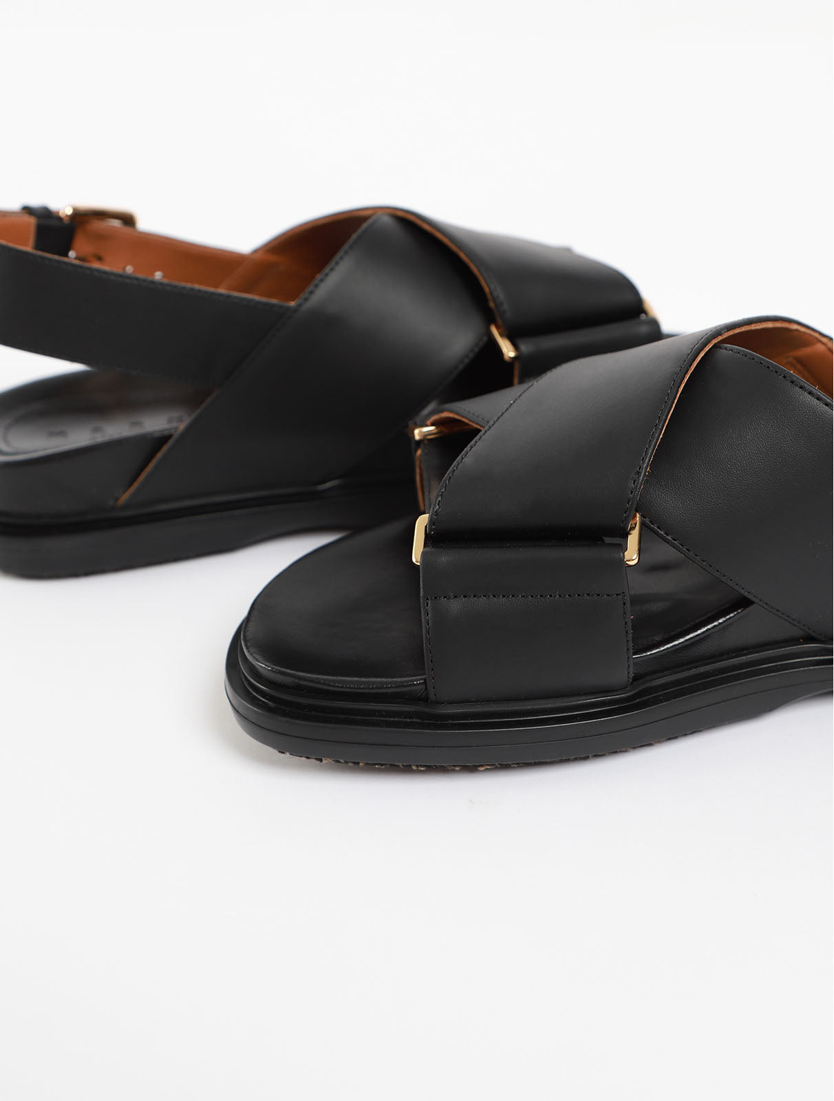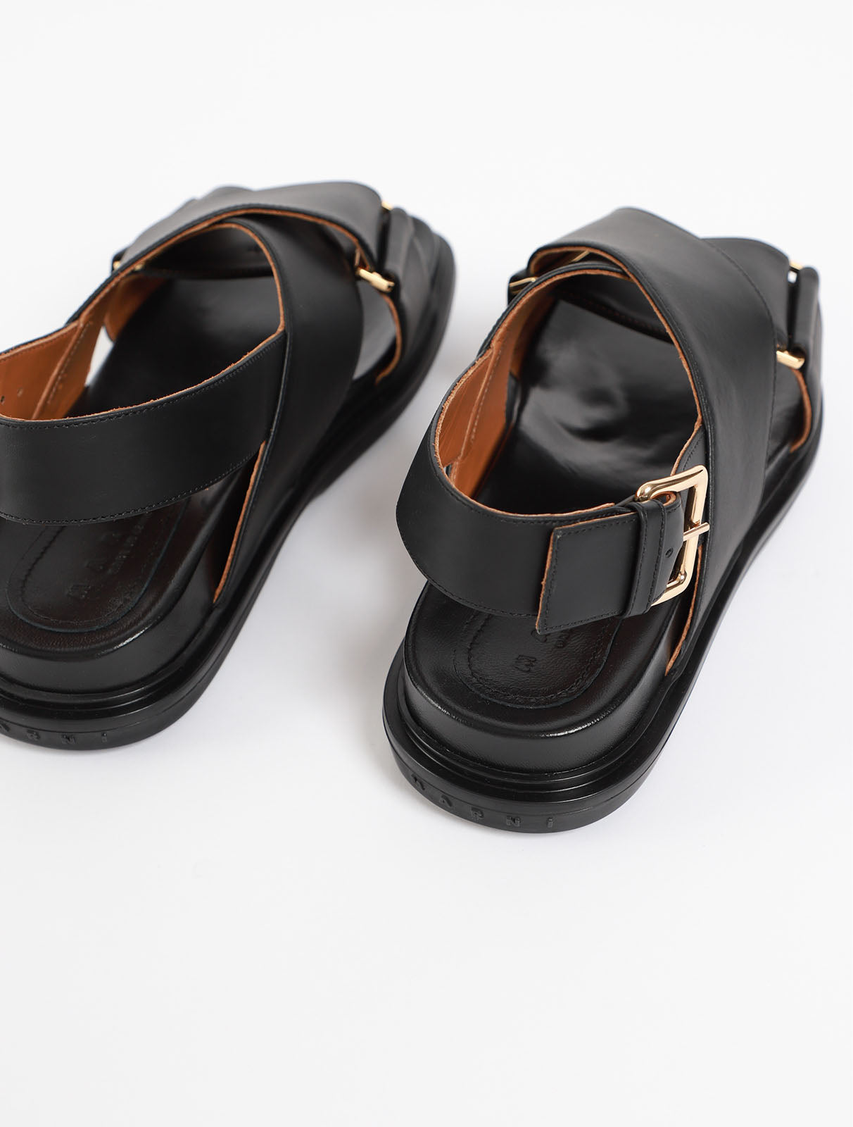 The Fussbett Sandal by Marni is an iconic style, with thick supportive straps and a signature cross-over design. They also feature a smooth calf-skin leather, including the footbed sole. Made in Italy.