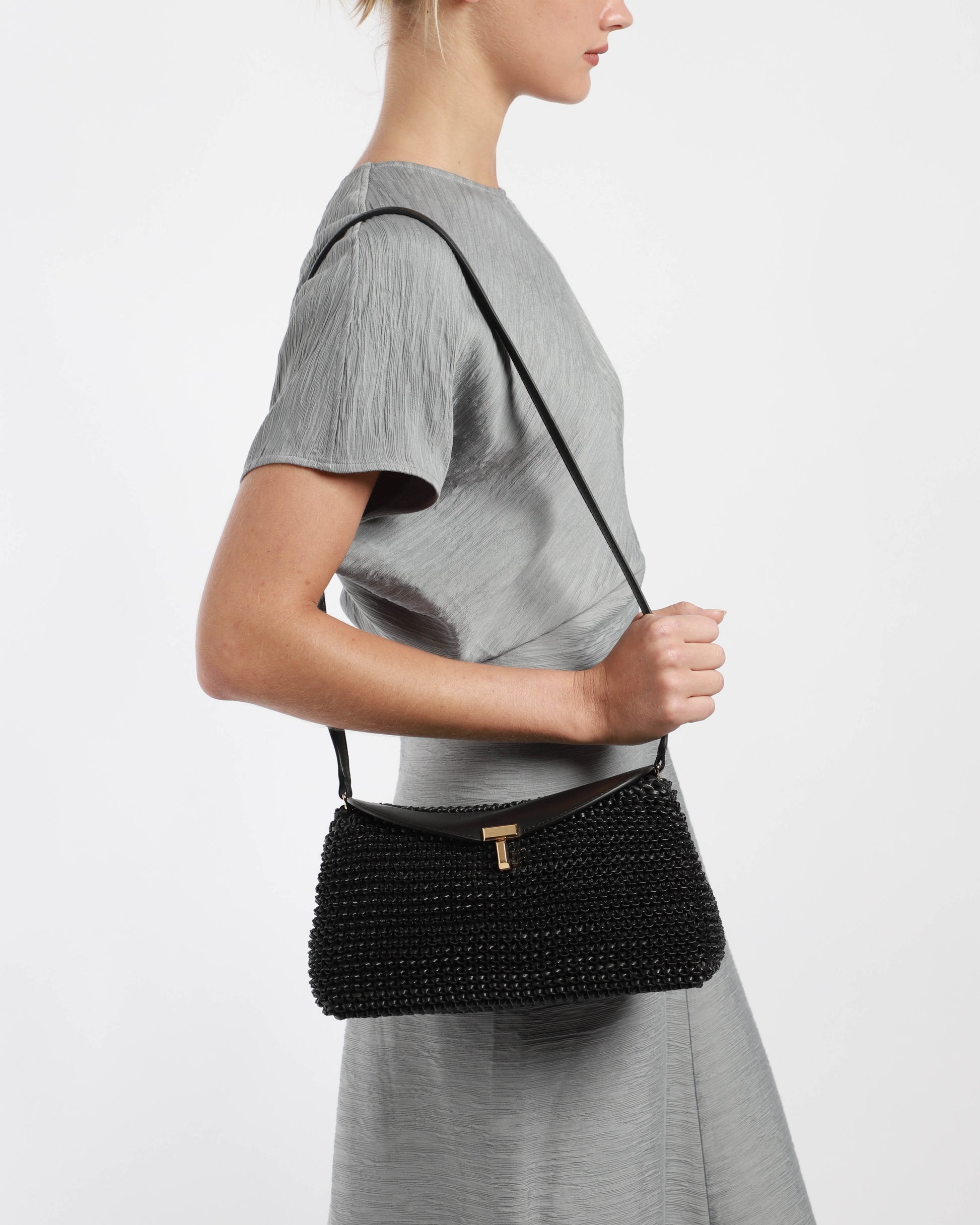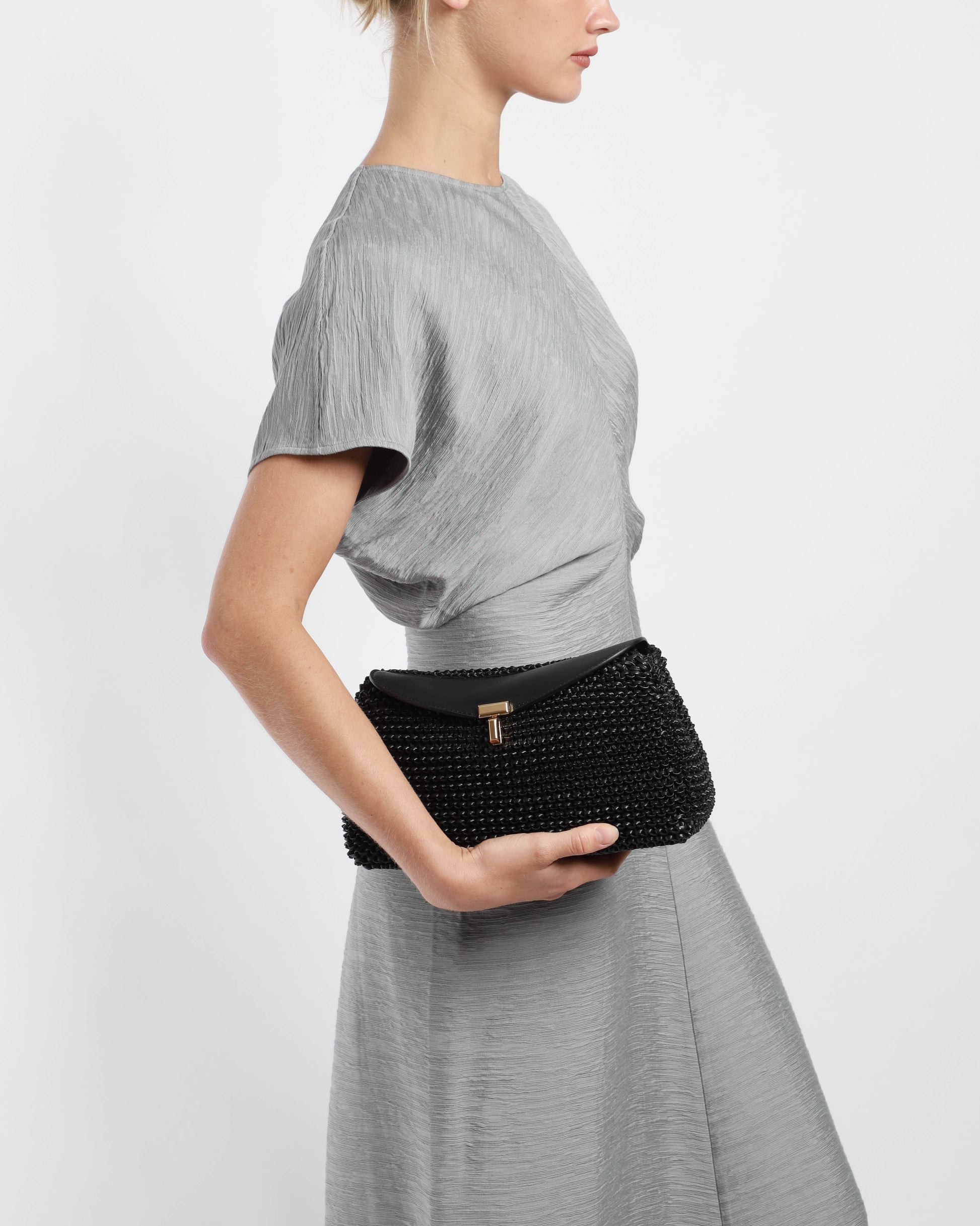 T-Lock Woven-Leather Clutch
