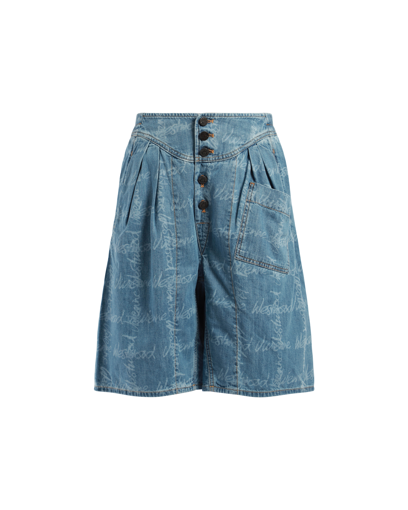 The Romario Bermuda shorts feature embossed orb rivet buttons, a yoke-style waistband, and pleat detailing at the front. The design revives the hand-drawn Vivienne Westwood Signature tartan, originally introduced in the Autumn-Winter 2005 Red Label collection.