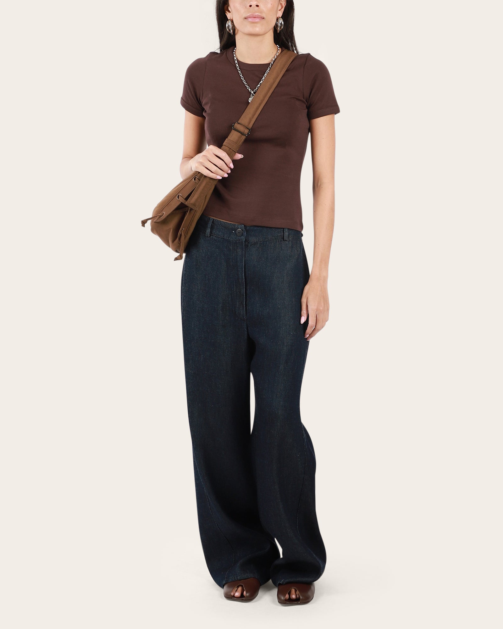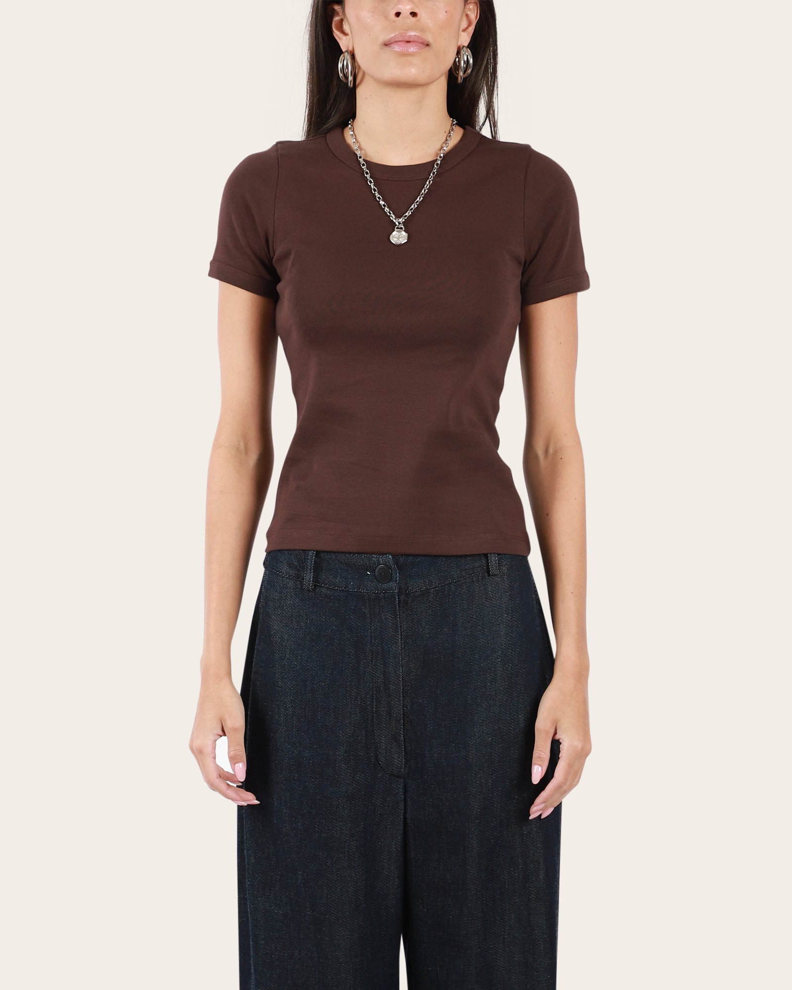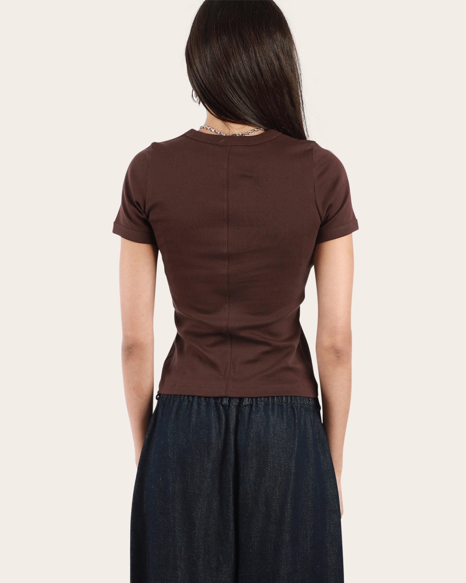 • This fitted tee features extended short sleeves, refined round bindings, and a double-stitched cut-off seam at the back. Made from soft, medium-weight organic cotton rib, it layers effortlessly under a shirt.