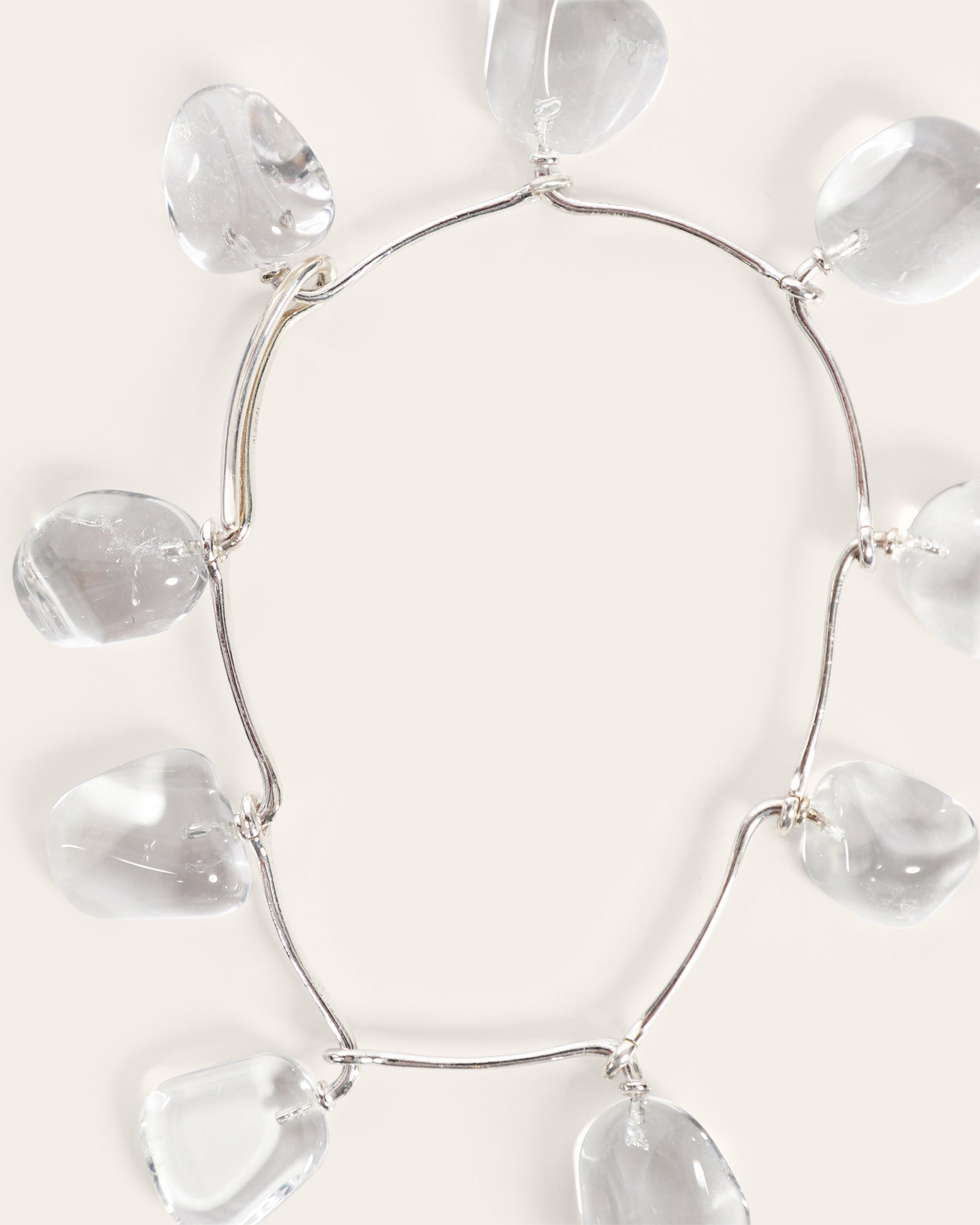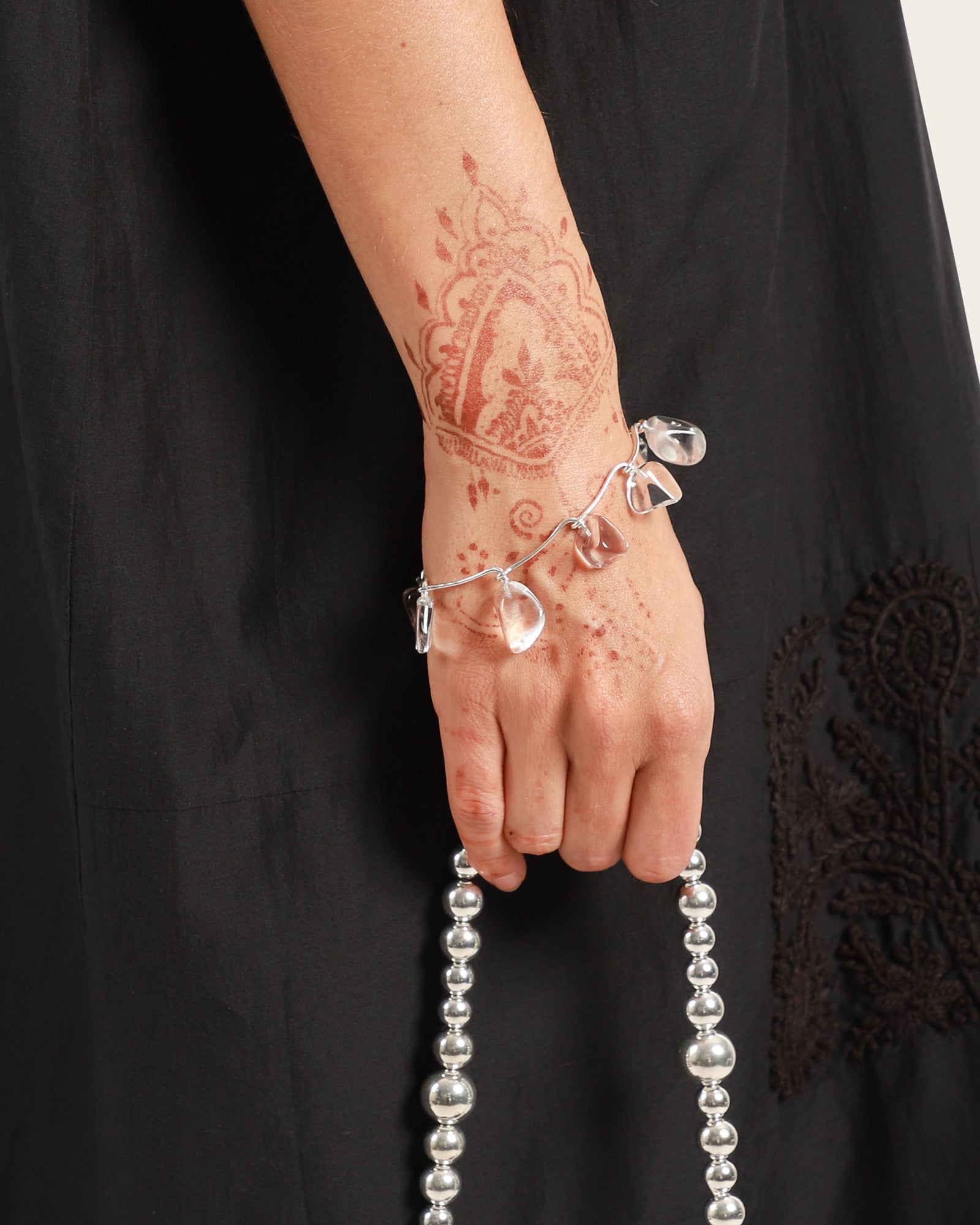 Handcrafted sterling silver links, punctuated with smooth crystal pebbles, create a bracelet that moves playfully around the wrist like a daisy chain. A versatile piece for everything from elegant summer nights to brisk winter mornings. Please note earrings may vary slightly in colour and shape due to stones being natural.