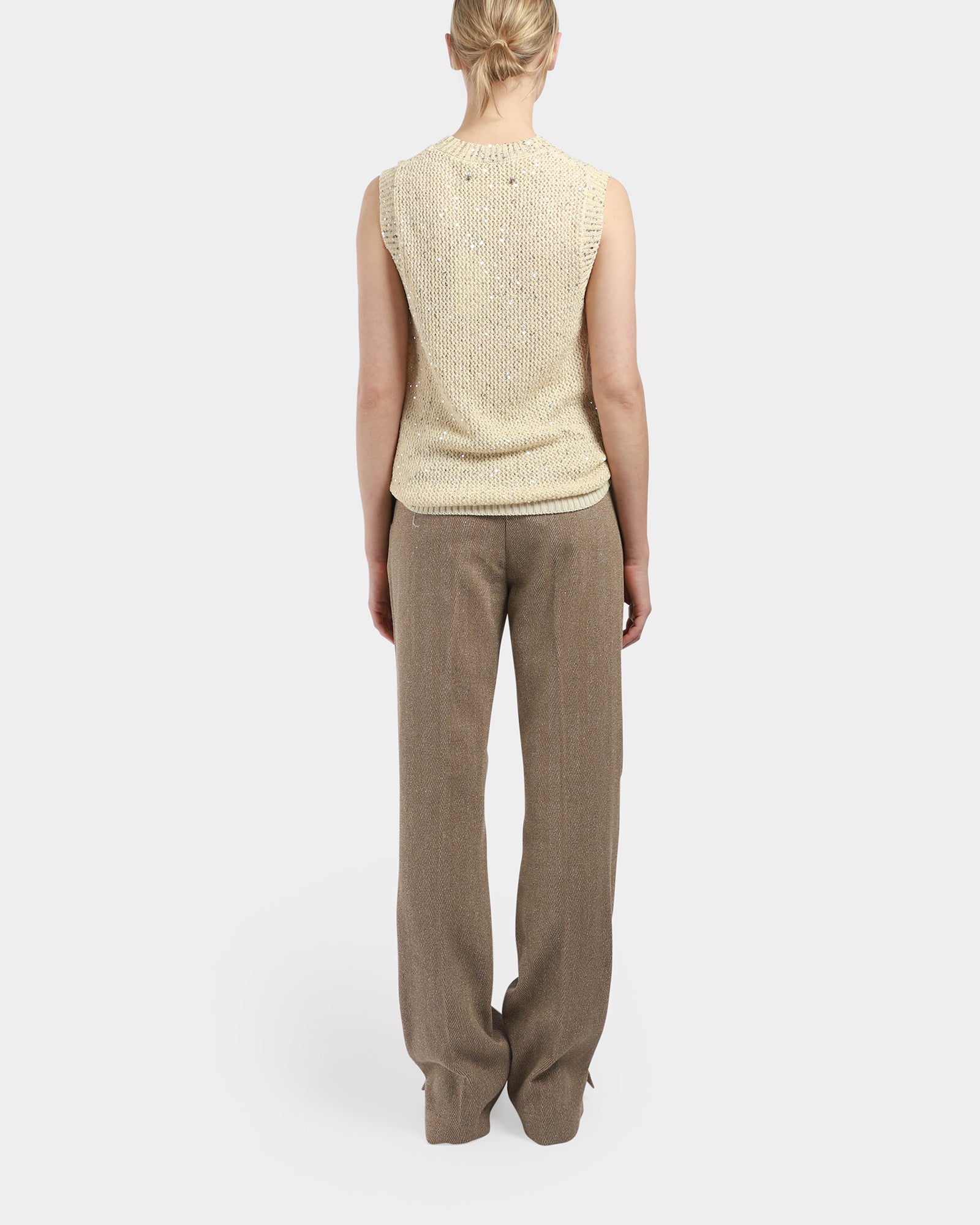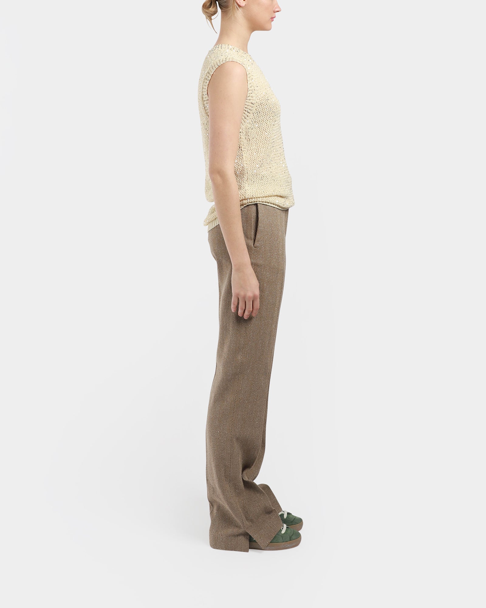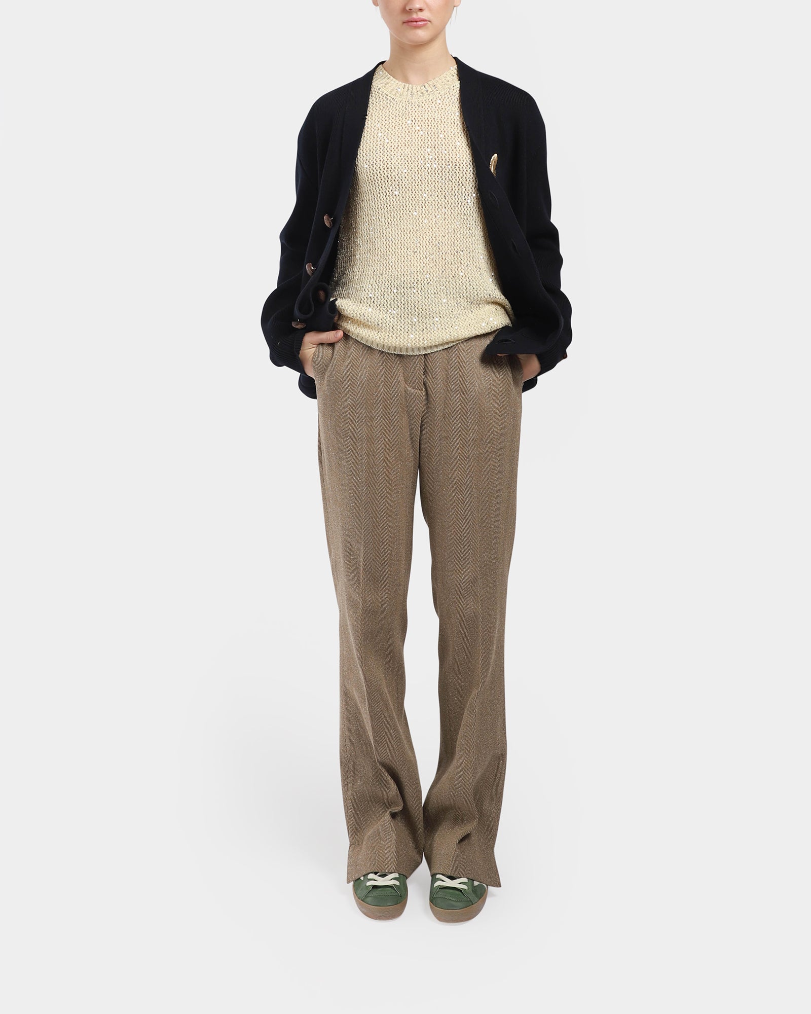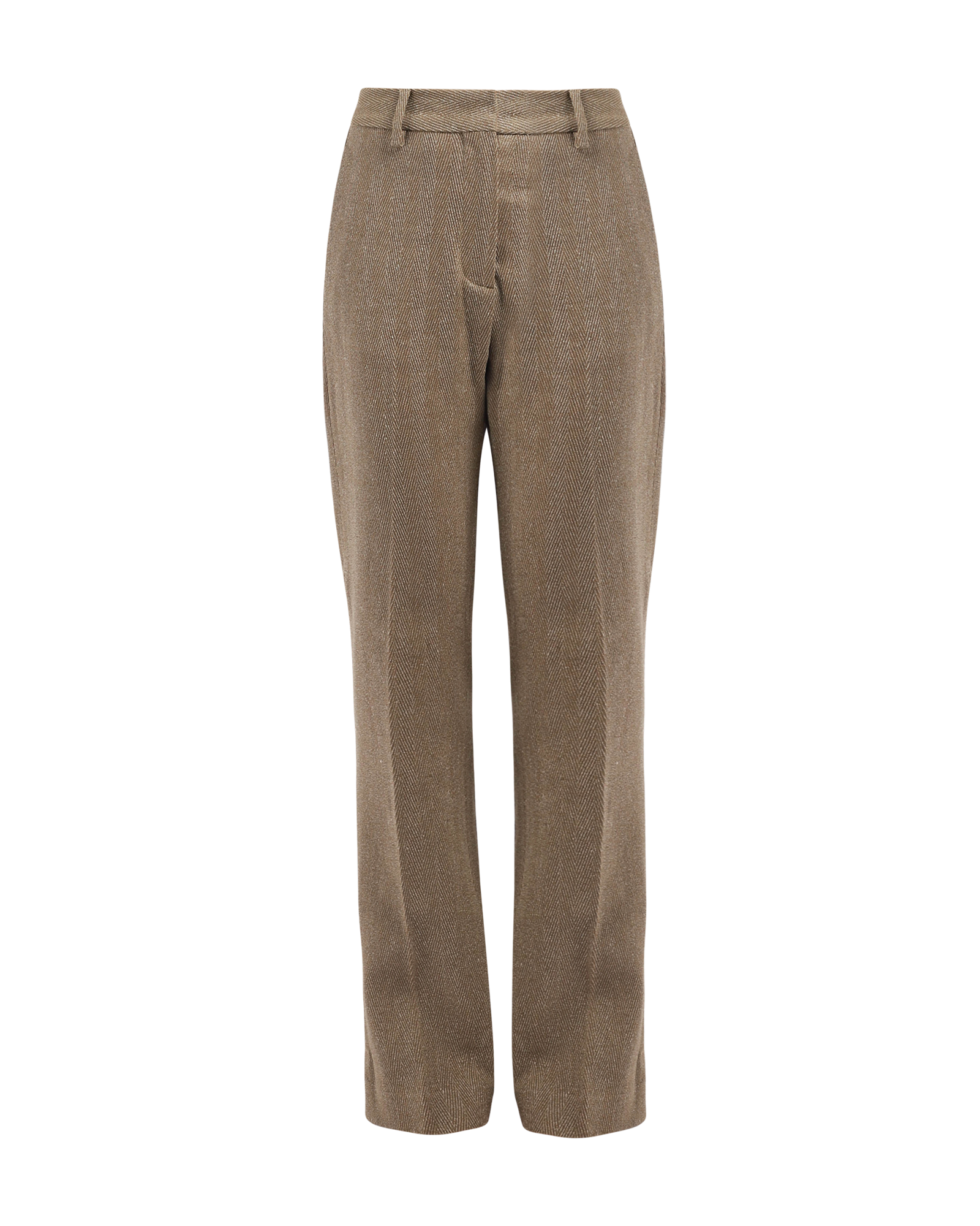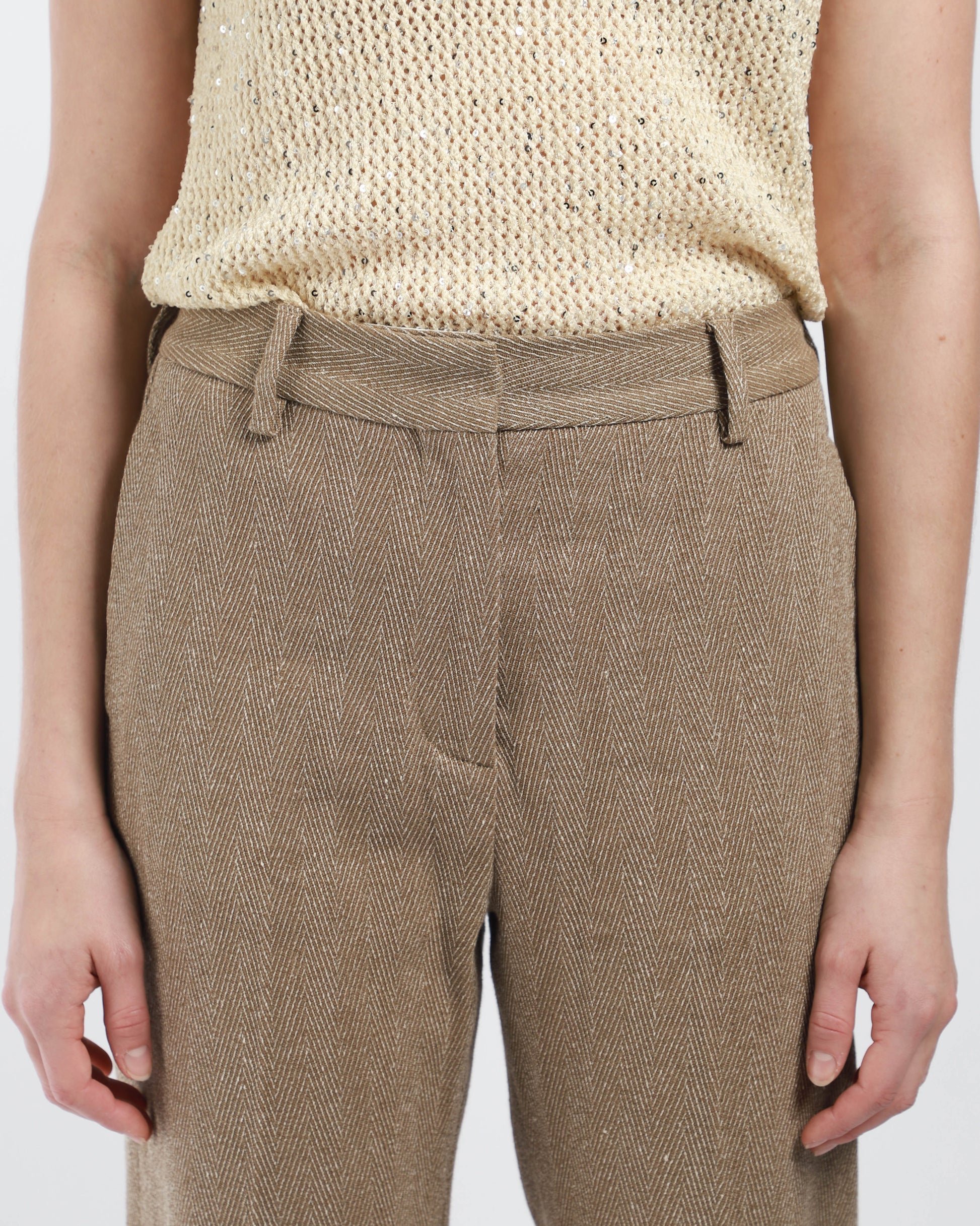 These sand herringbone linen-blend pants have a relaxed fit, two pockets, and a double star on the back. Made in Italy.