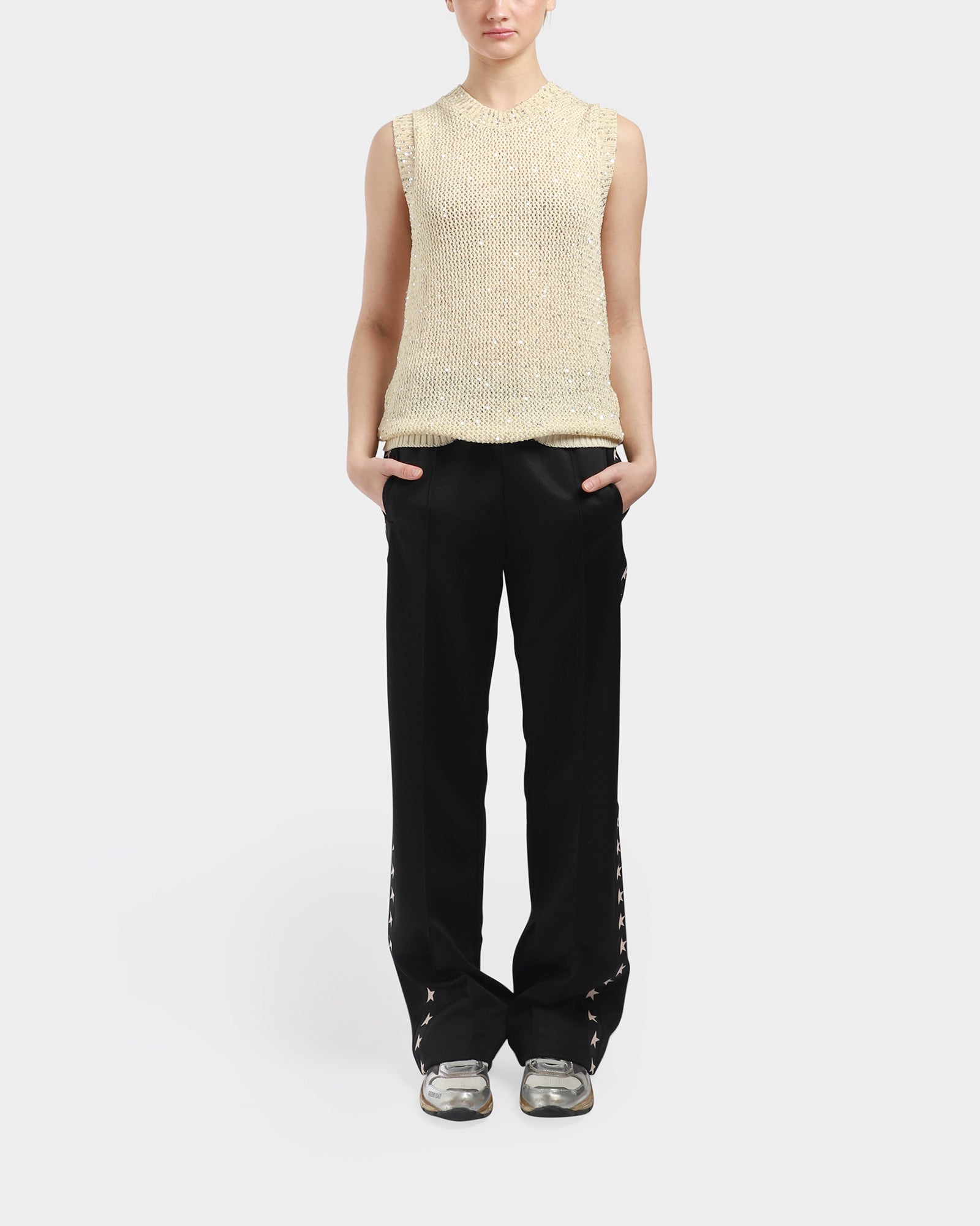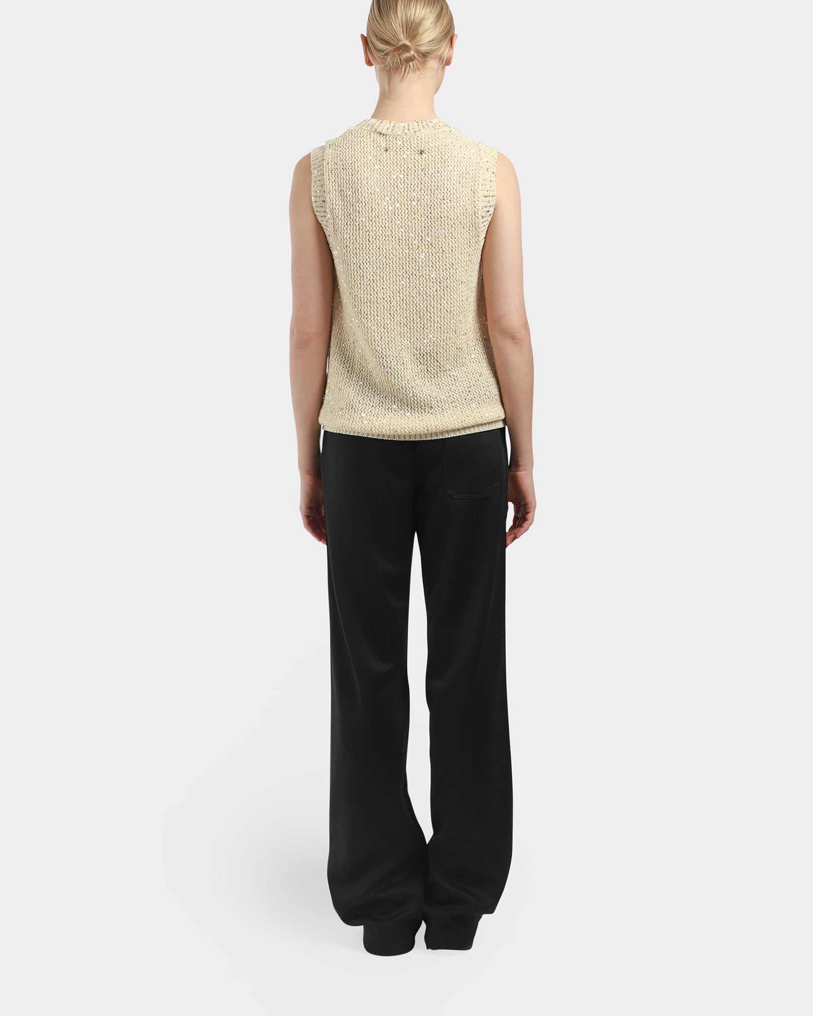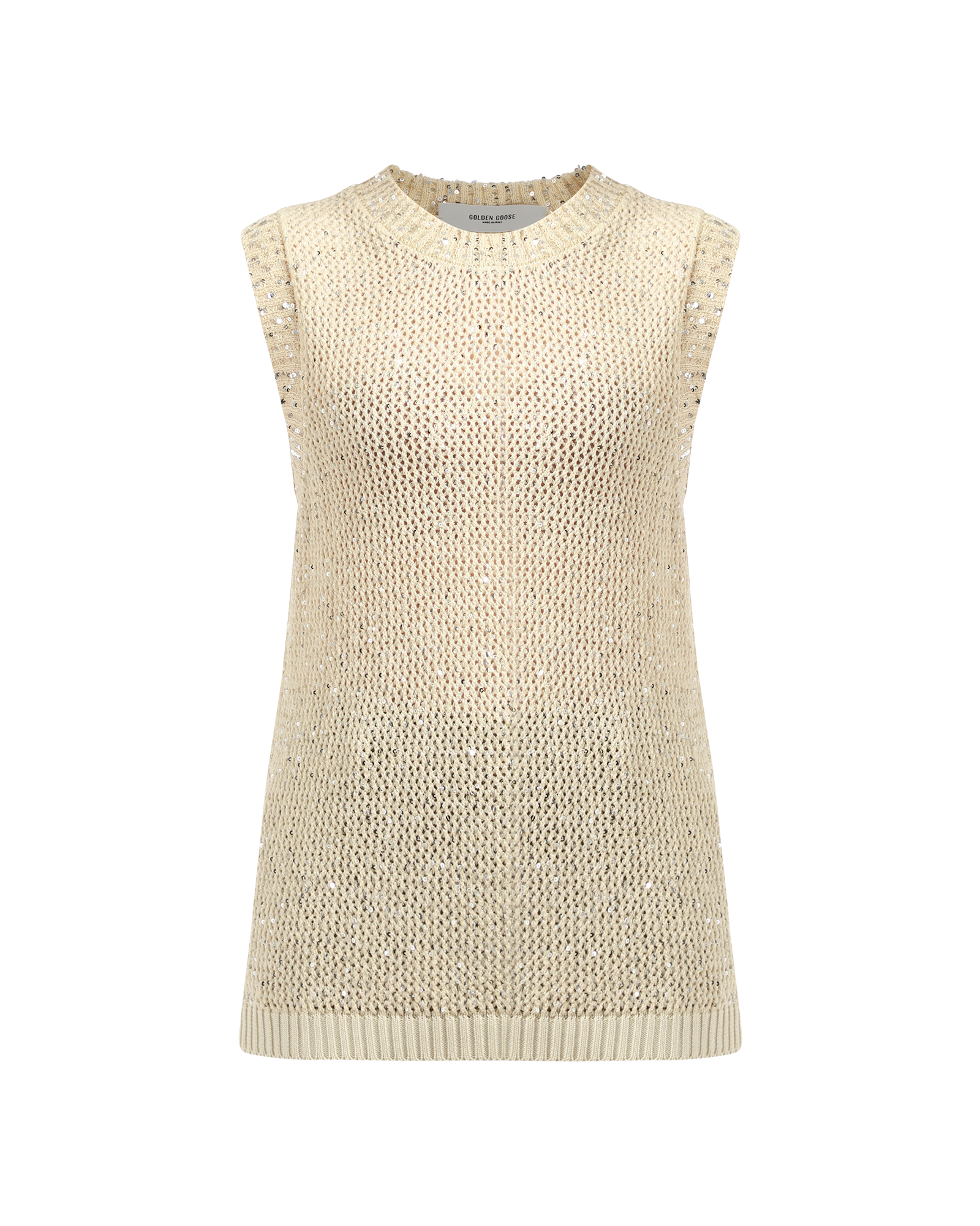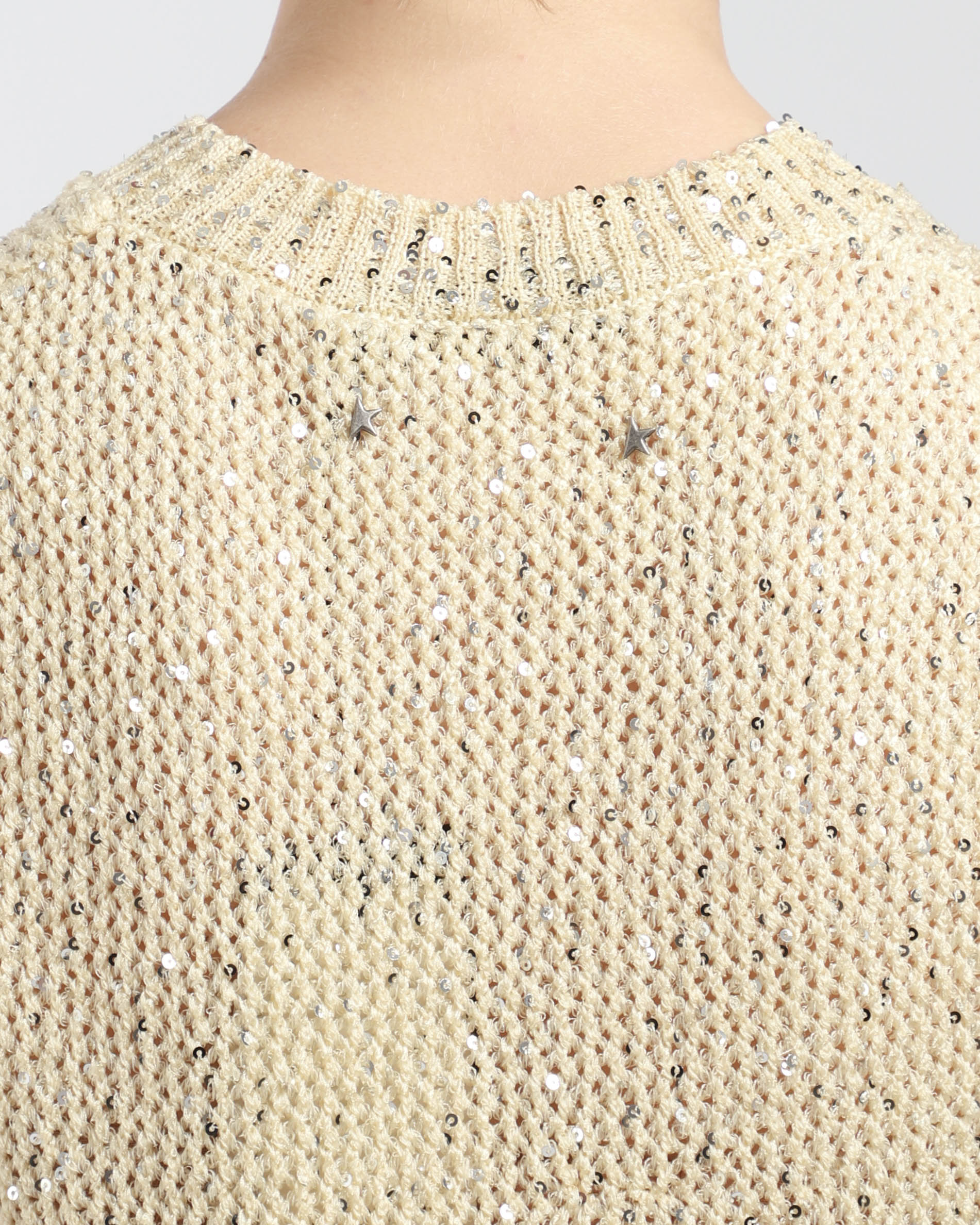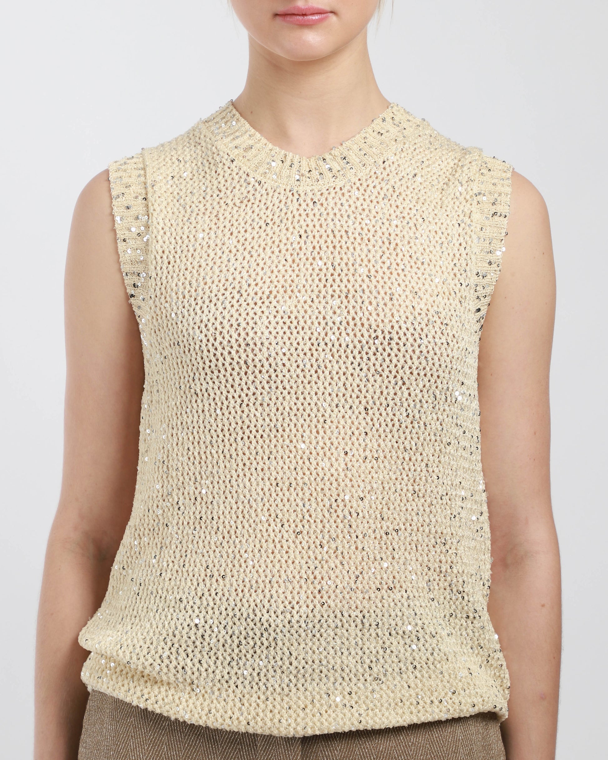 This regular-fit mesh knit top features outer sequins for comfort and a crew neckline with ribbed cotton trim. Made in Italy.