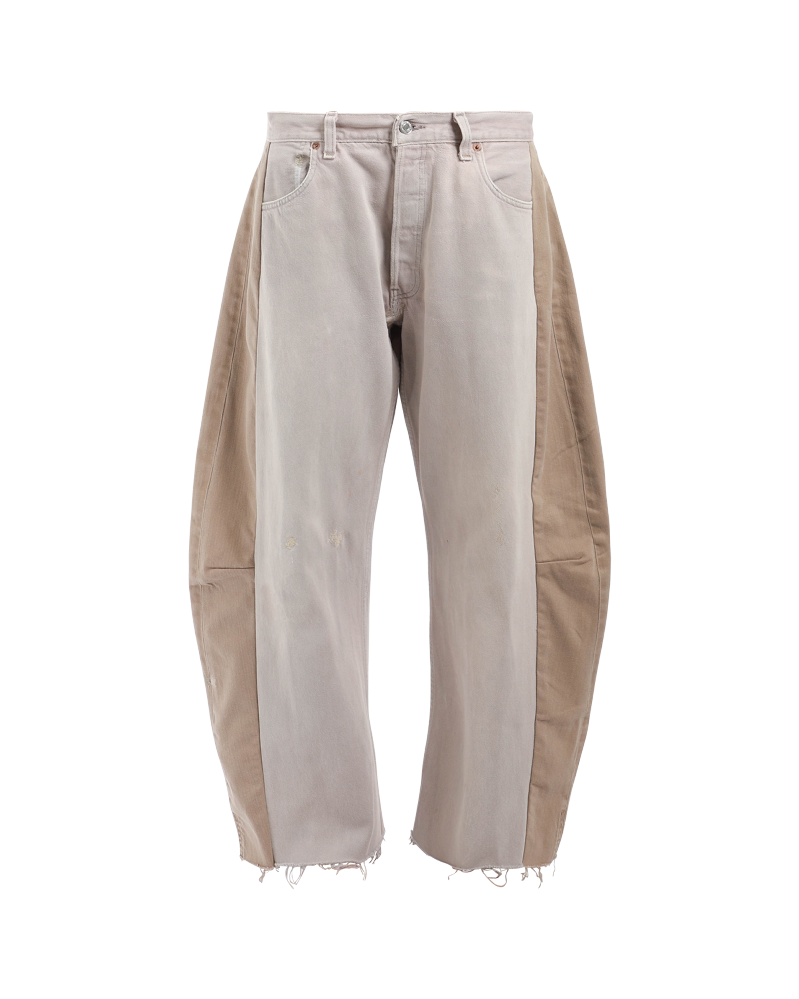 B Sides Vintage Lasso jeans in authentic Levi's® cotton denim fabric, designed for a slouchy fit, featuring a relaxed waist placement, and kinked leg shape. Each pair is one-of-a-kind and will vary in hue, caste, colour and fade pattern, made with authentic vintage Levi's 501's, collected in the American West.