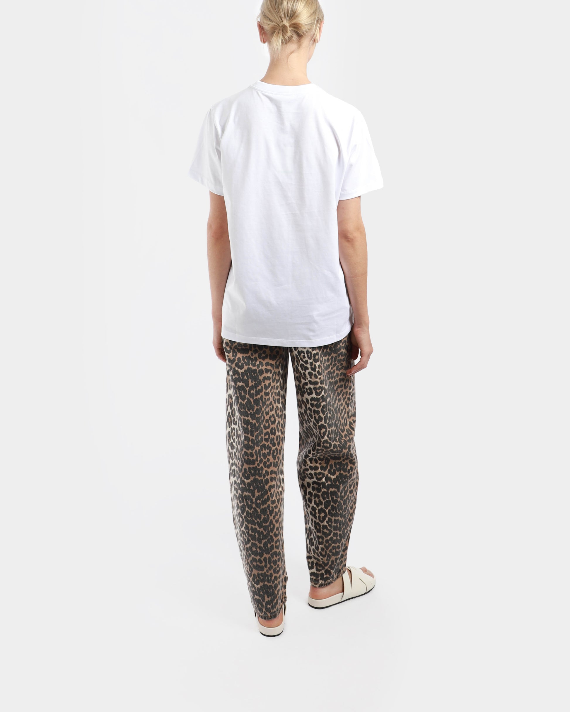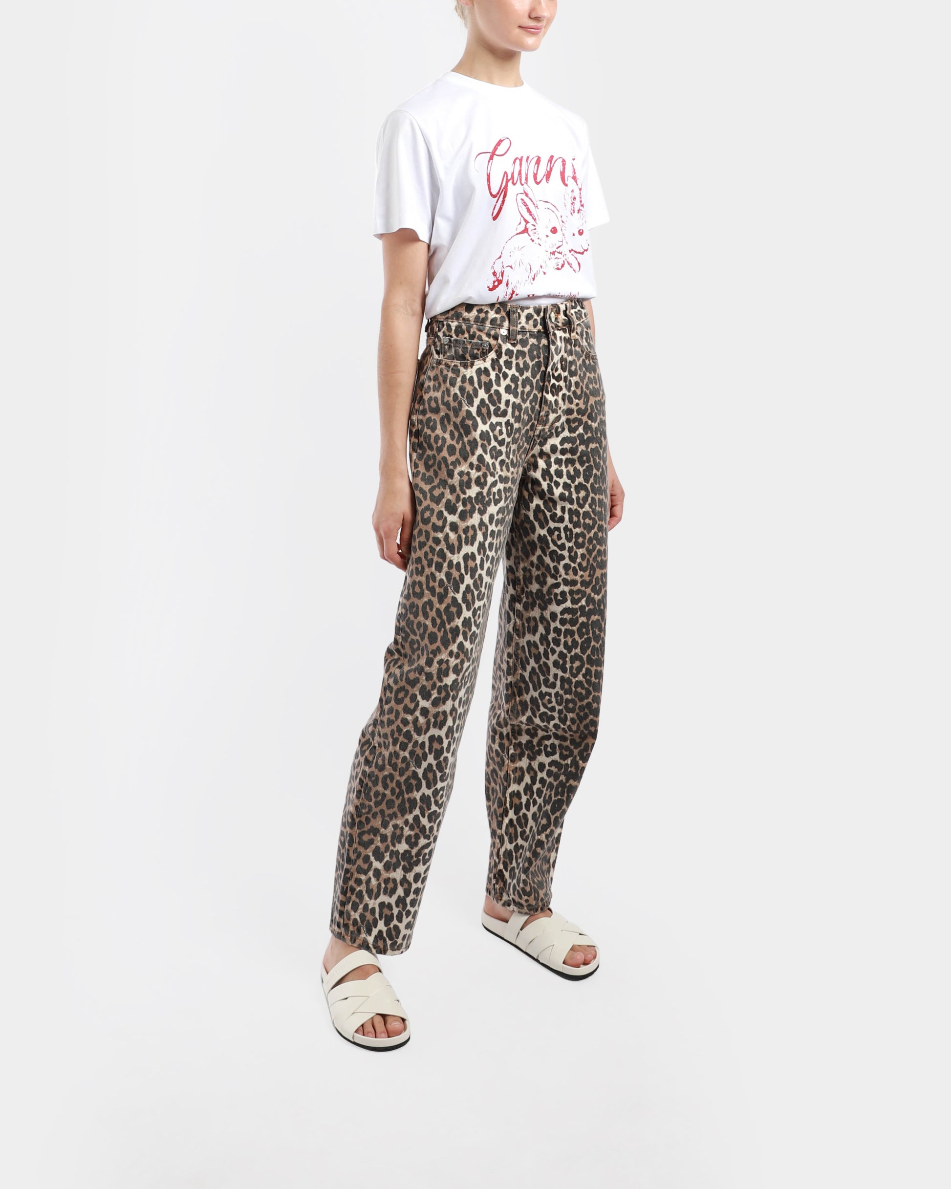 These leopard print jeans have a high waistline silhouette, featuring a tapered leg style, a front button and zip fastening, a five pockets design and belt loops. It has a detail brand logo patch to the rear.
