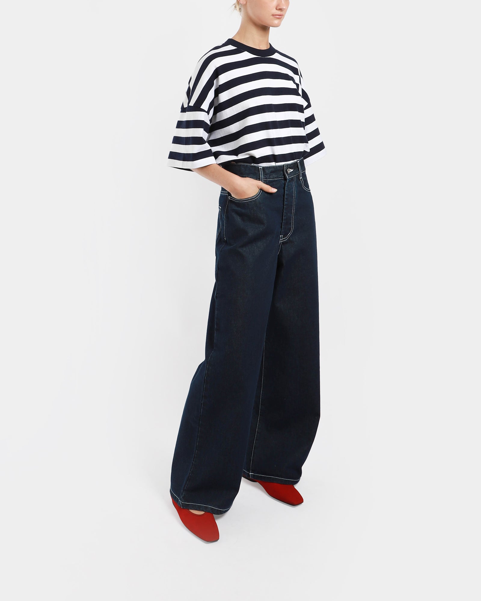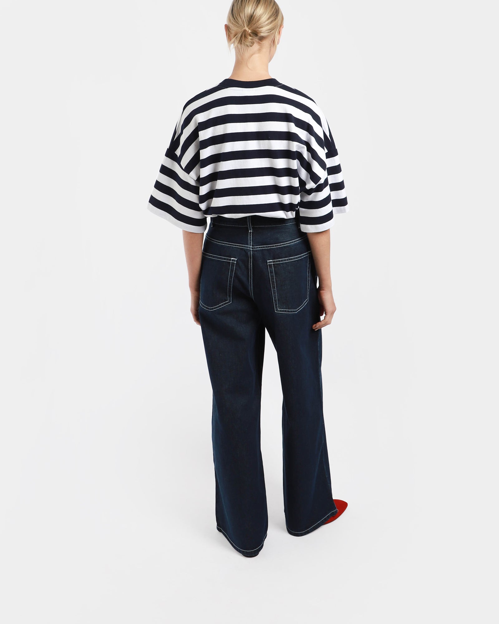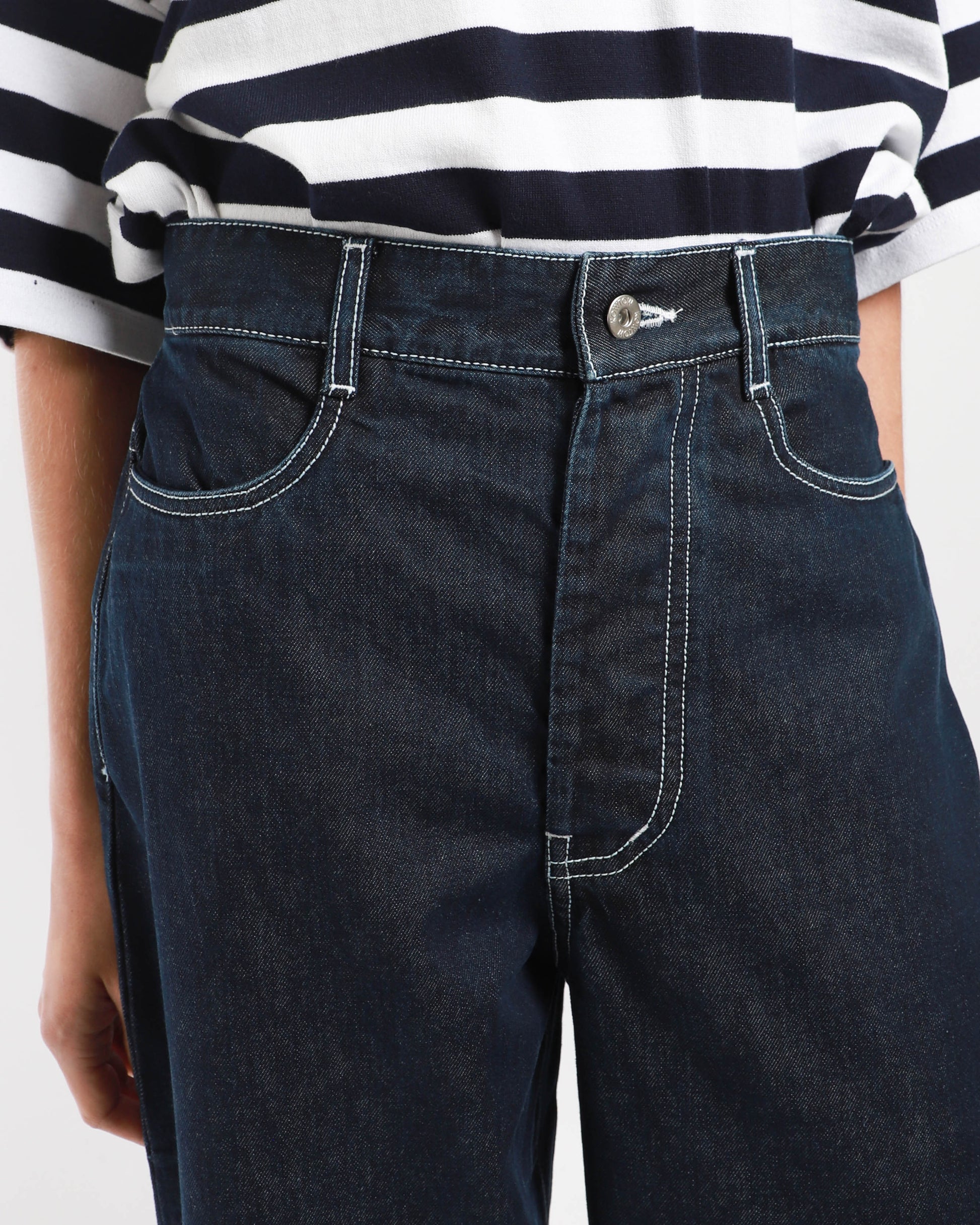 These flattering jeans, made from heavyweight organic cotton denim, offer a high-rise style with straight wide leg. Featuring a fixed waistband with belt loops, button fly to close, front and back pockets.