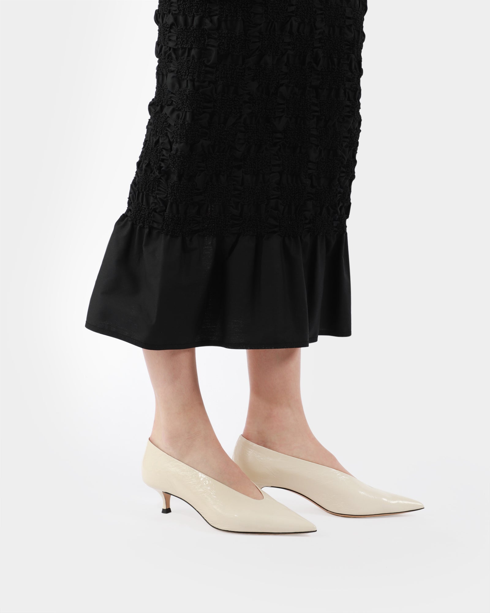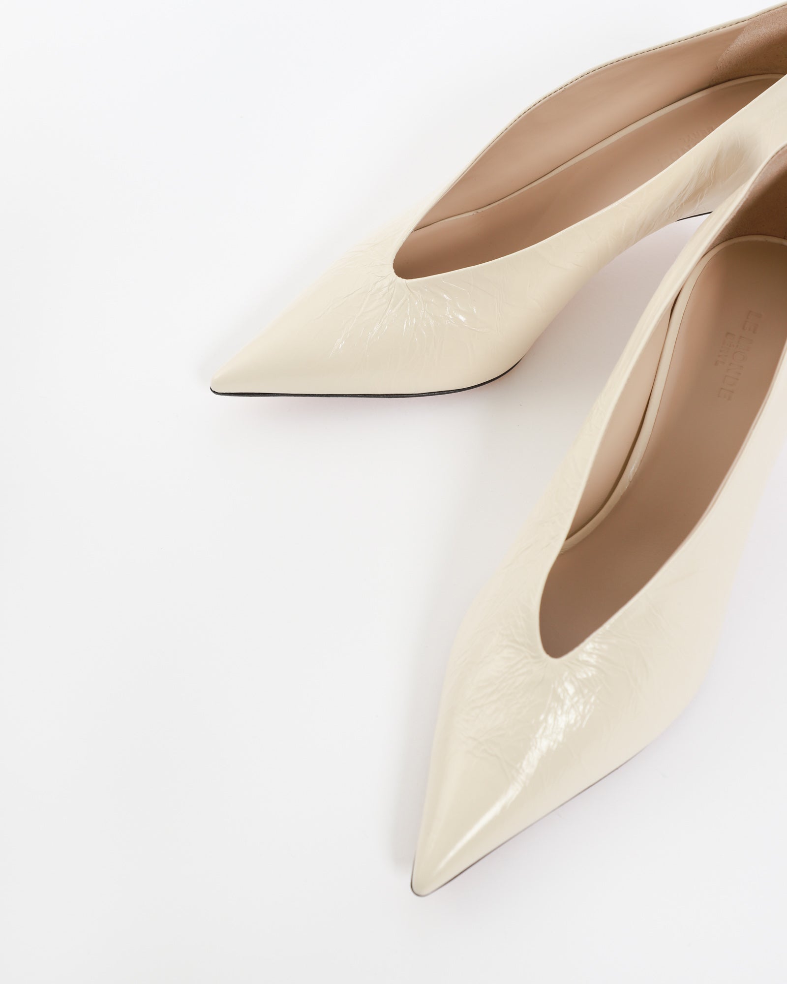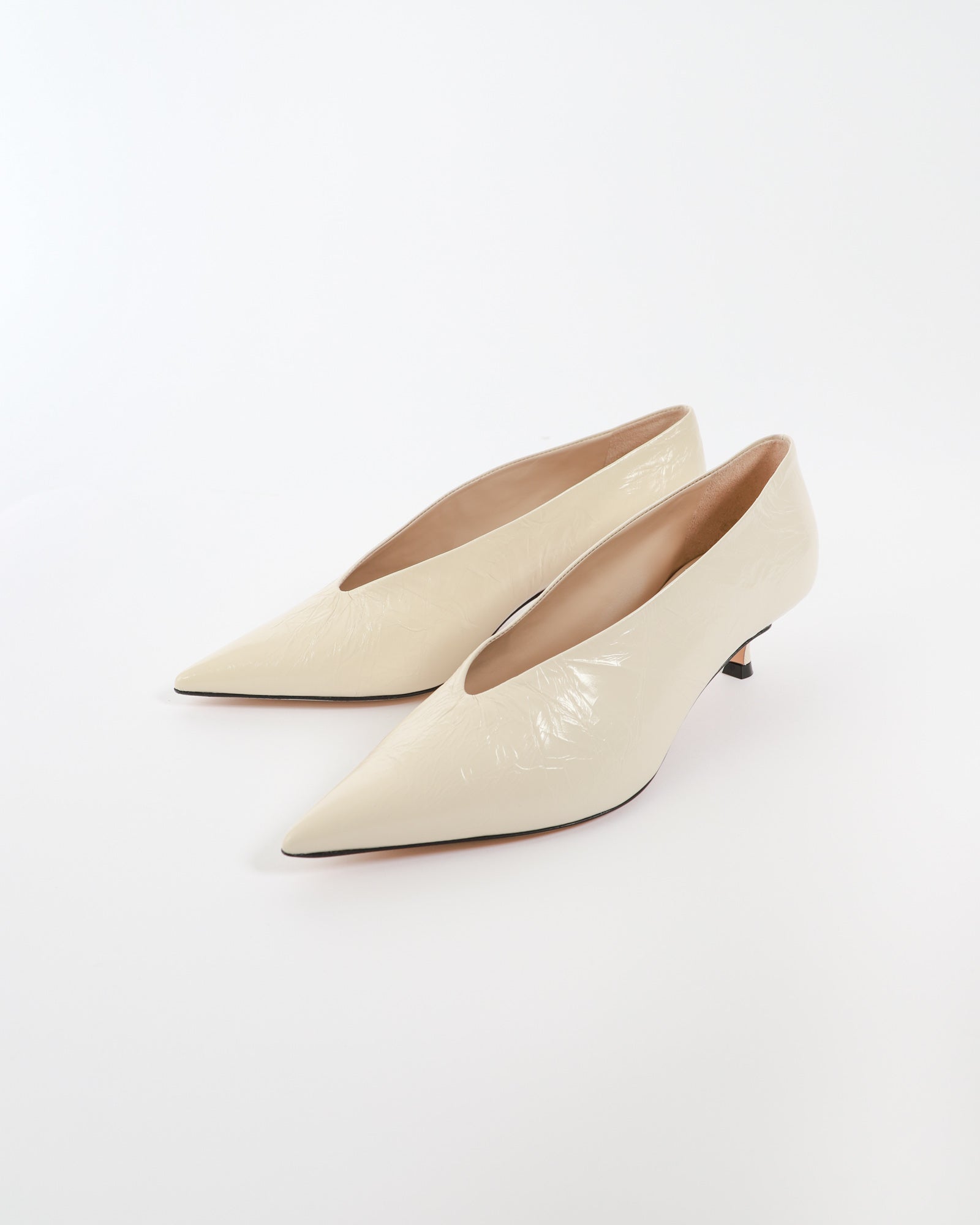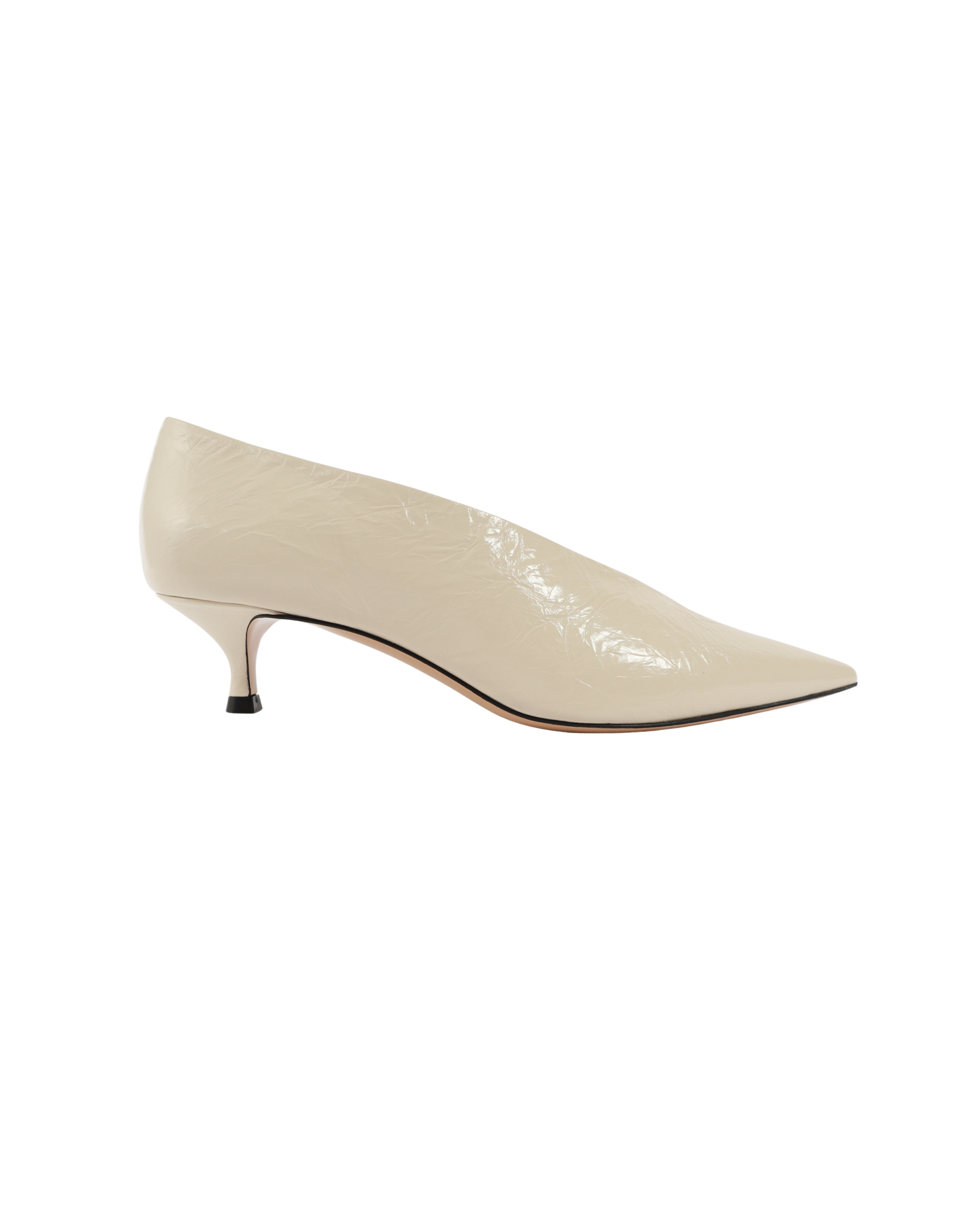 The Babouche Kitten Heel are a naplack leather heel with a pointed toe and are fitted with a cushioned calf-leather insole. Made in Italy.