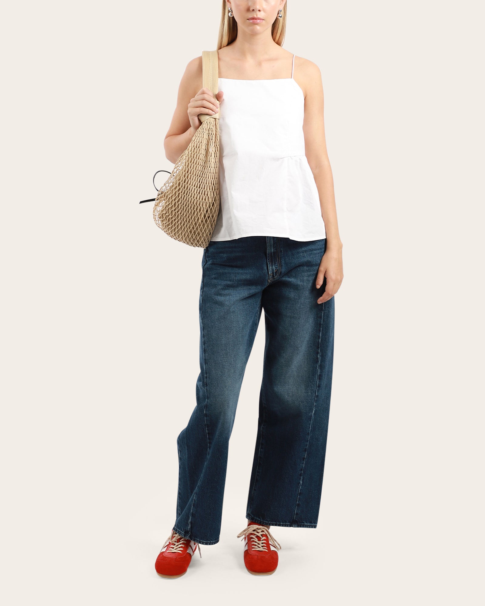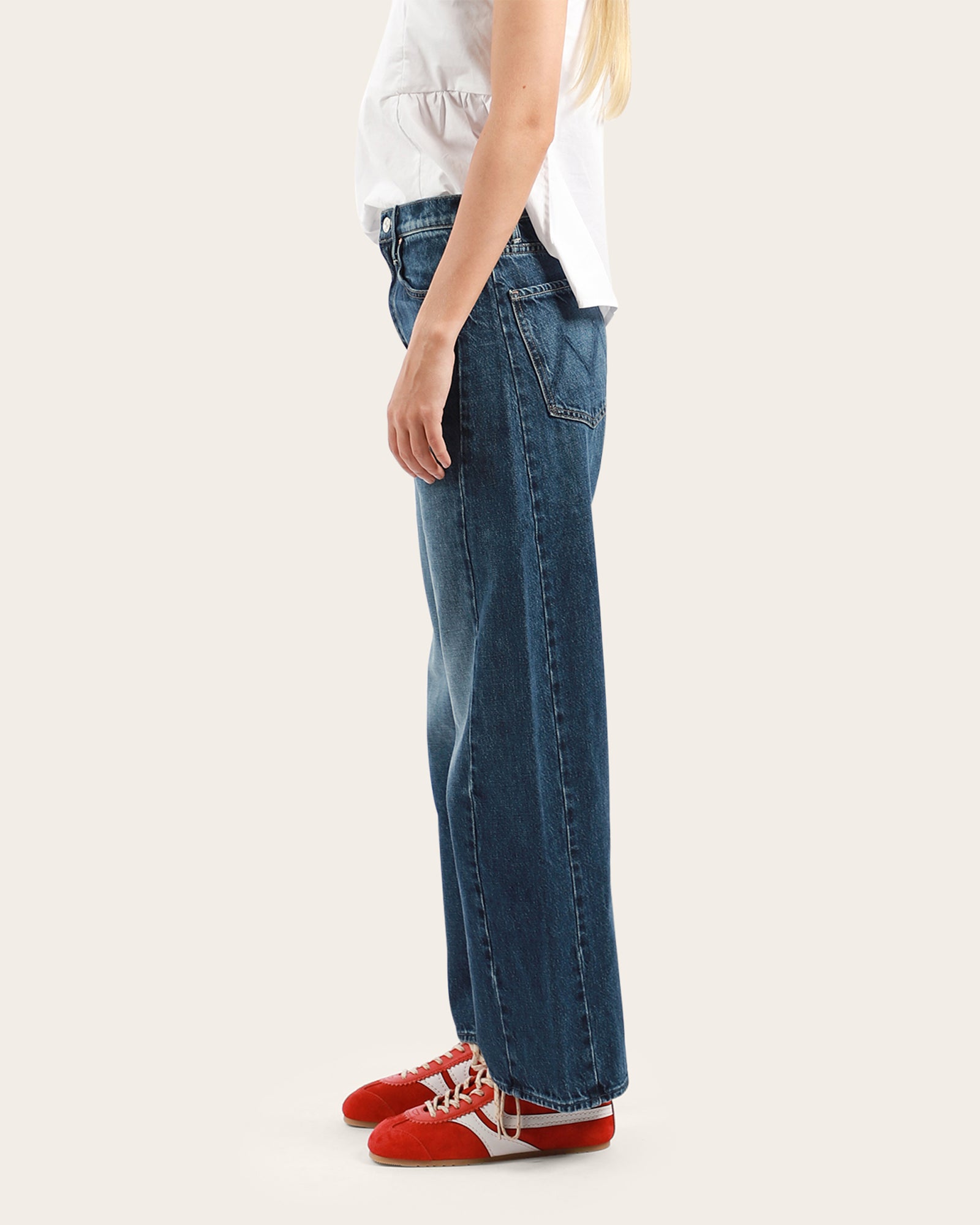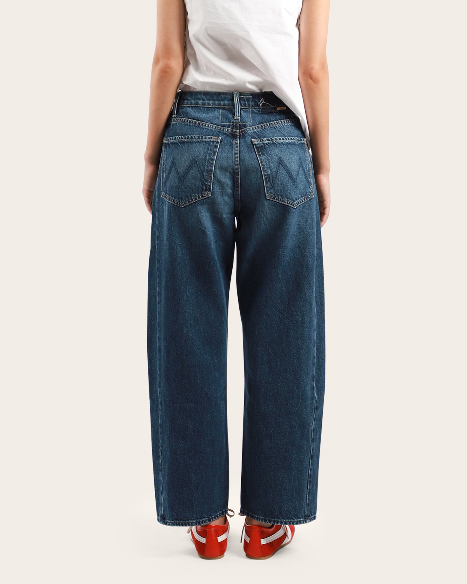 A high-waisted jean with a wide, curved leg, an ankle-length inseam and a clean hem. Did You Bring is a dark blue wash with whiskering and fading at the knees and are lovingly crafted in Los Angeles.