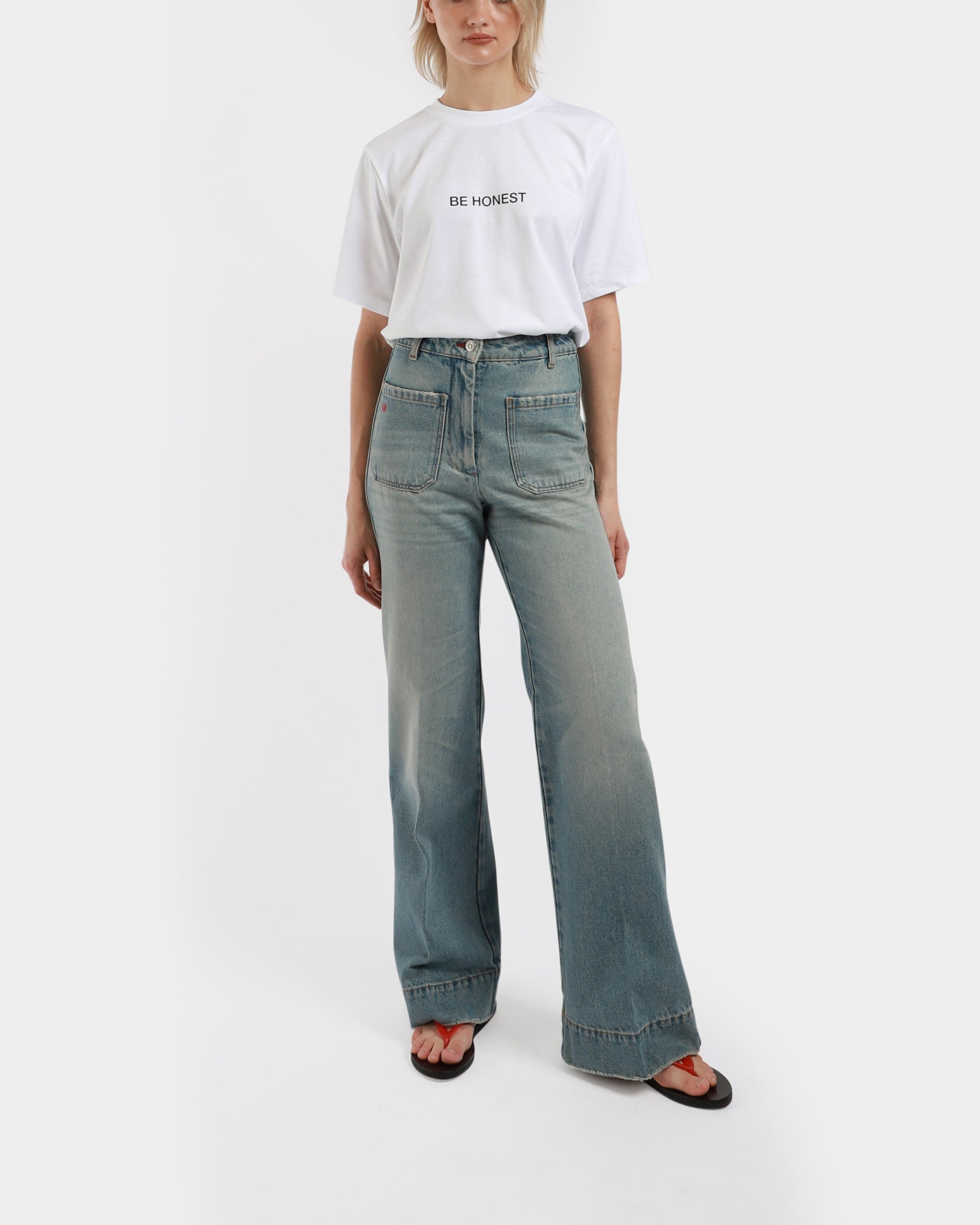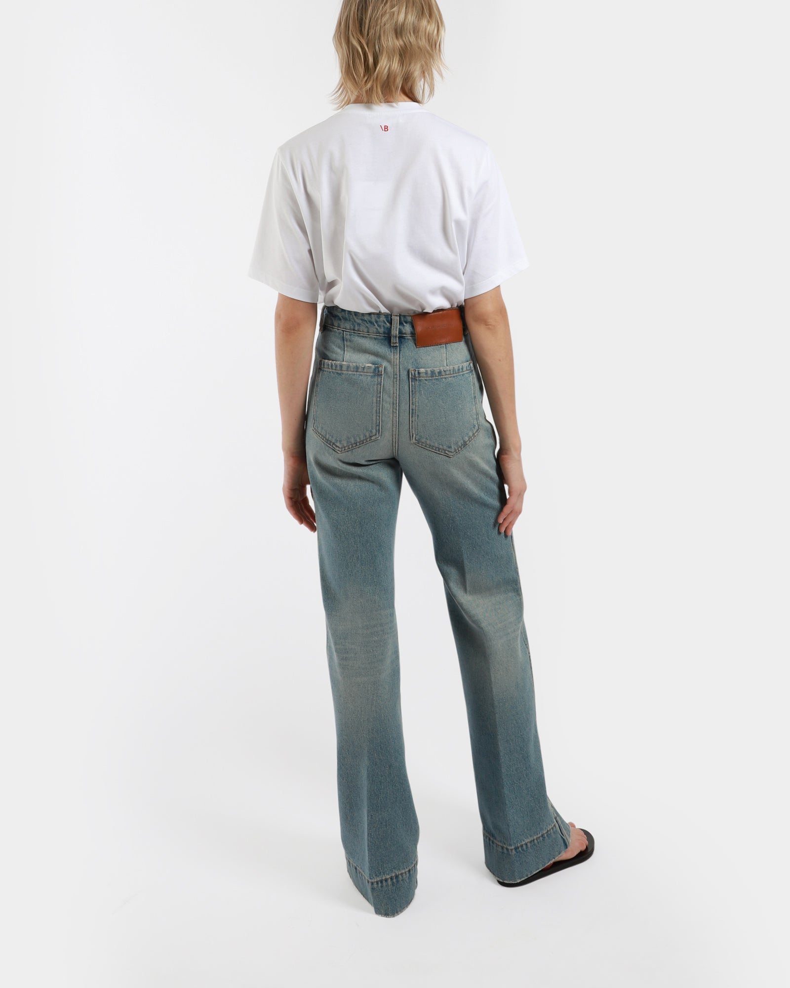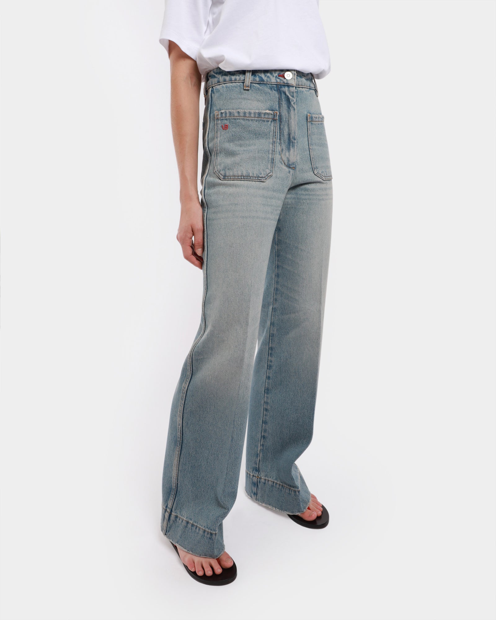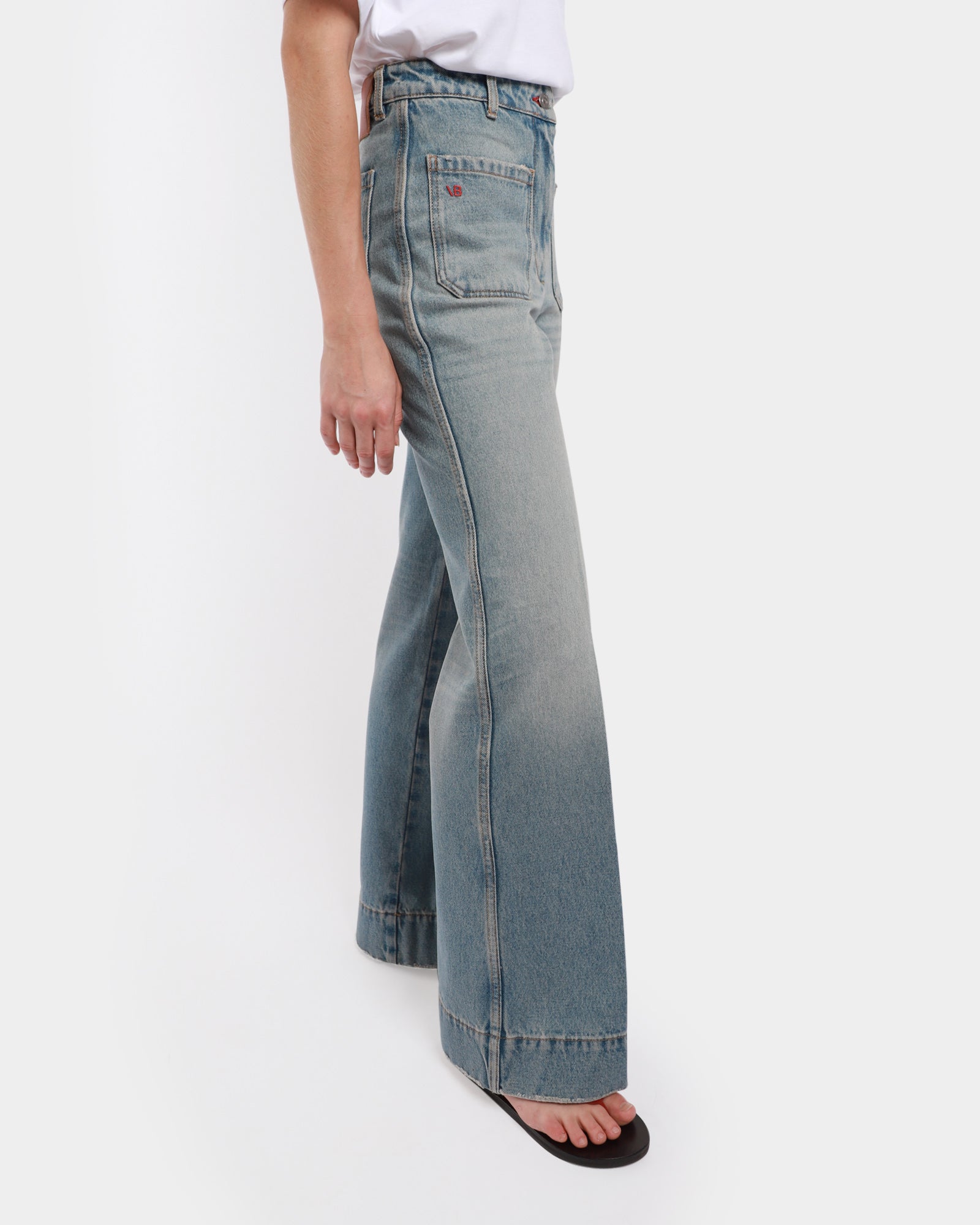The Alina Jean captures a classic ’70s-inspired style with its relaxed wide-leg silhouette, front and back patch pockets, and distinctive contrast branded stitching. Made in Italy.
